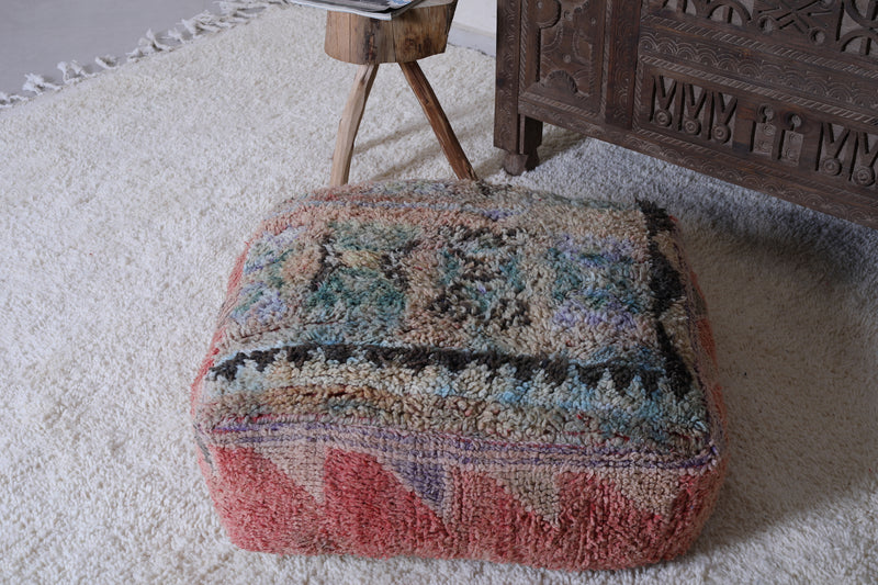 Add a touch of Moroccan heritage to your home with this handmade Azilal colorful old rug pouf. Featuring vibrant geometric patterns in a mix of bold, earthy tones, it showcases the skilled craftsmanship of Berber artisans. The rich colors and unique design reflect the timeless beauty of Moroccan textiles, making it perfect for extra seating, a footrest, or a distinctive decorative accent. Its vintage appeal and texture bring warmth, culture, and character to boho, eclectic, or contemporary interiors.