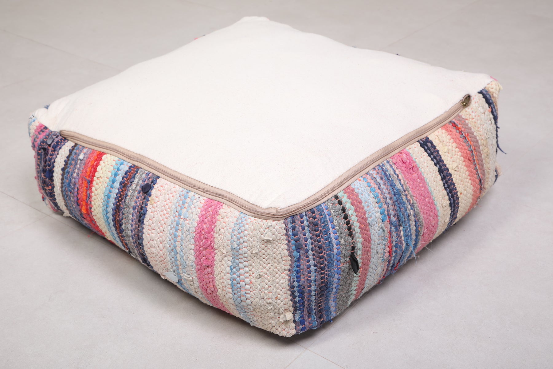 This Moroccan handmade Berber pouf is made by a Very Old Moroccan rug.