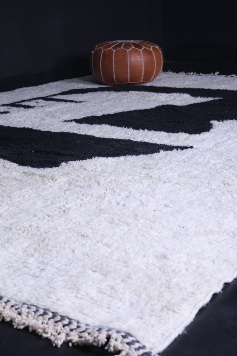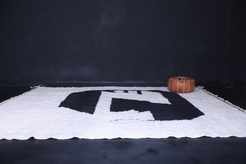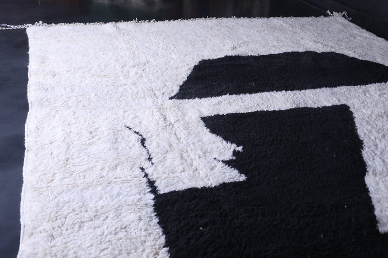 This 9.5 x 12.7 feet handmade Moroccan Berber contemporary rug features a striking black abstract design on a soft white background, blending traditional craftsmanship with bold modern artistry. Handwoven from high-quality Moroccan wool, it offers a plush, soft, and durable texture that enhances any space. Perfect for living rooms, large open areas, or statement interiors, this unique rug adds elegance, contrast, and cultural charm while complementing both minimalist and avant-garde décor styles.