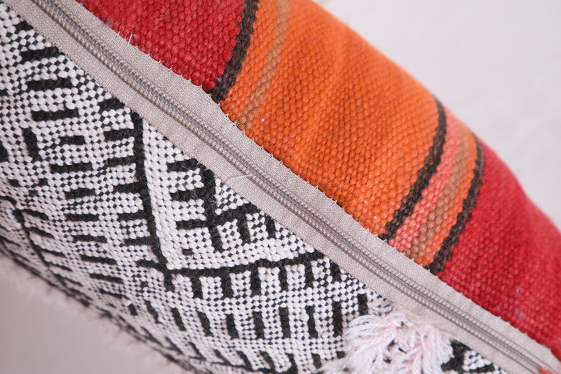 Elevate your home decor with our handmade Moroccan Berber pillow, measuring 10.2 x 21.6 inches. Each one is filled for a plush and comfortable addition to any space. Bring a touch of Morocco with our authentic and stylish Moroccan pouf.