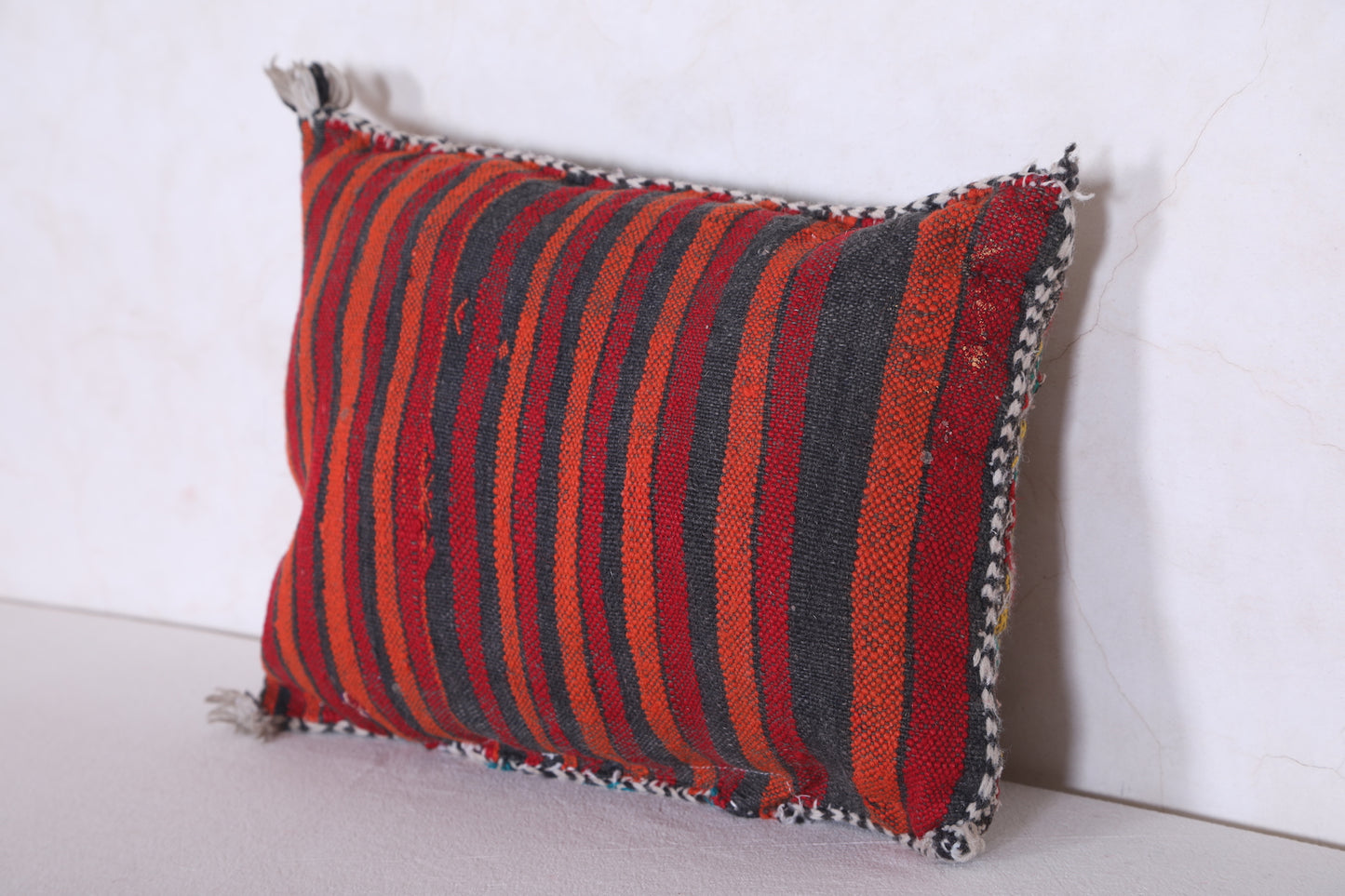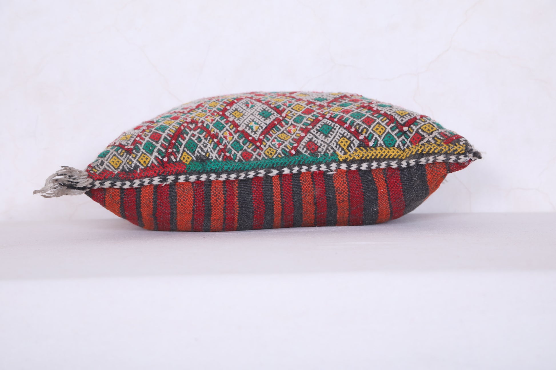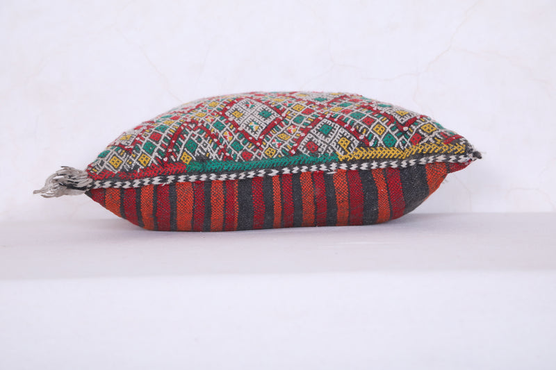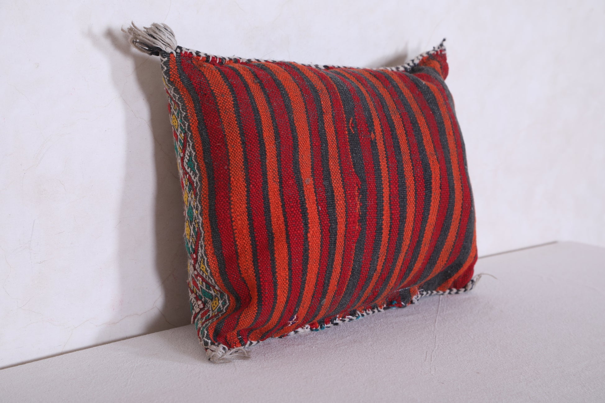 This Moroccan handmade kilim pillow is a unique and beautiful addition to any home. Its 12.5 INCHES X 16.1 INCHES cover is expertly crafted by Moroccan artisans, a timeless accent for any decor.