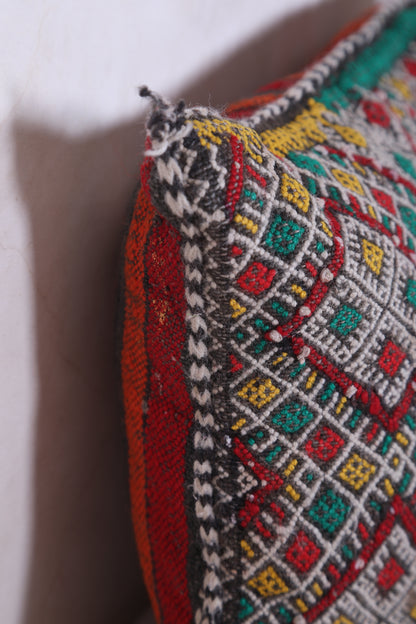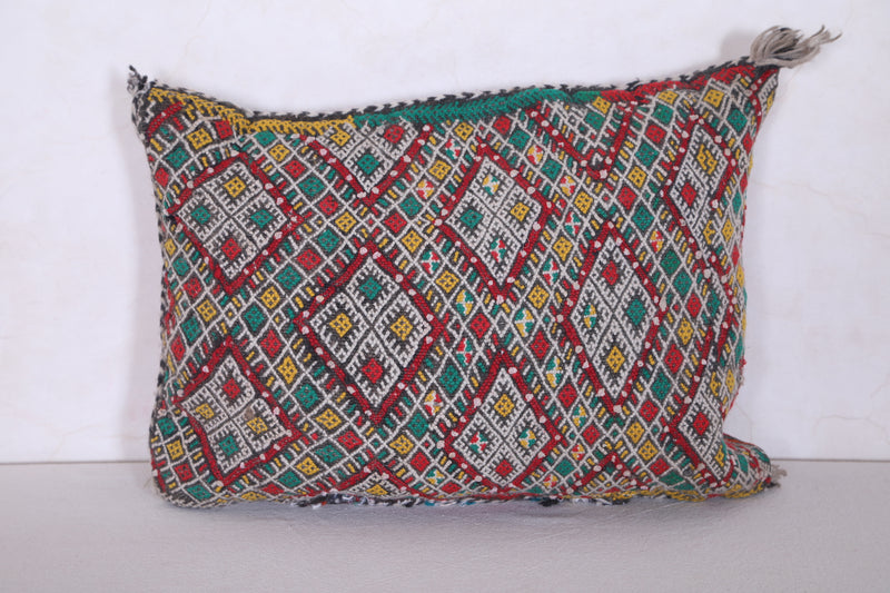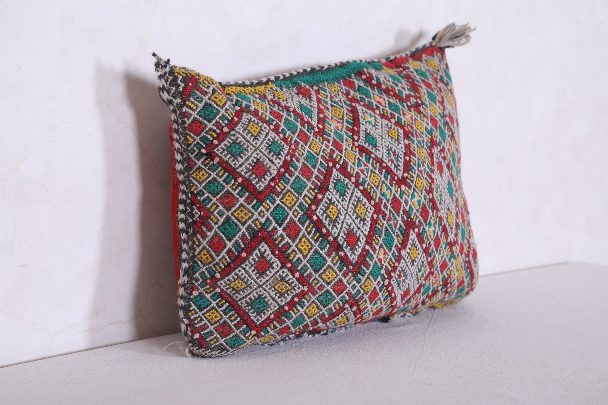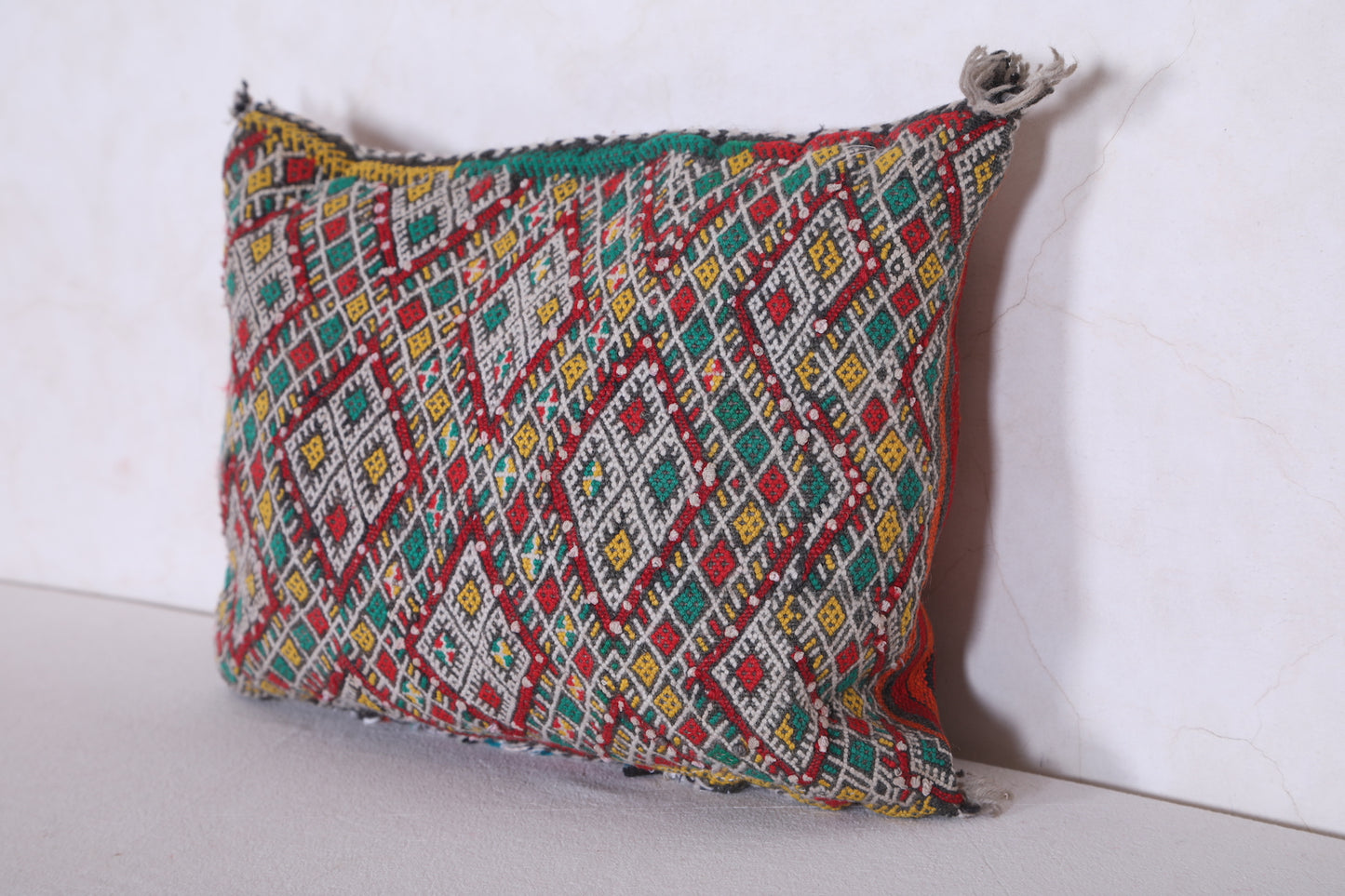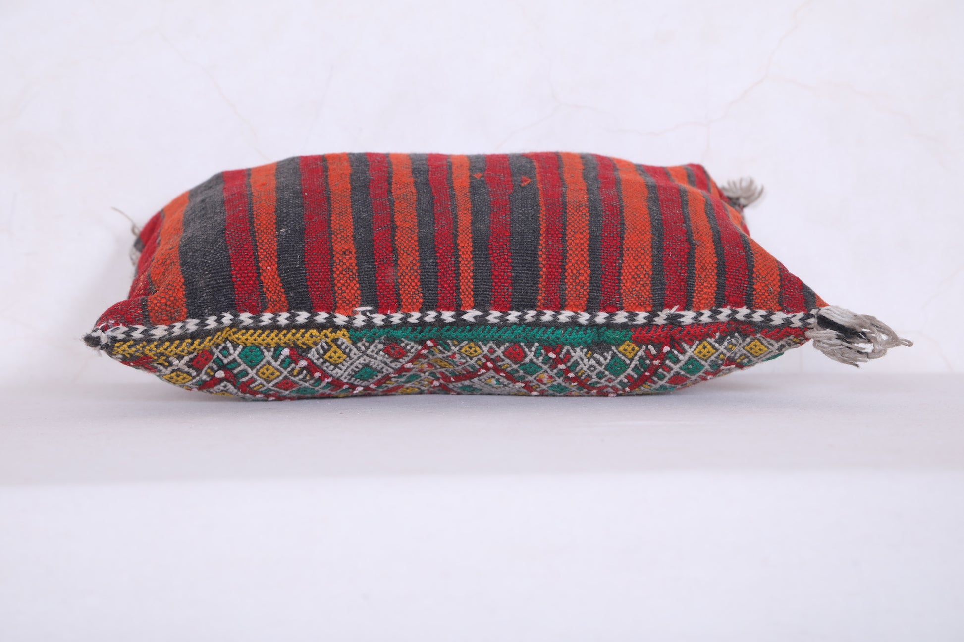 This Moroccan handmade kilim pillow is a unique and beautiful addition to any home. Its 12.5 INCHES X 16.1 INCHES cover is expertly crafted by Moroccan artisans, a timeless accent for any decor.