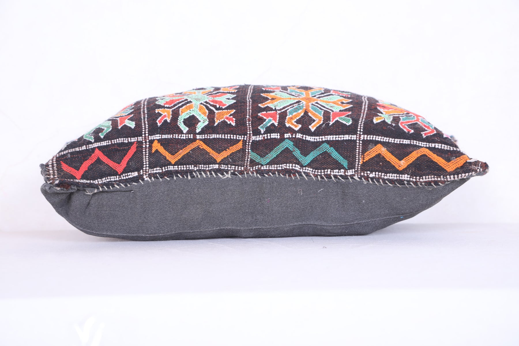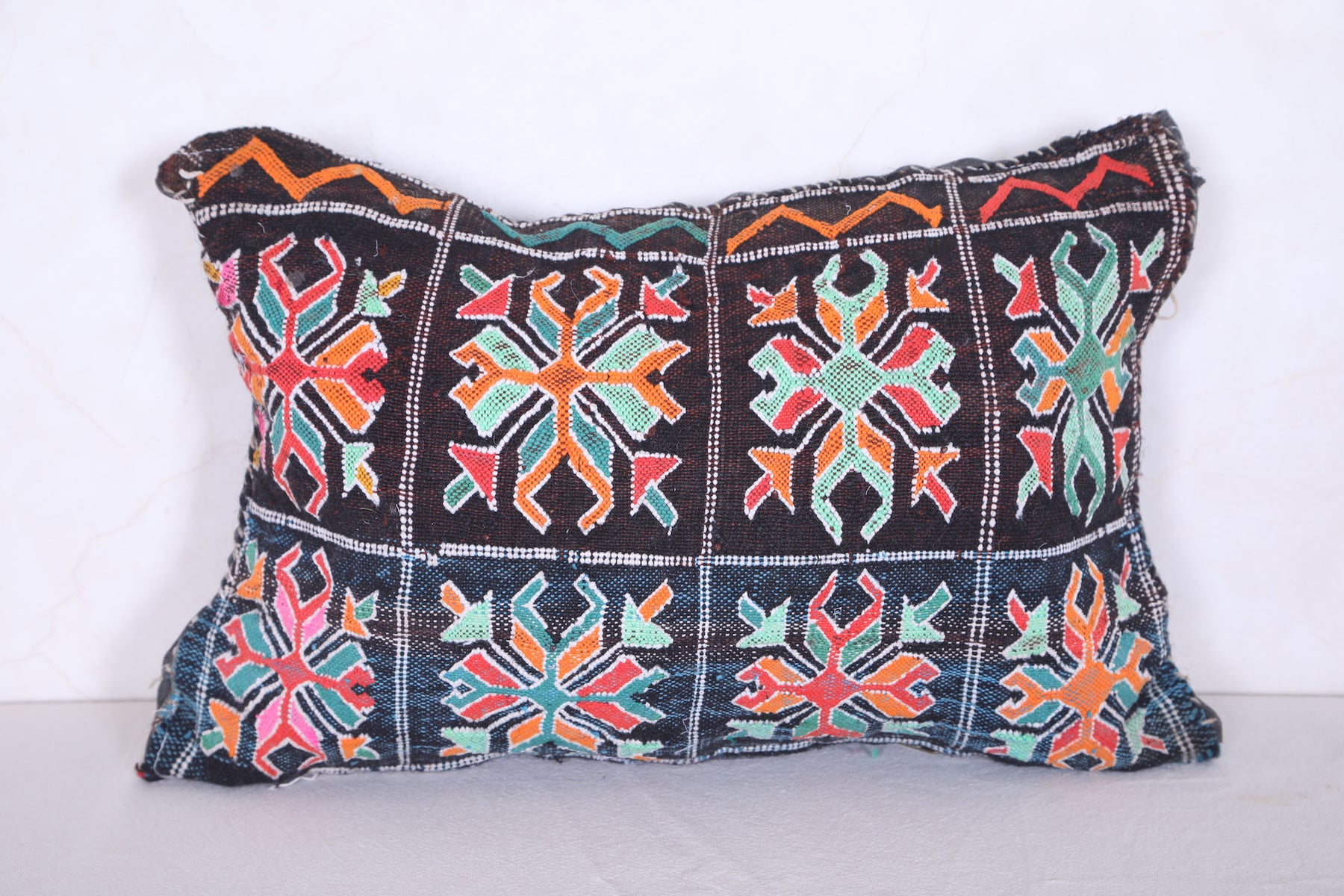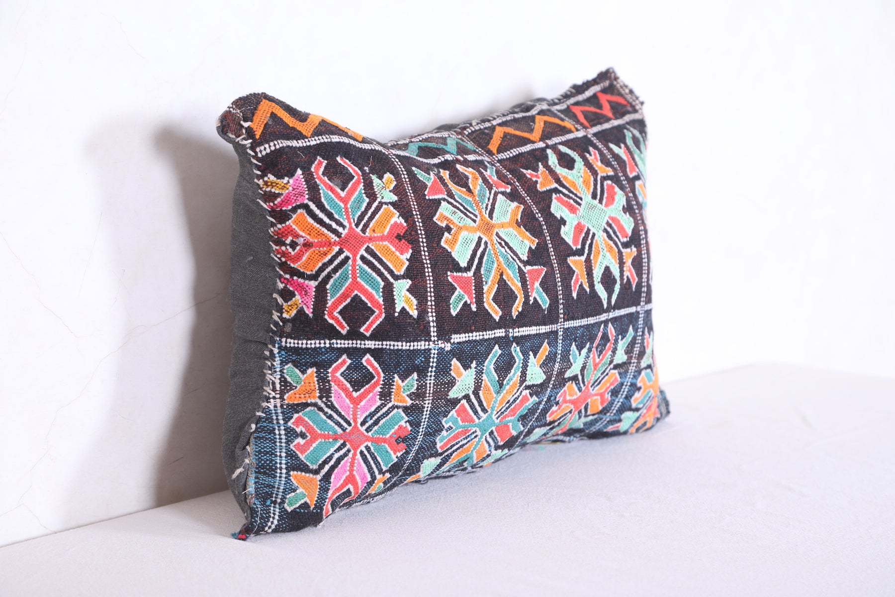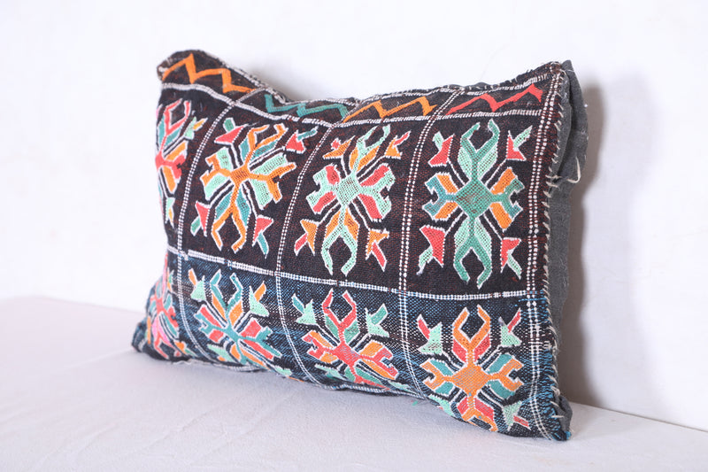This kilim pillow is filled for a comfortable and supportive experience. Enjoy the bohemian and Moroccan design of this handmade cushion. Perfect for adding a touch of Moroccan flair to any space. Dimensions of 12.5 x 18.1 inches make it a versatile and decorative addition to your home decor.