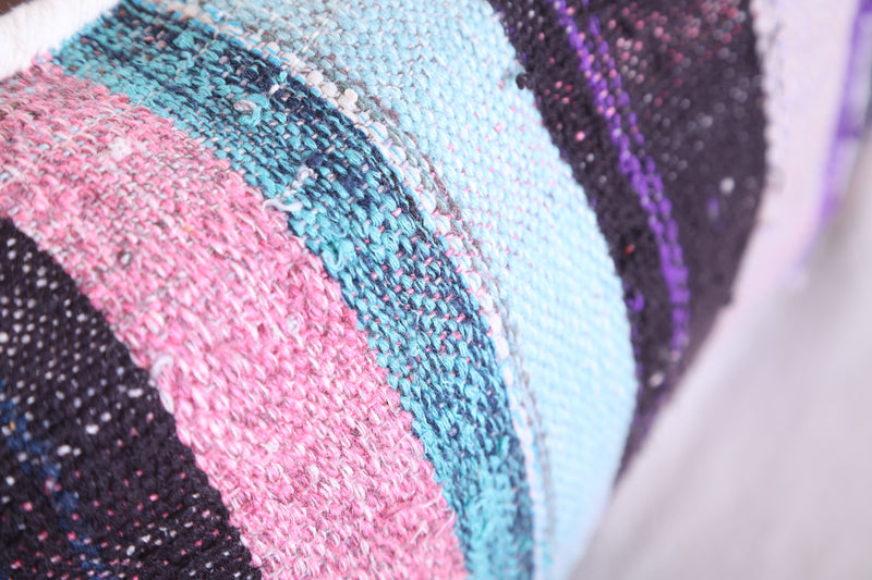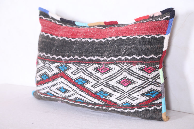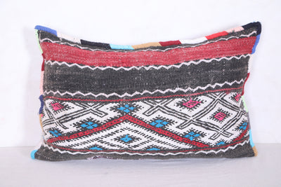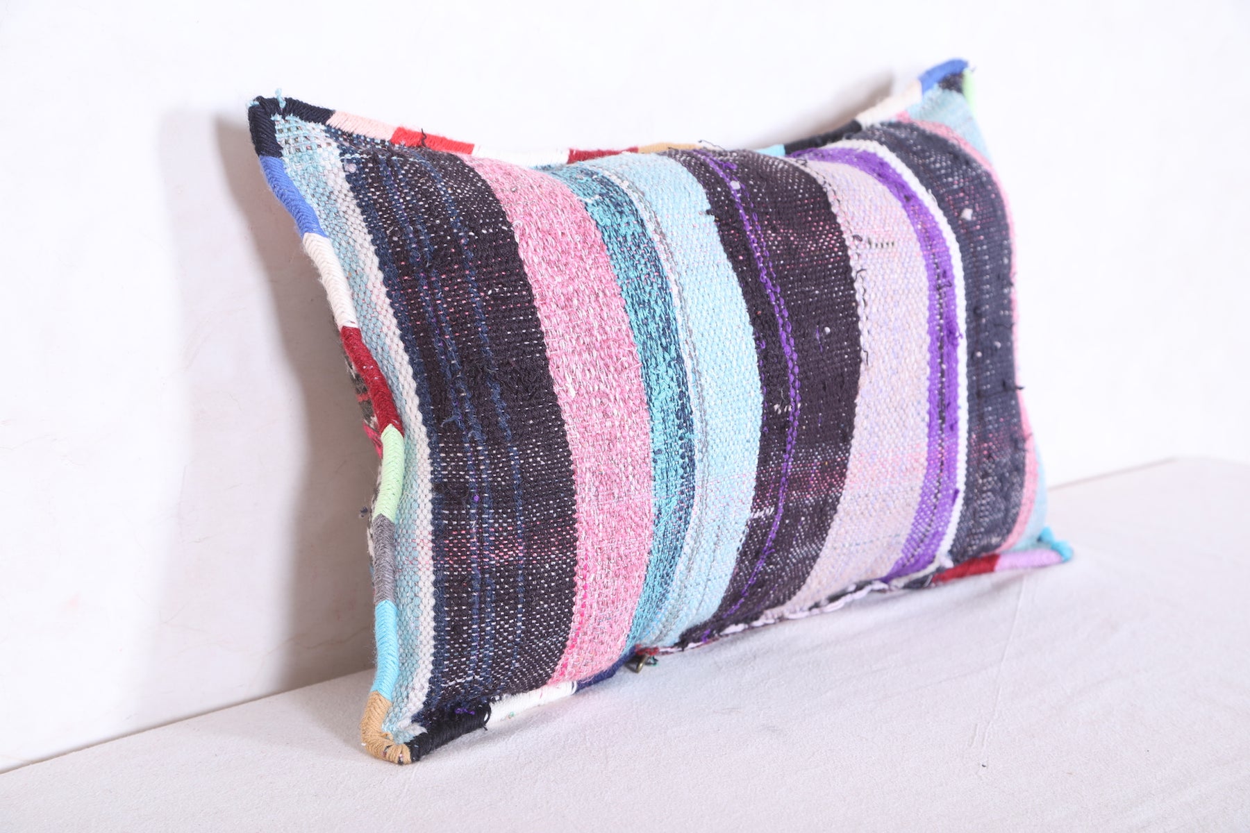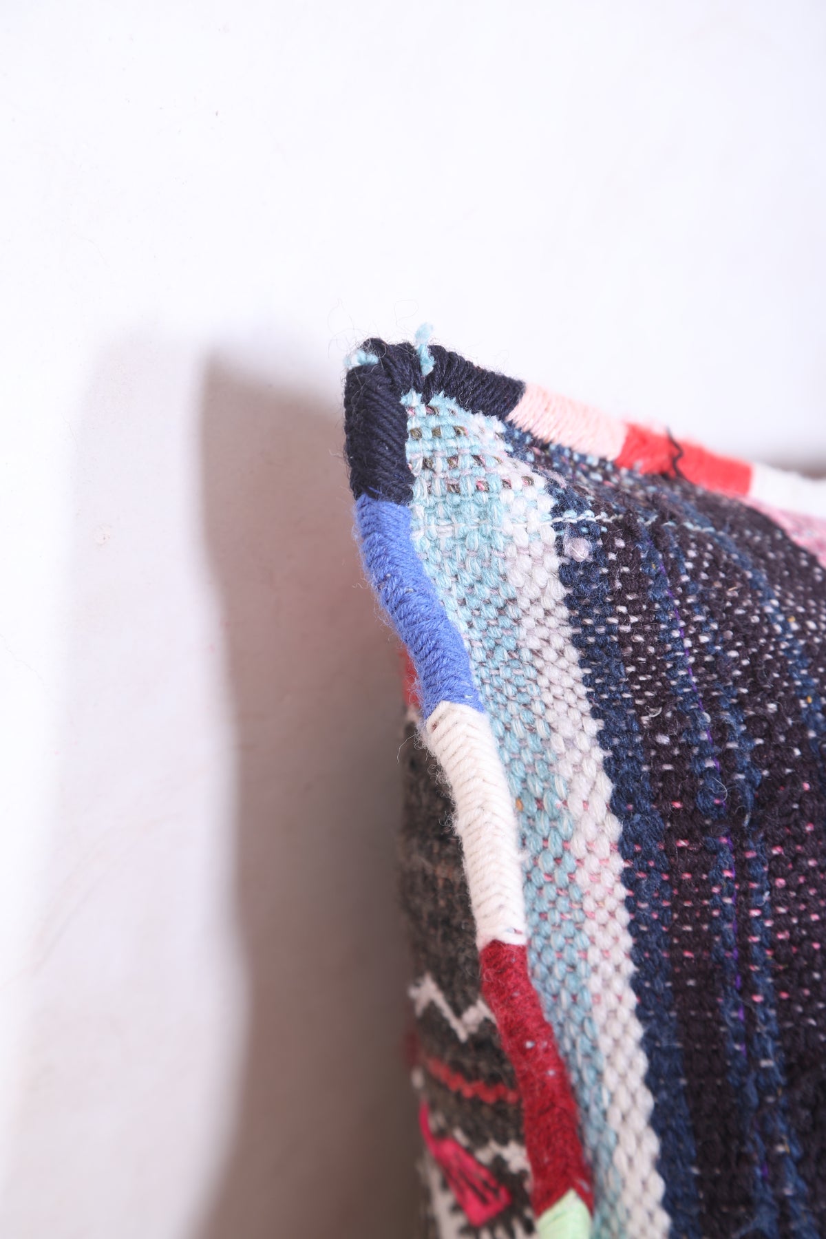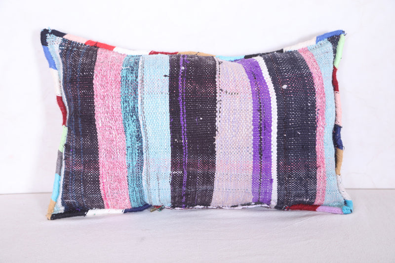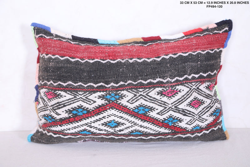 This authentic Moroccan handmade kilim pillow has a colorful and unique design. Each pillow cover is crafted with traditional weaving techniques for a truly unique addition to your interior décor. The pillow measures 12.9 inches by 20.8 inches, making it an ideal size for any living space.