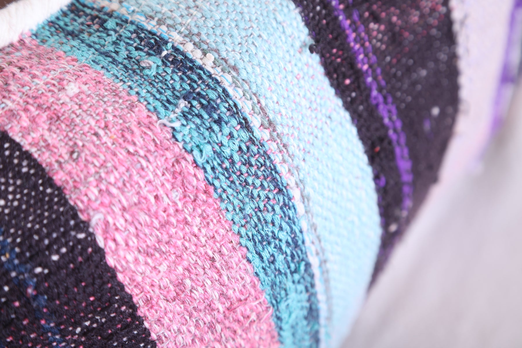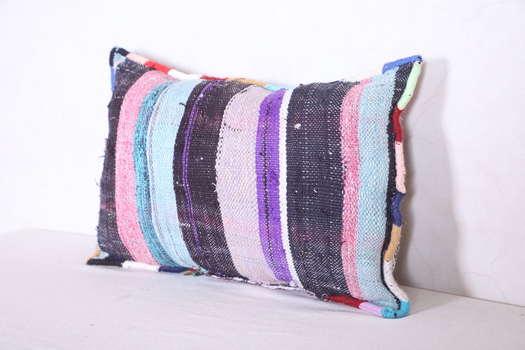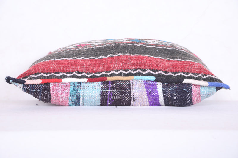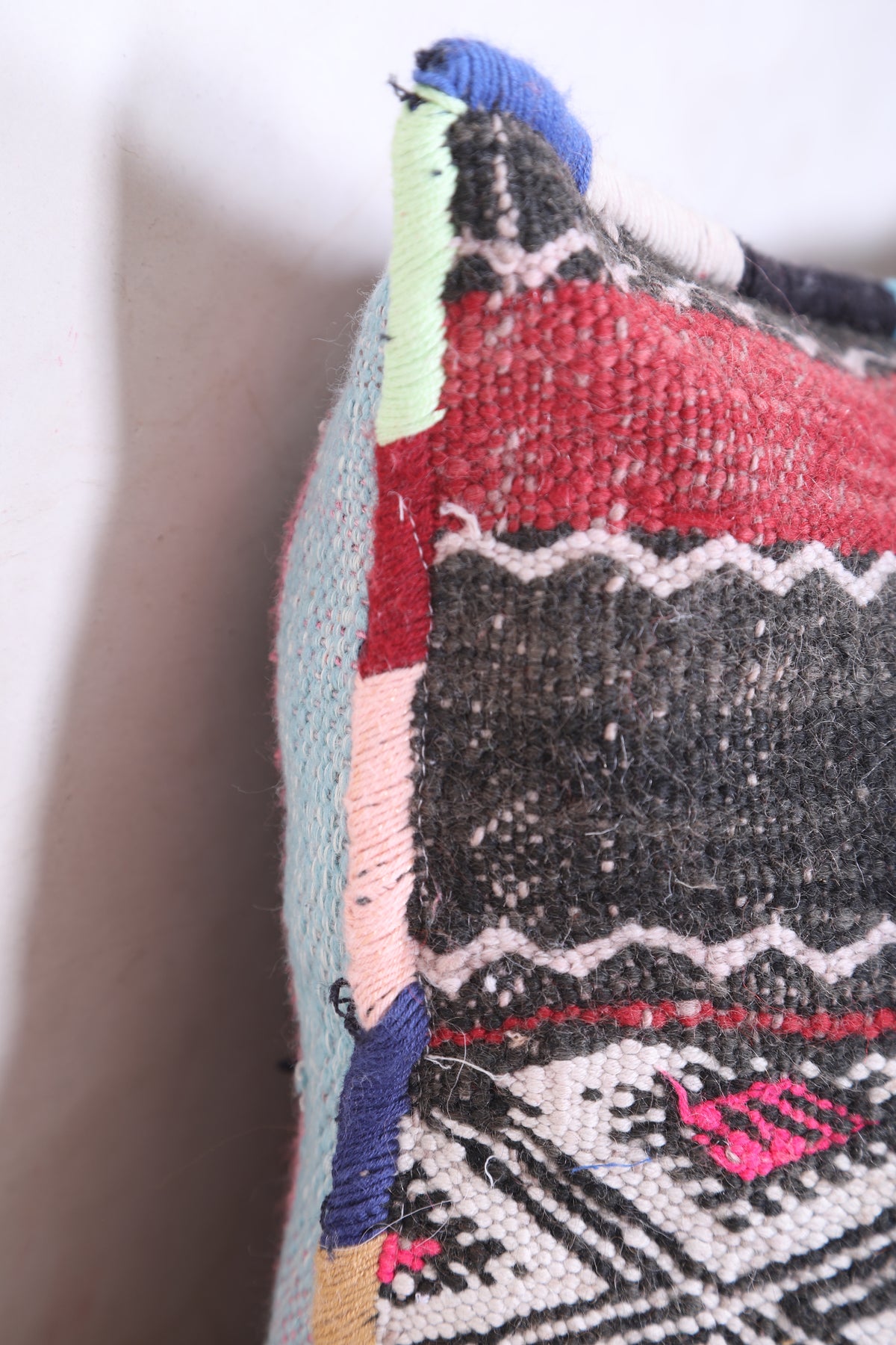 This authentic Moroccan handmade kilim pillow has a colorful and unique design. Each pillow cover is crafted with traditional weaving techniques for a truly unique addition to your interior décor. The pillow measures 12.9 inches by 20.8 inches, making it an ideal size for any living space.