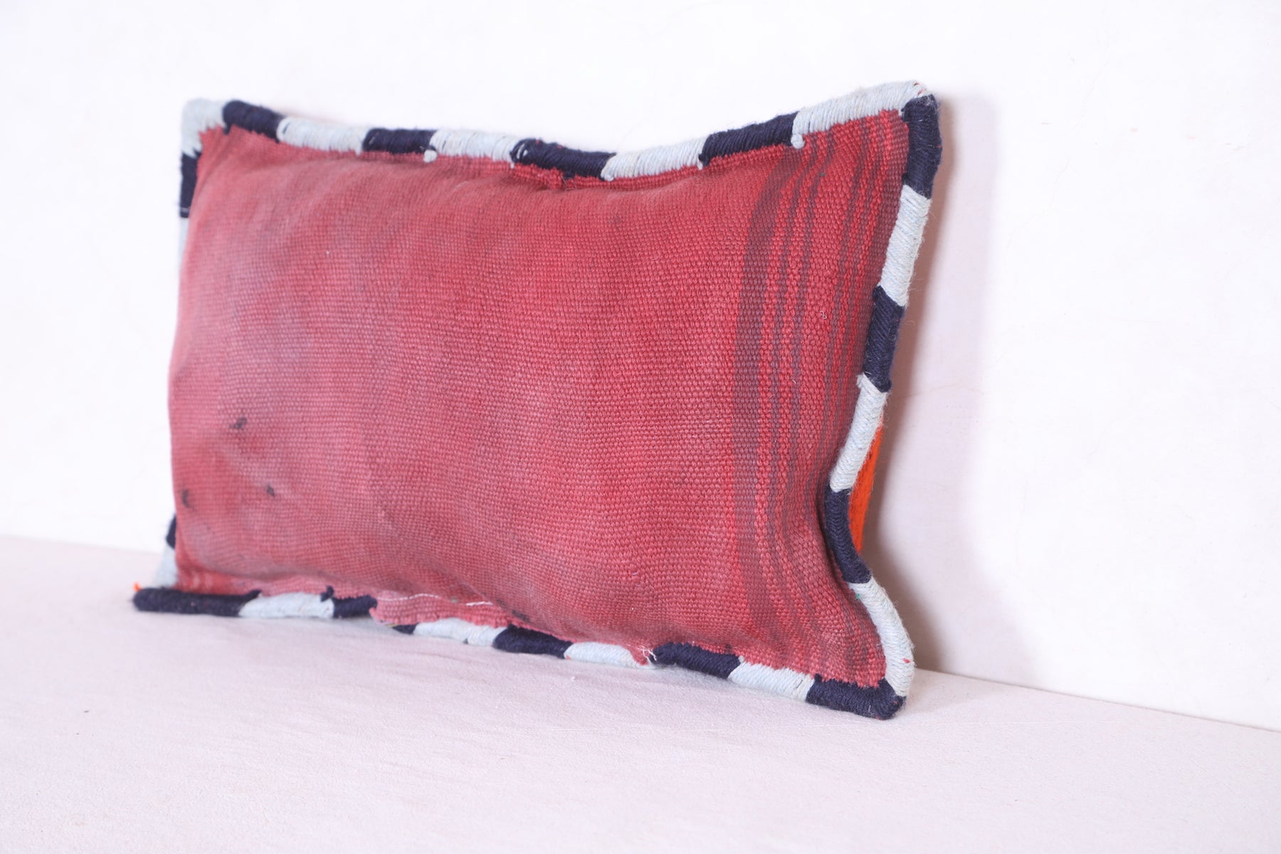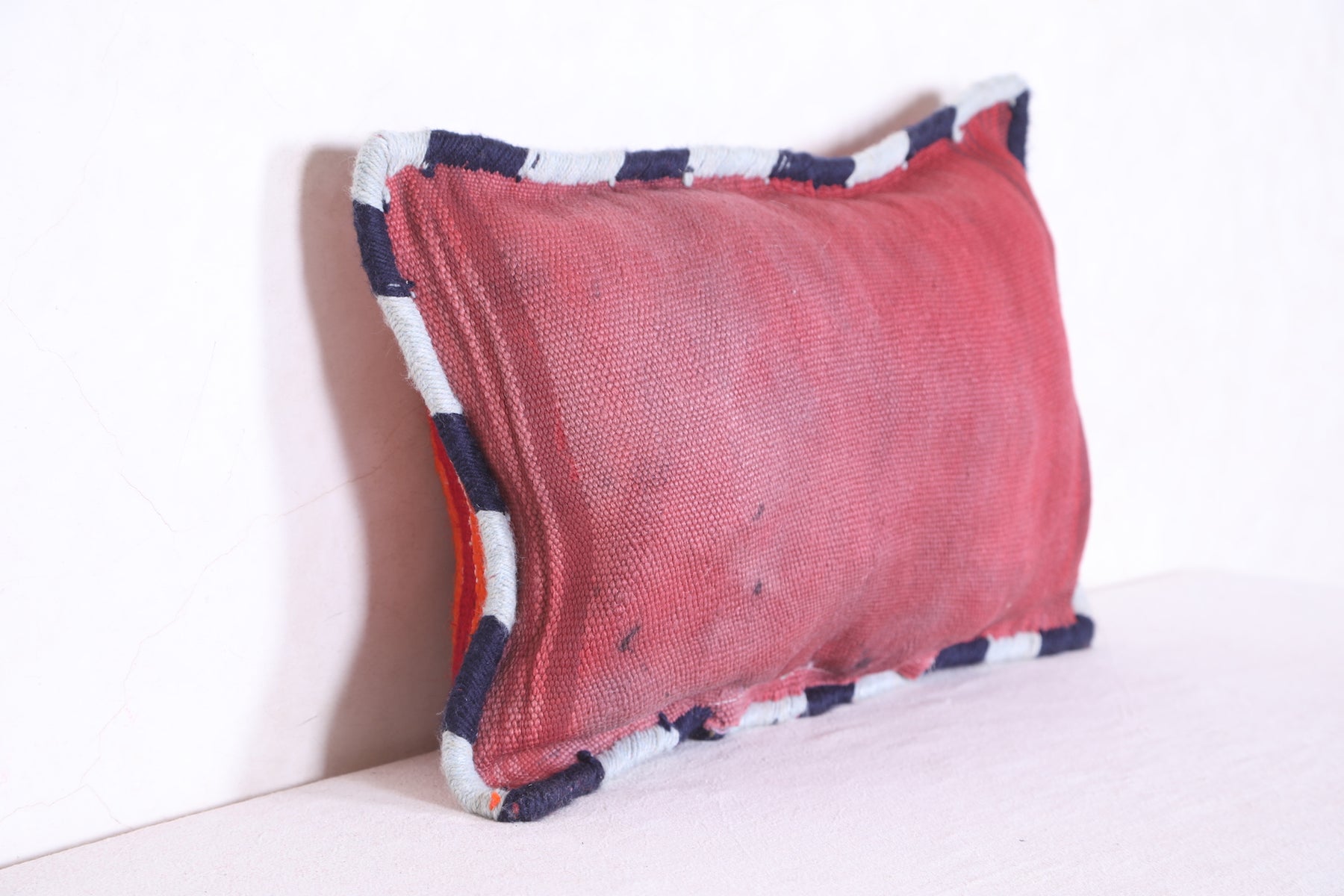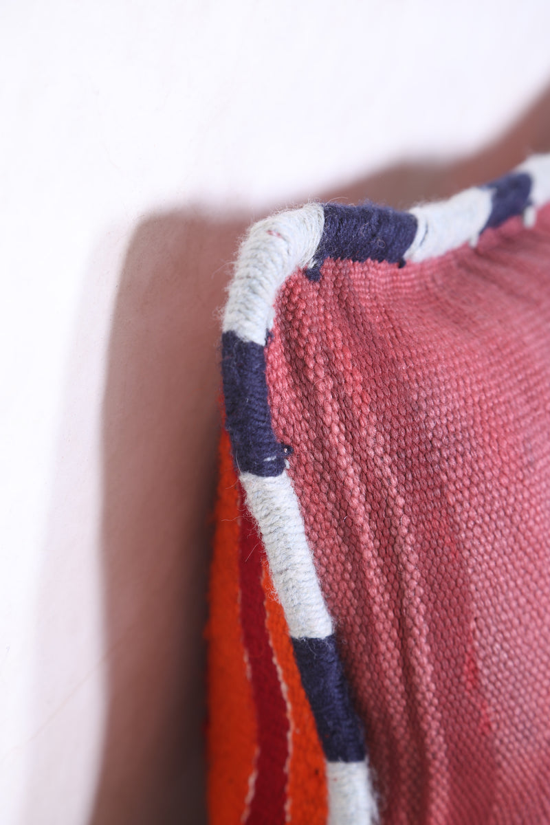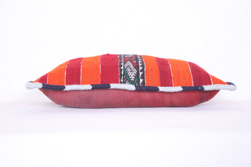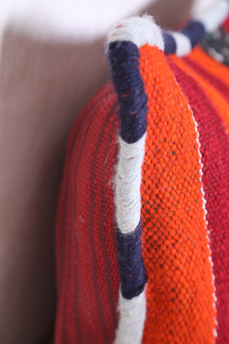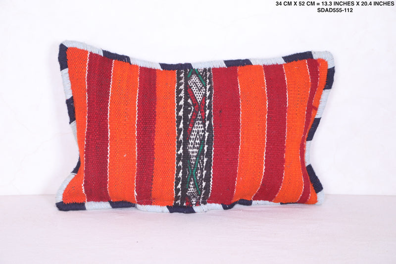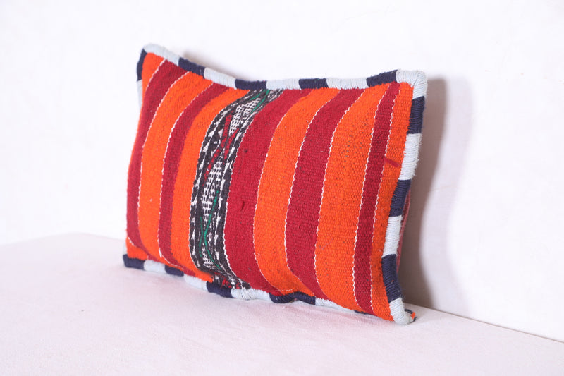 This Moroccan handmade kilim pillow will add a unique decorative touch to any room. Its bold geometric design and intricate detail add a unique texture that you won't find anywhere else. The beautiful cover measures 13.3 INCHES X 20.4 INCHES. Add style to your home with this handmade kilim pillow from Morocco.