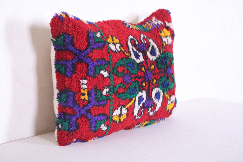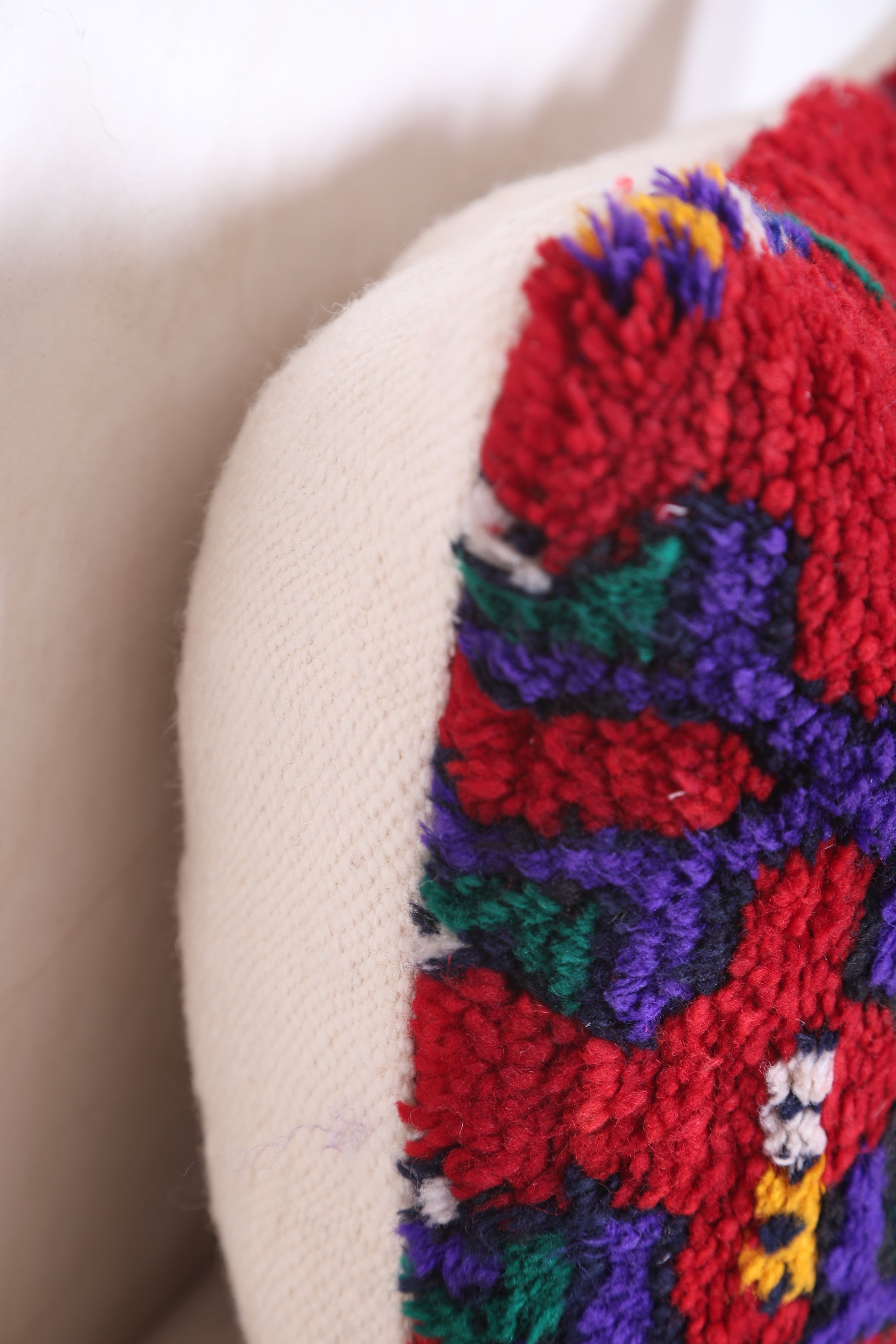 Discover the luxurious comfort of our Colorful Moroccan Pillow. Crafted with vintage rug materials, this 13.7 x 18.8 inch Berber Pillow offers a shaggy, bohemian texture that adds a touch of elegance to any space. Filled for extra support, it's the perfect cushion for your home decor needs.