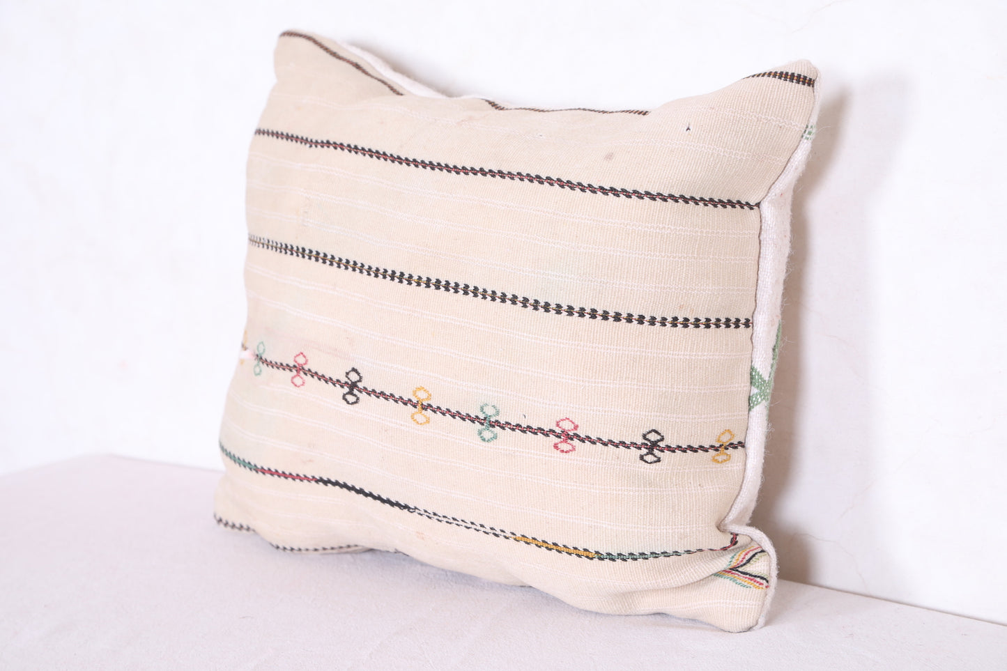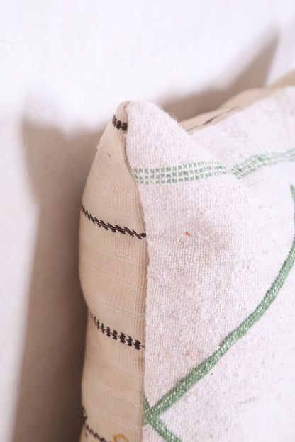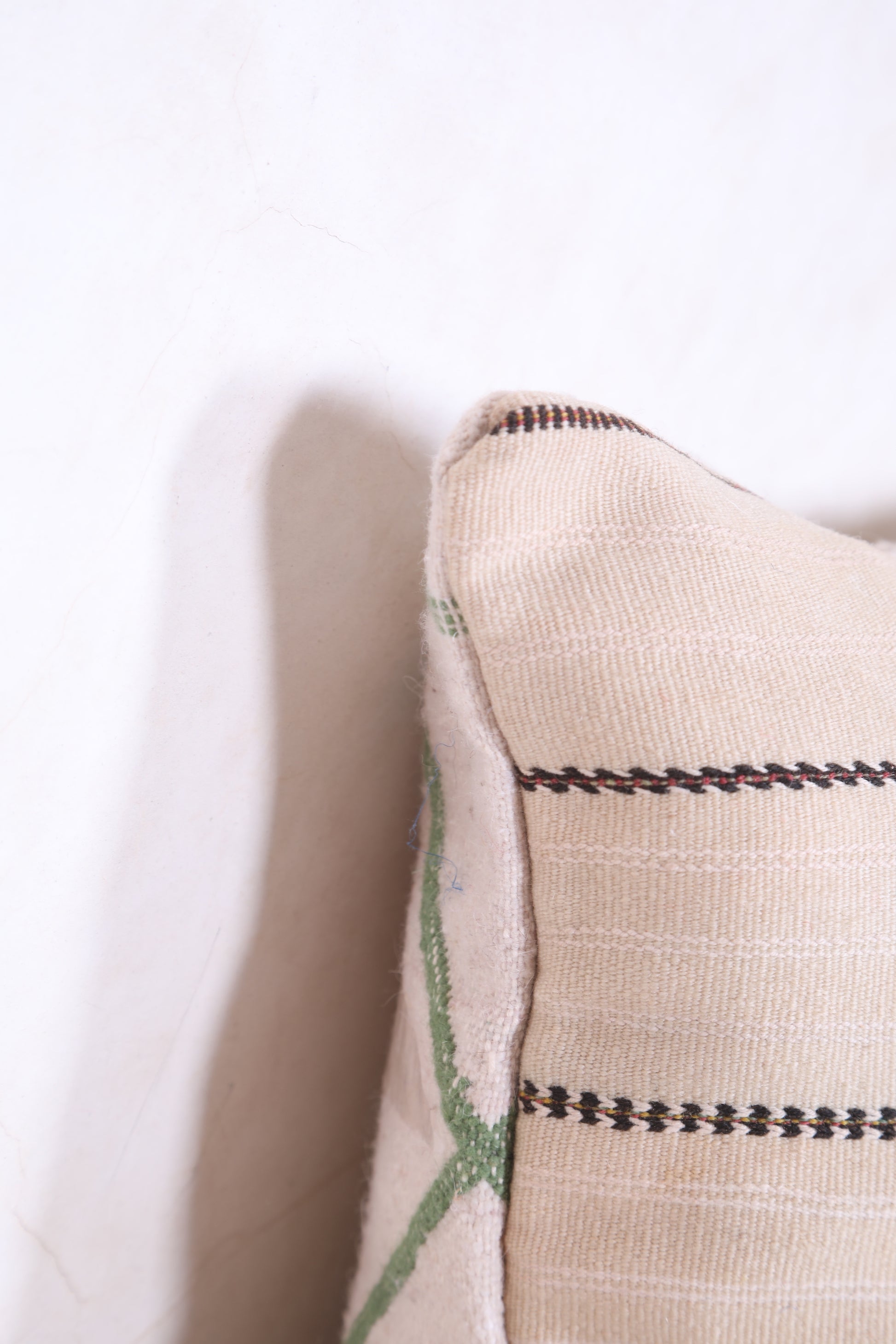 This traditional Moroccan kilim pillow is crafted by expert artisans using durable wool and natural cotton. Perfect for adding a warm, inviting touch to any living space, the pillow measures 14.1 inches by 17.7 inches and features a stylish, bohemian-inspired cover.