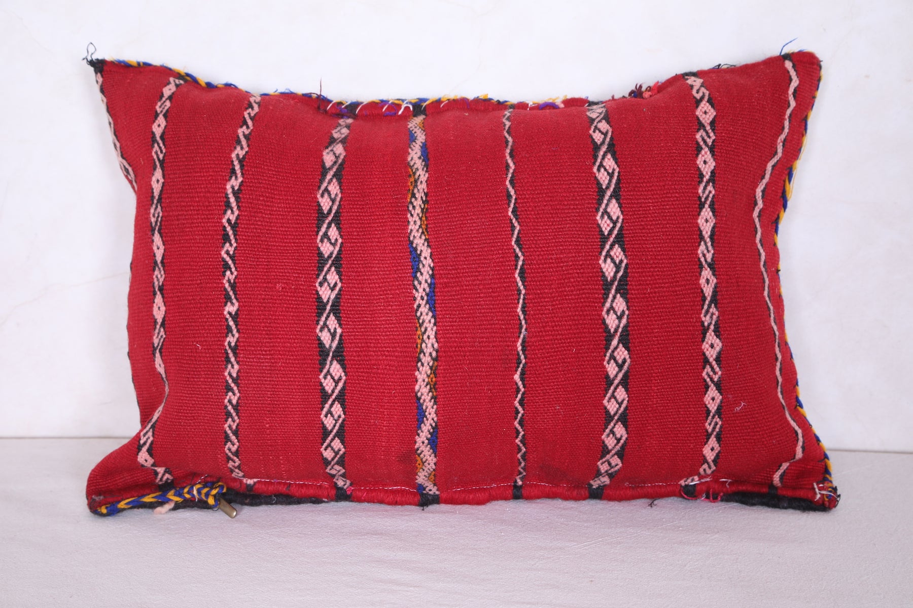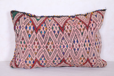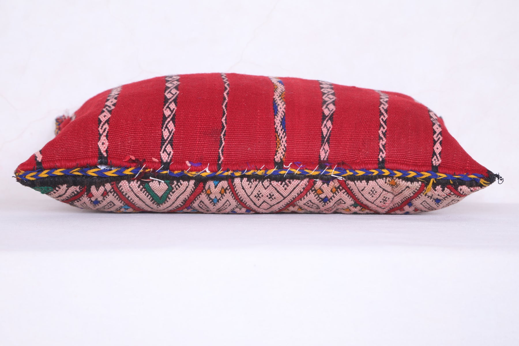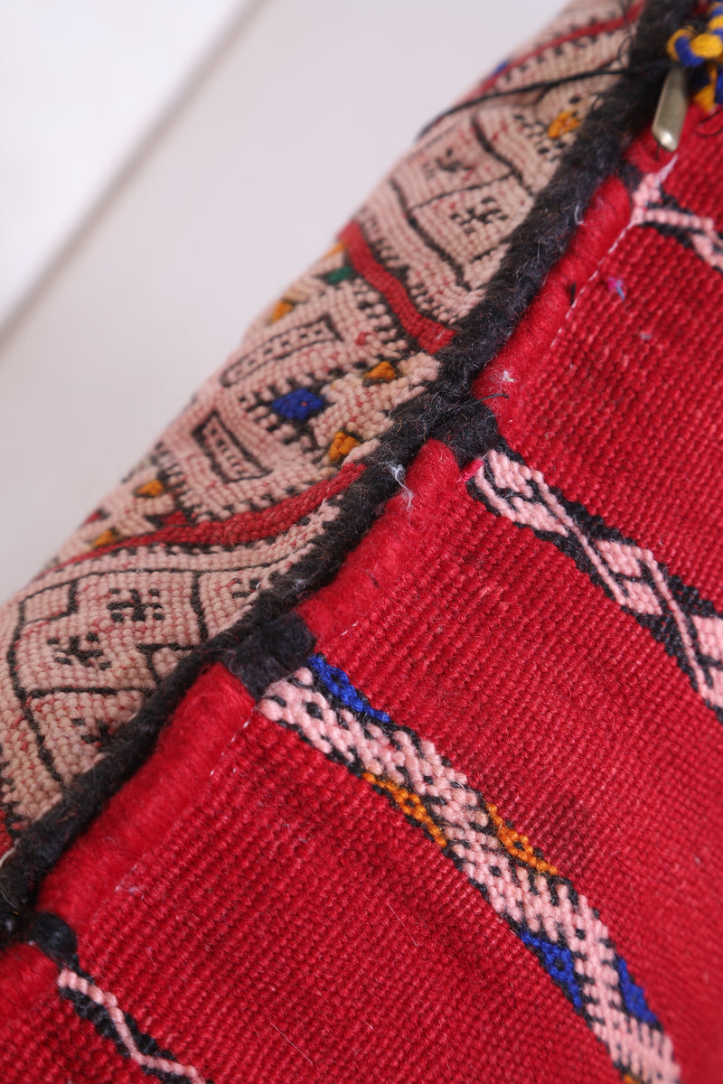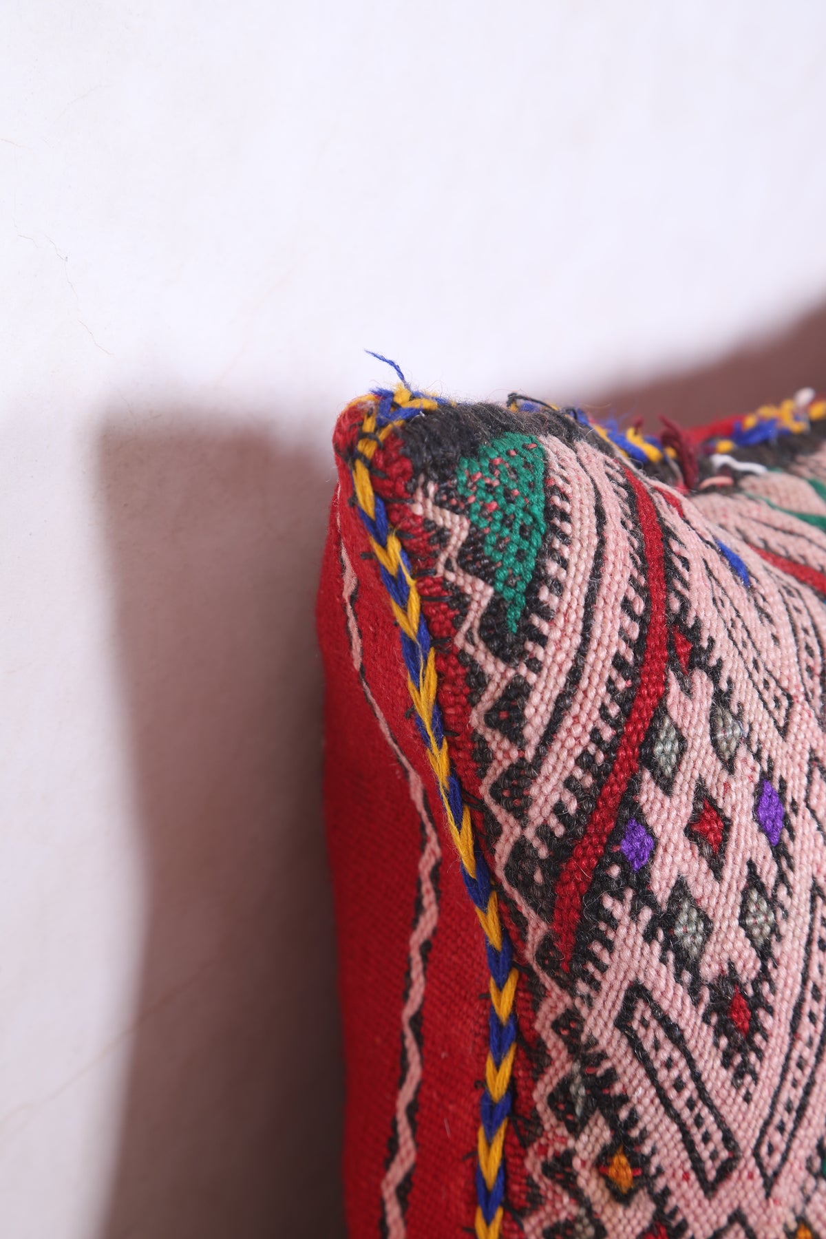 This beautiful Moroccan kilim pillow is handmade and has an eye-catching design. The cover is 14.1 inches by 21.2 inches and features intricate detail and bold colors. This pillow is sure to be an eye-catching addition to any home decor.