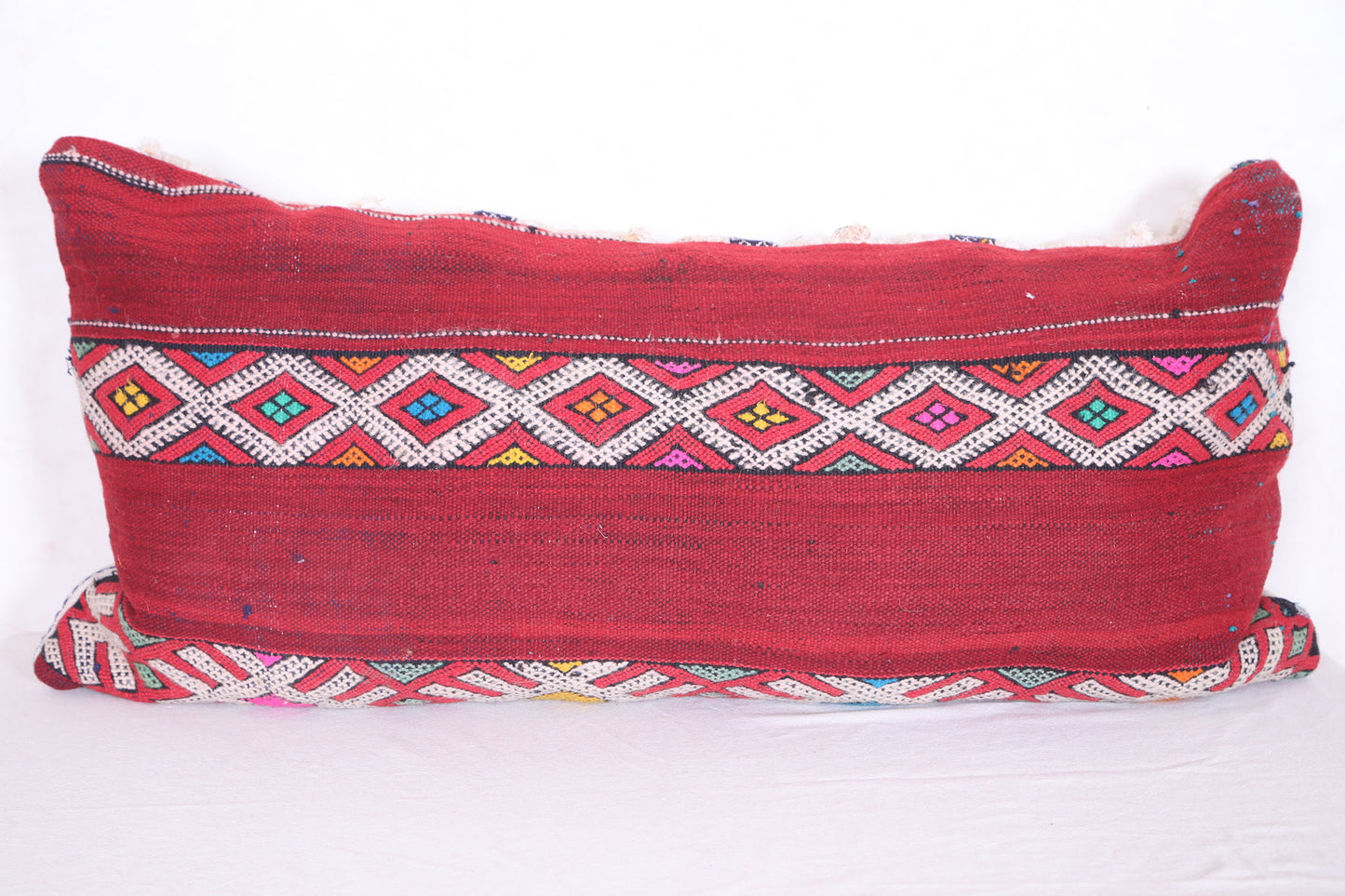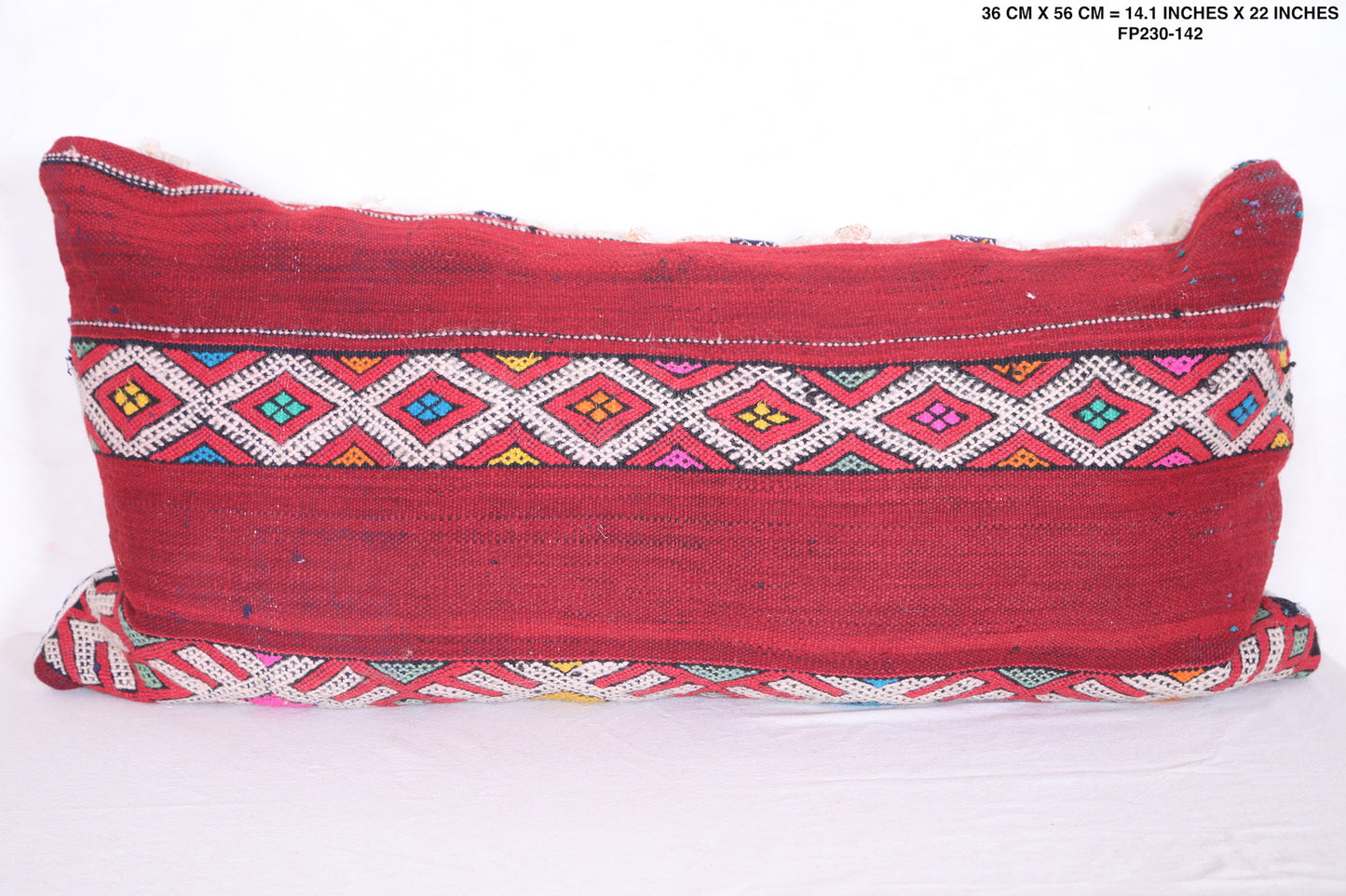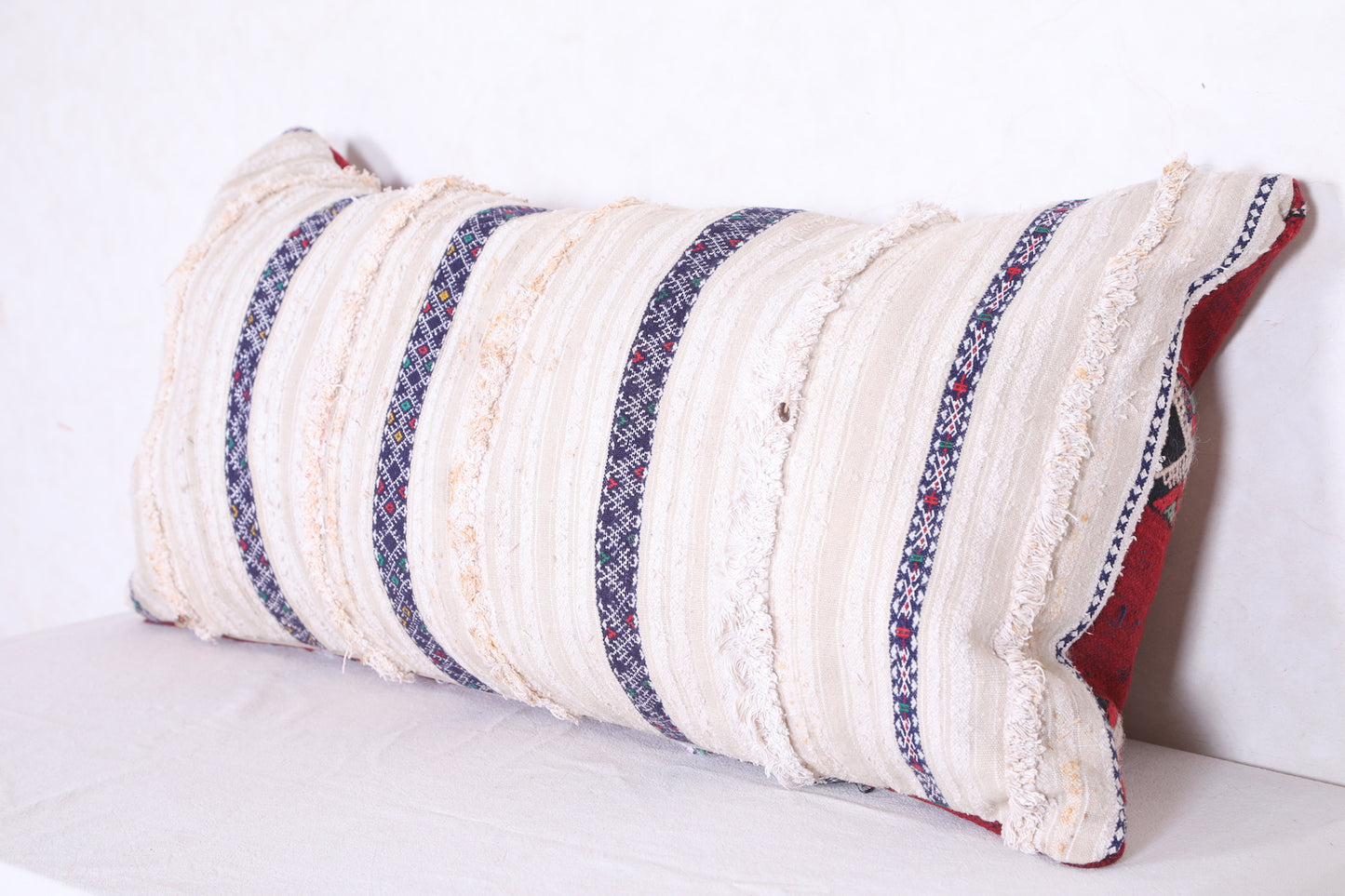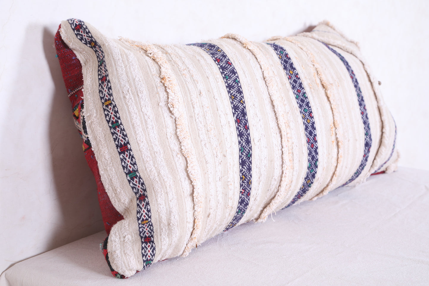 Indulge in the rich cultural heritage with our Long Moroccan Pillow. Hand woven and filled for comfort, this vintage cushion adds a touch of authenticity to any décor. With its unique 14.1 x 22 inch design, this long pillow is the perfect handmade addition to your home.