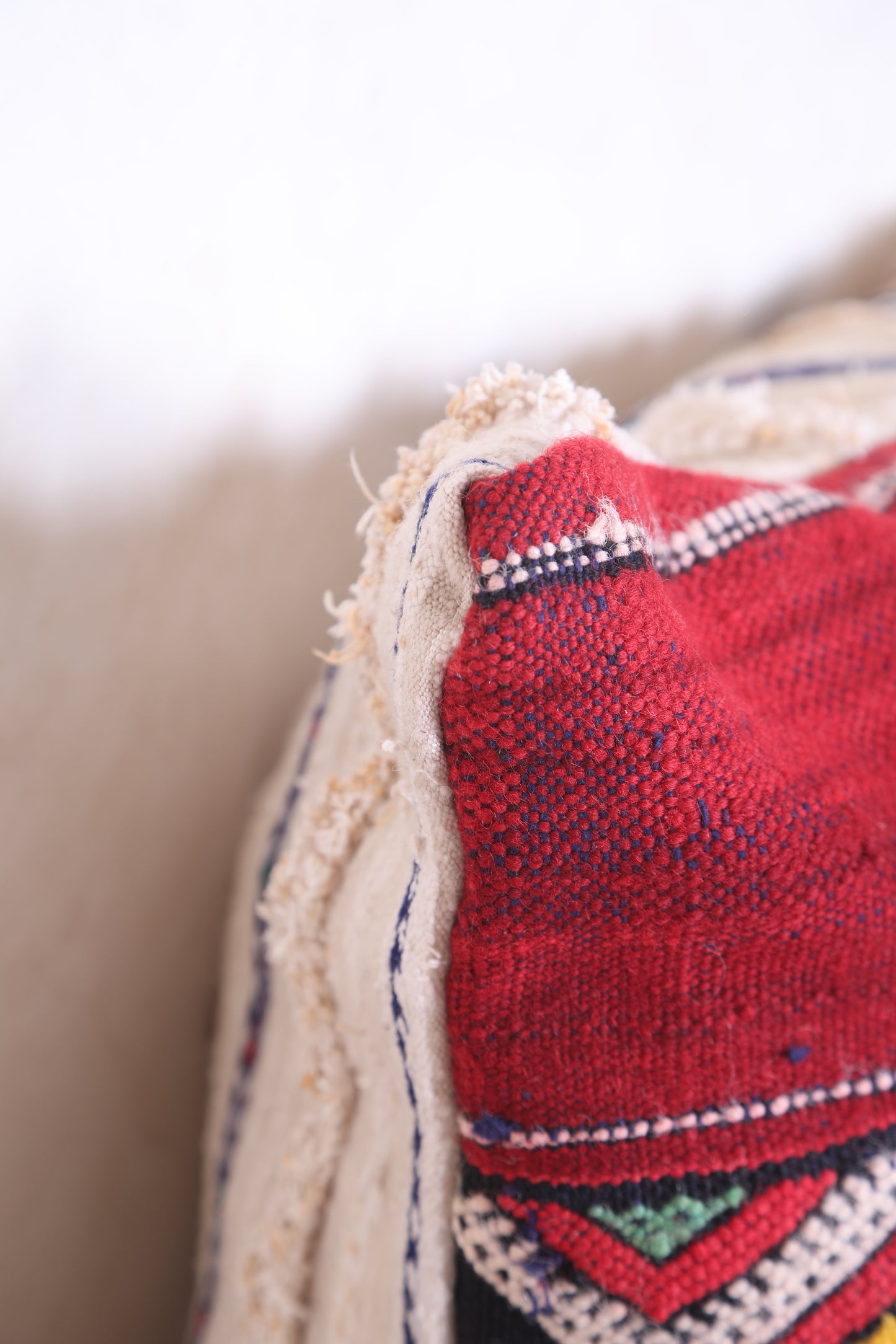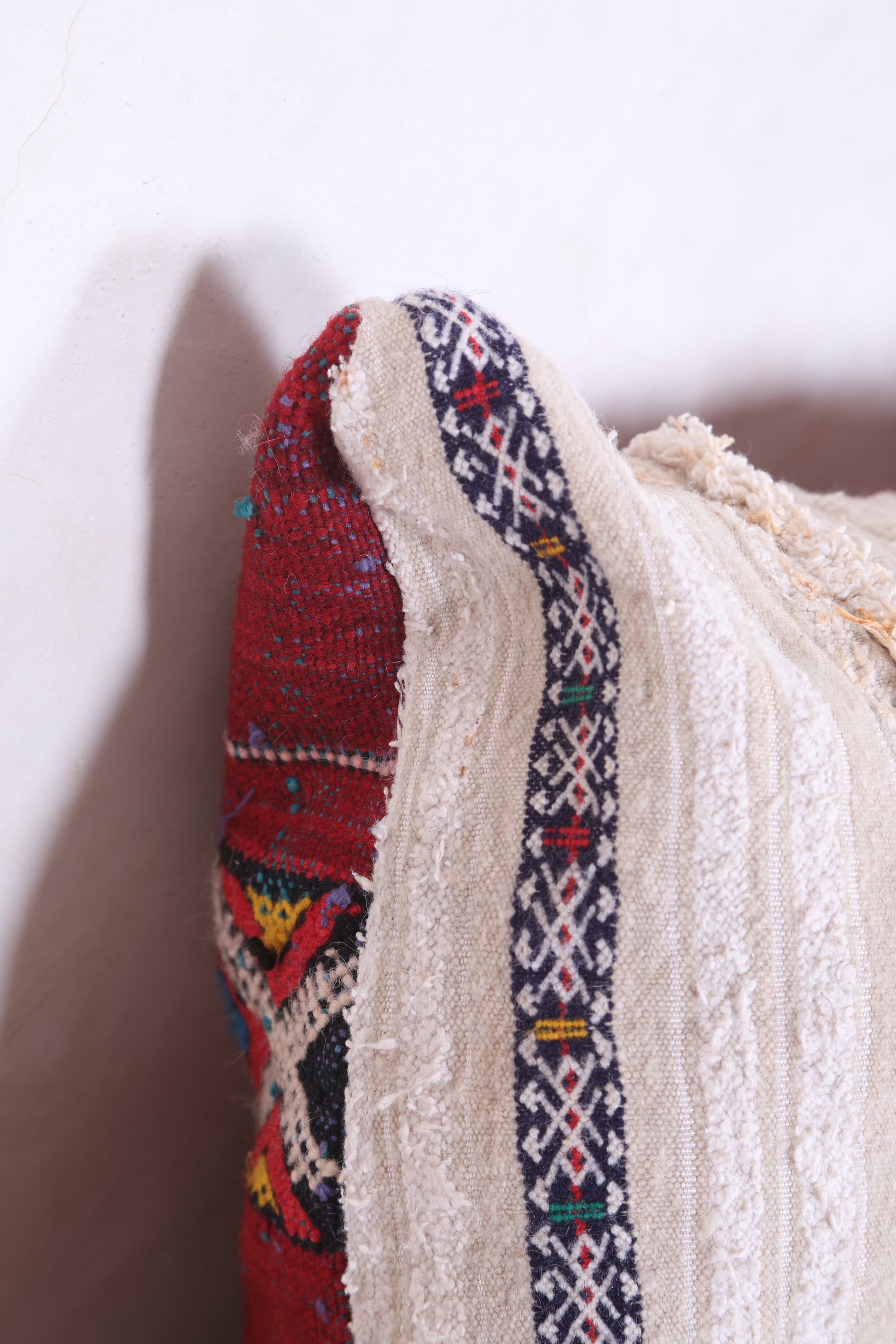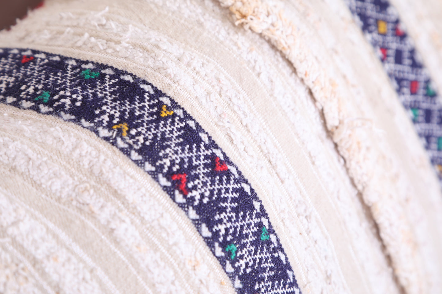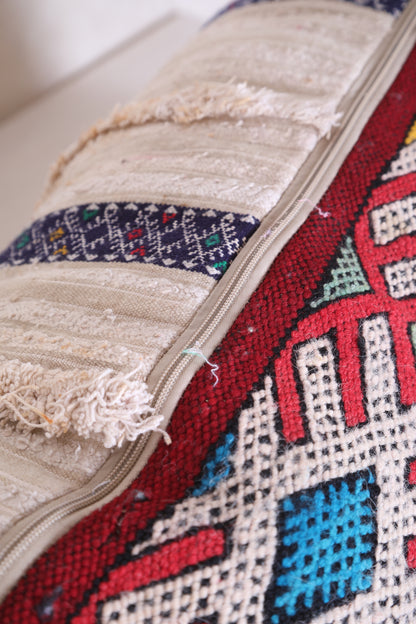Indulge in the rich cultural heritage with our Long Moroccan Pillow. Hand woven and filled for comfort, this vintage cushion adds a touch of authenticity to any décor. With its unique 14.1 x 22 inch design, this long pillow is the perfect handmade addition to your home.