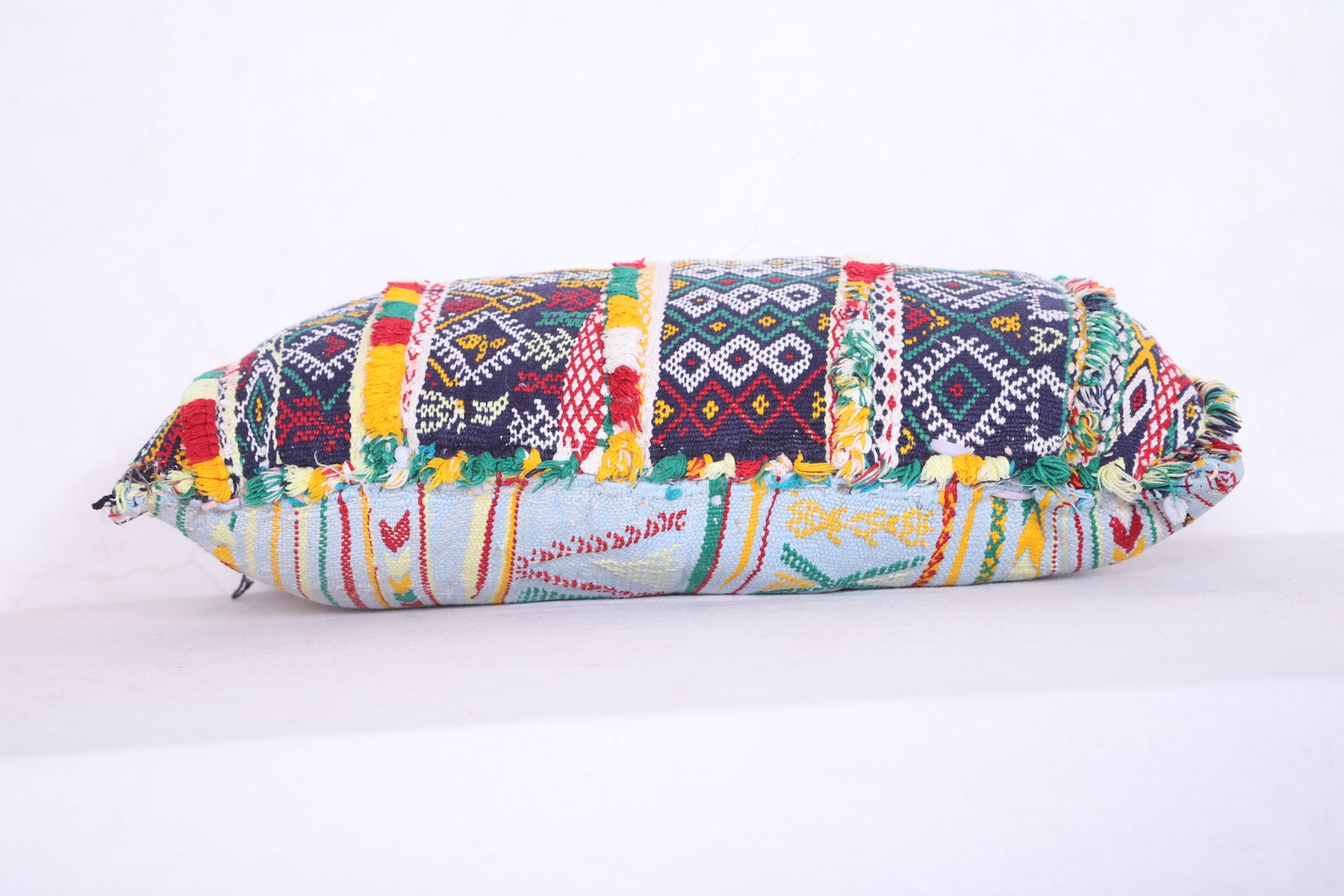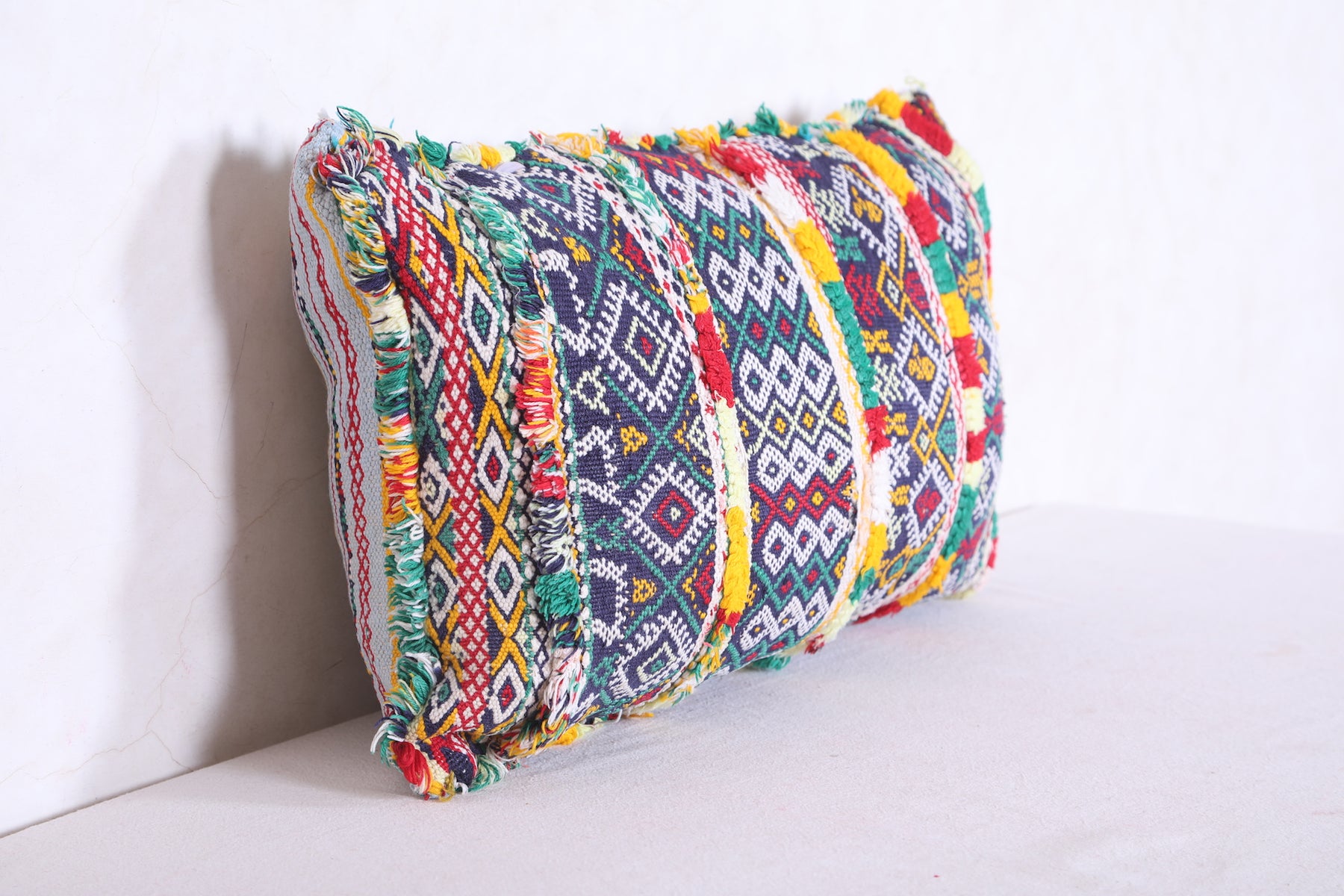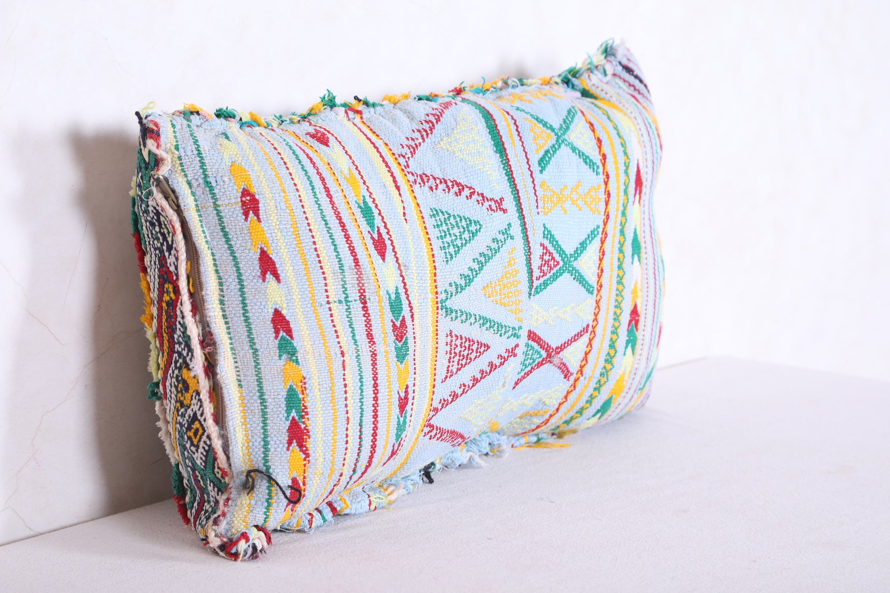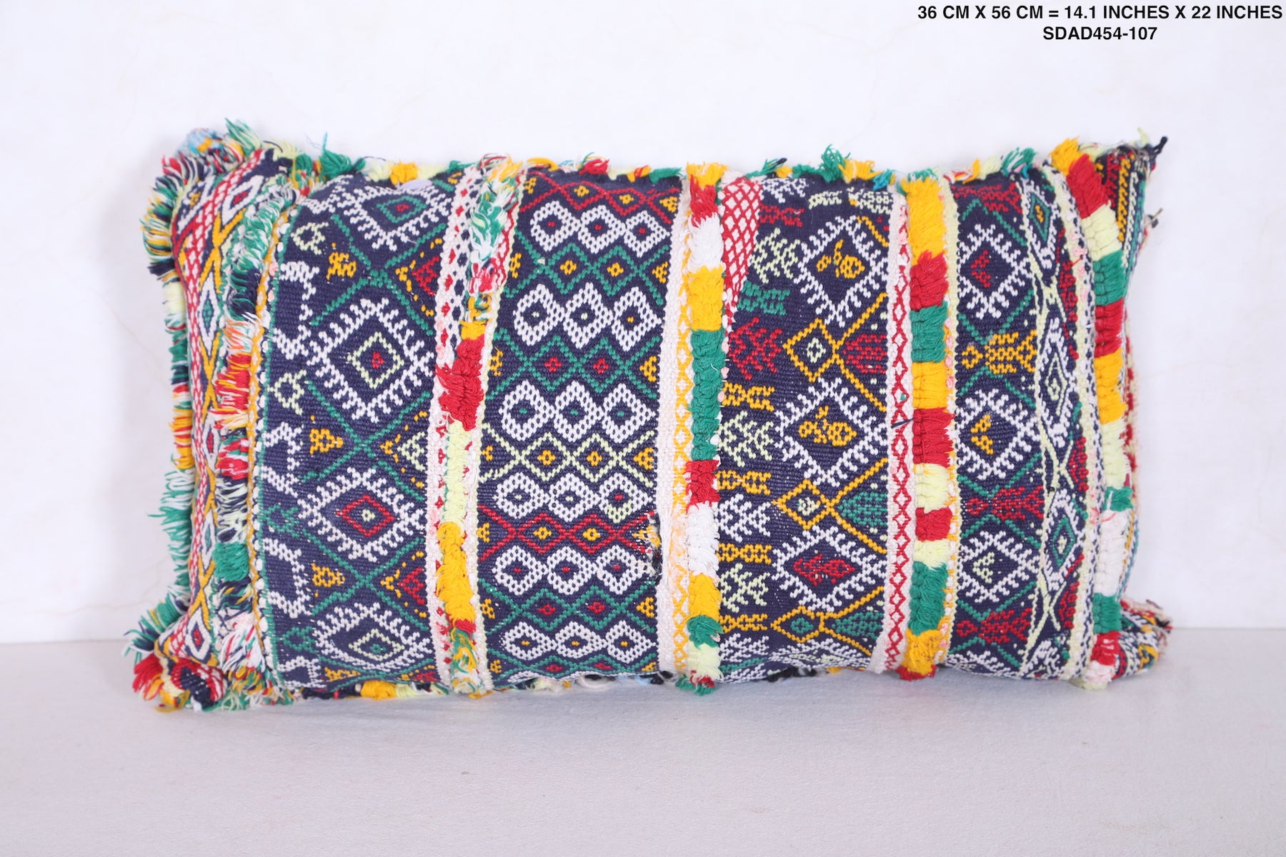 This handmade Moroccan kilim pillow is made with the finest materials, featuring a bright cover with intricate weaving patterns to add a unique touch of exotic style to any room. The 14.1 inch by 22 inch size will fit perfectly on any sofa or bed and provide a comfortable and fashionable resting spot.