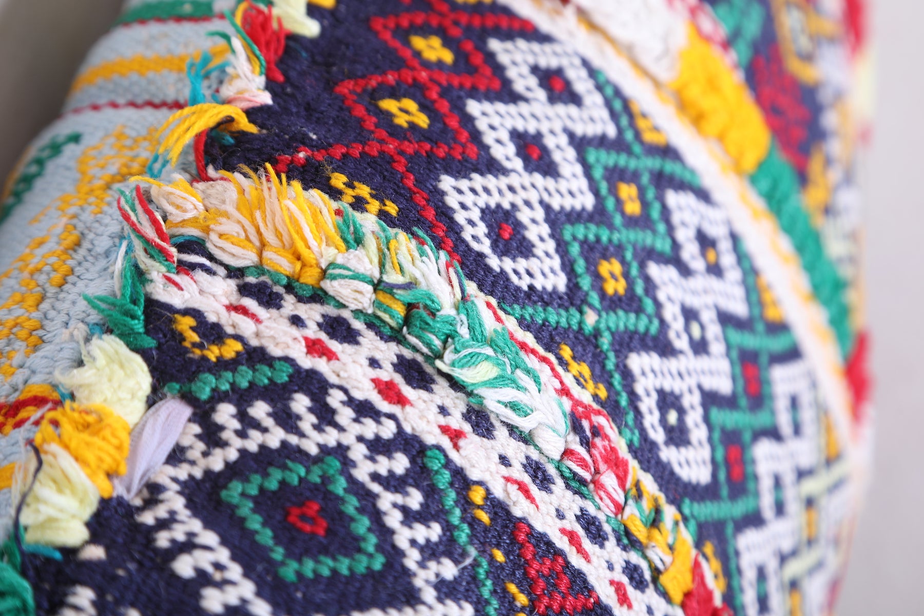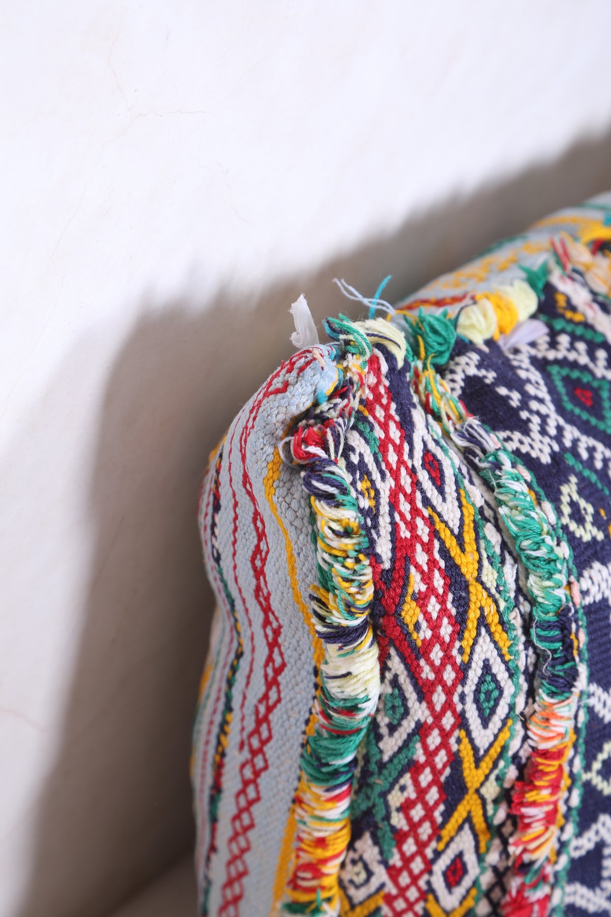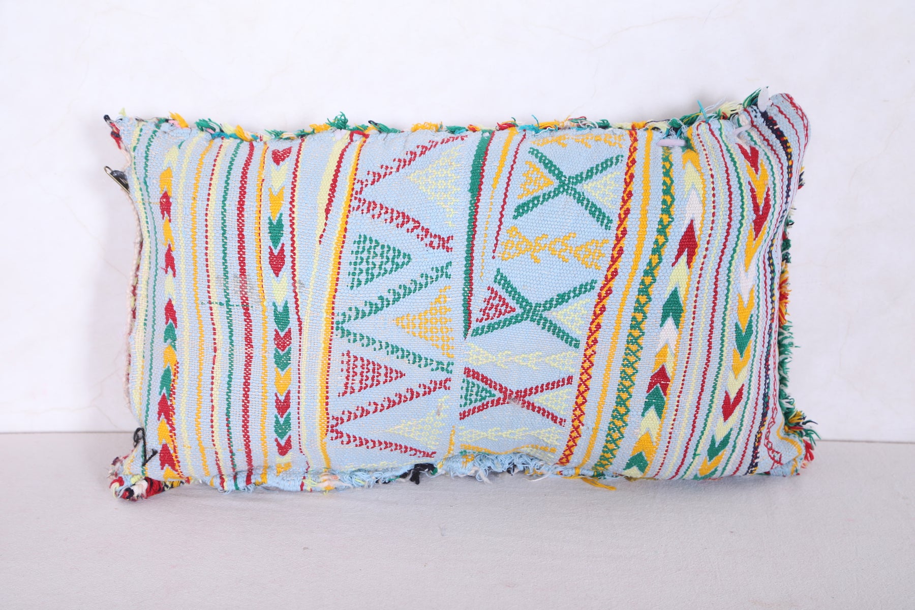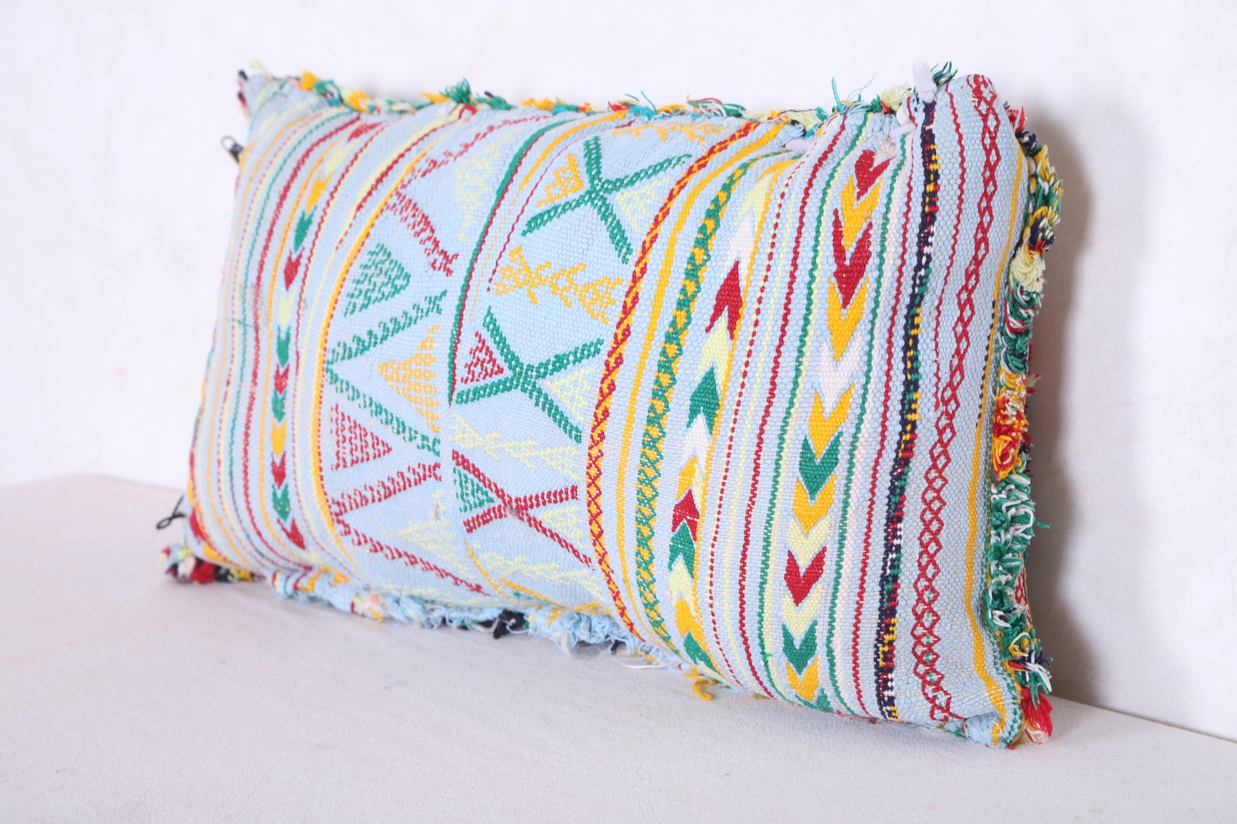 This handmade Moroccan kilim pillow is made with the finest materials, featuring a bright cover with intricate weaving patterns to add a unique touch of exotic style to any room. The 14.1 inch by 22 inch size will fit perfectly on any sofa or bed and provide a comfortable and fashionable resting spot.