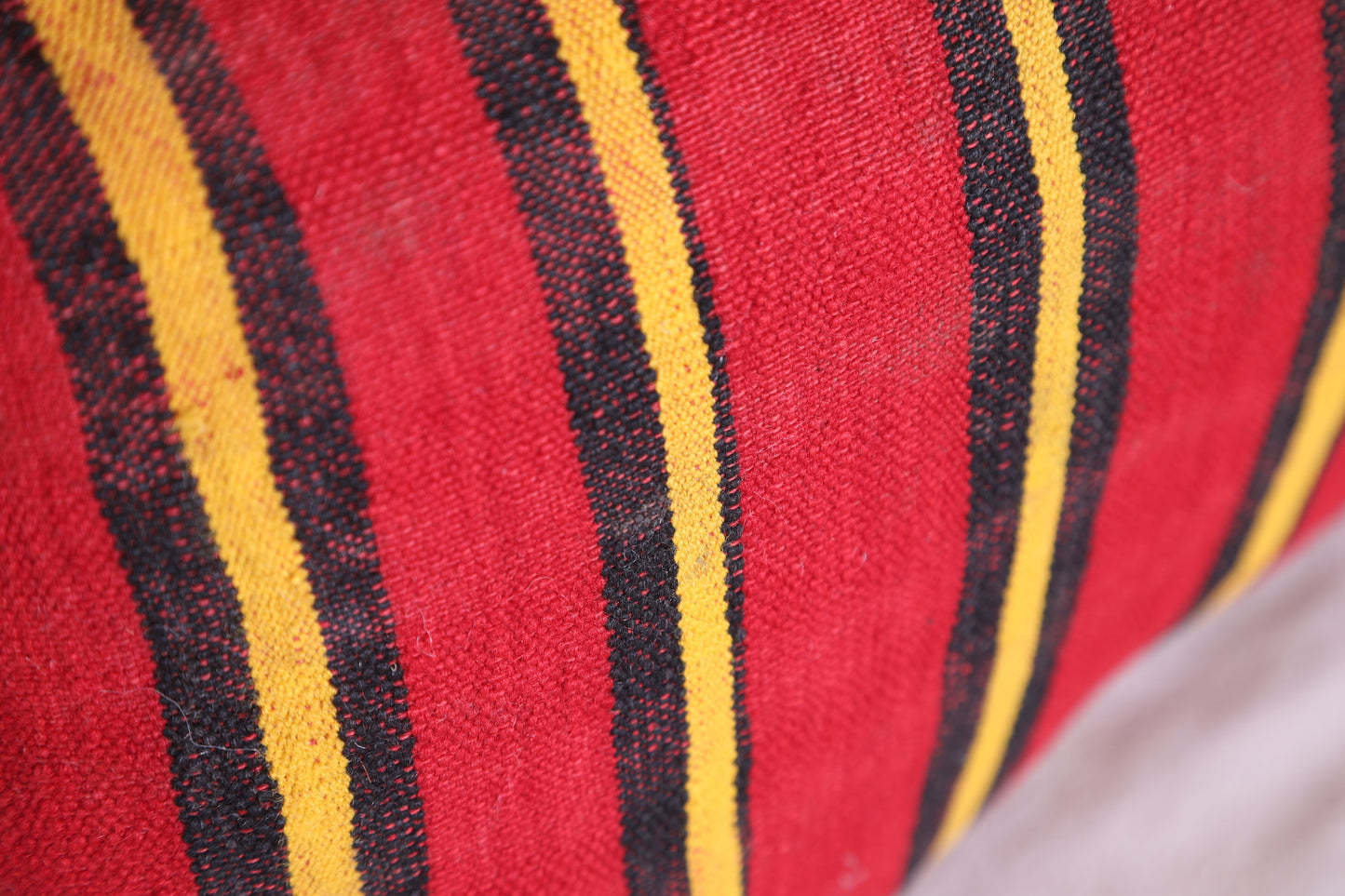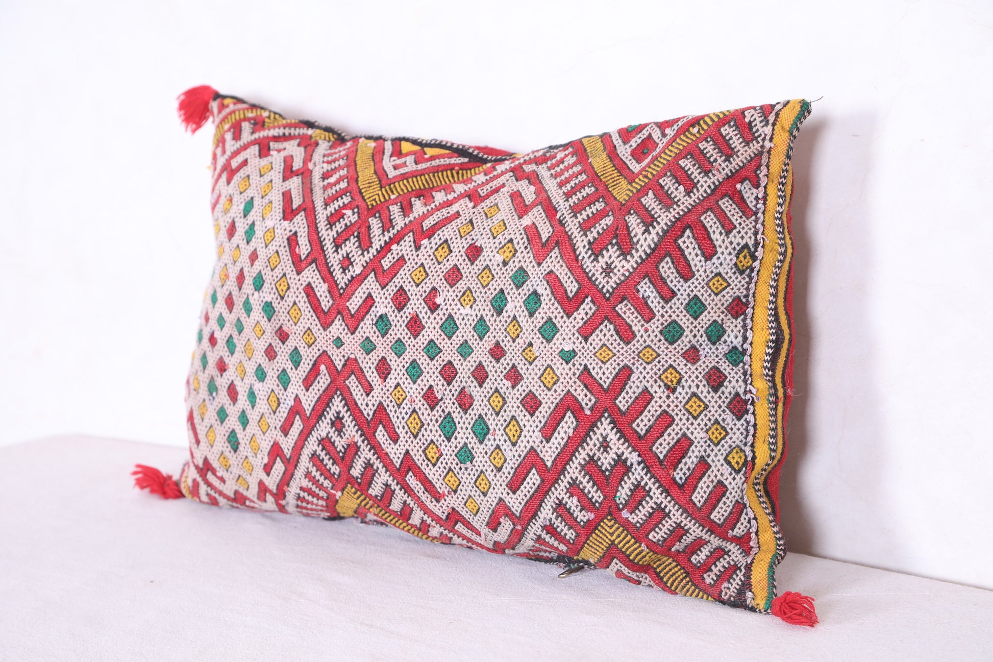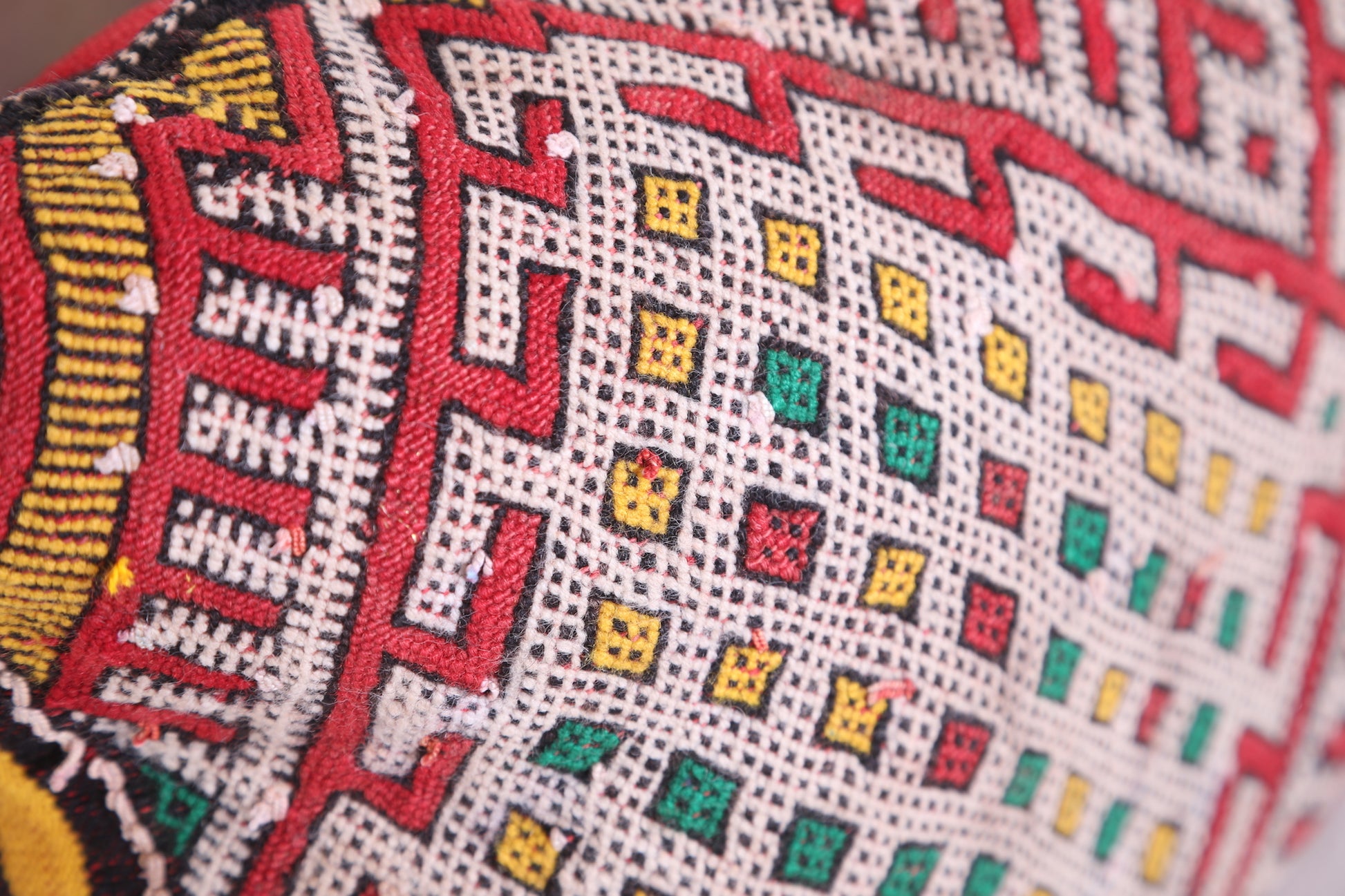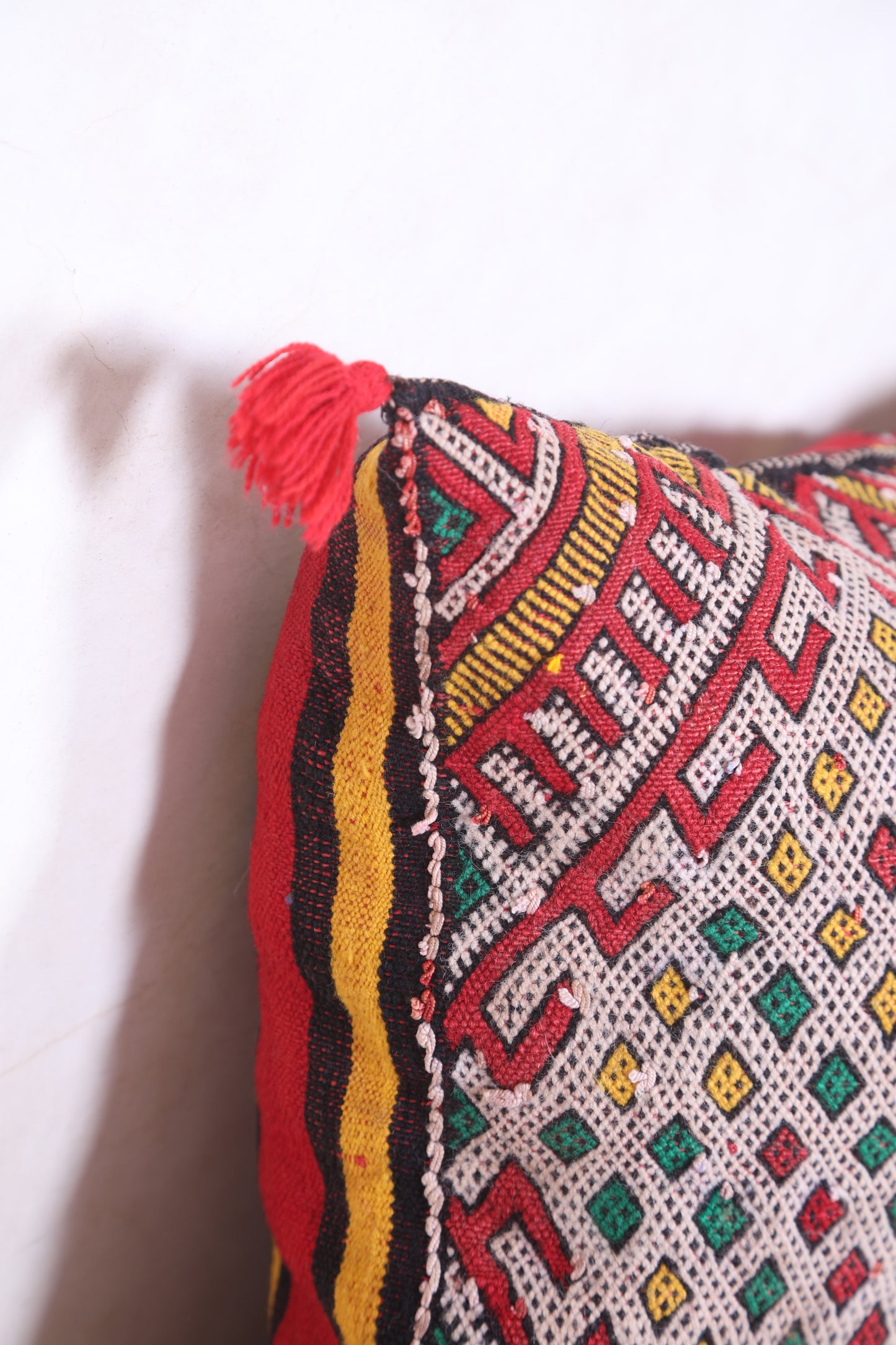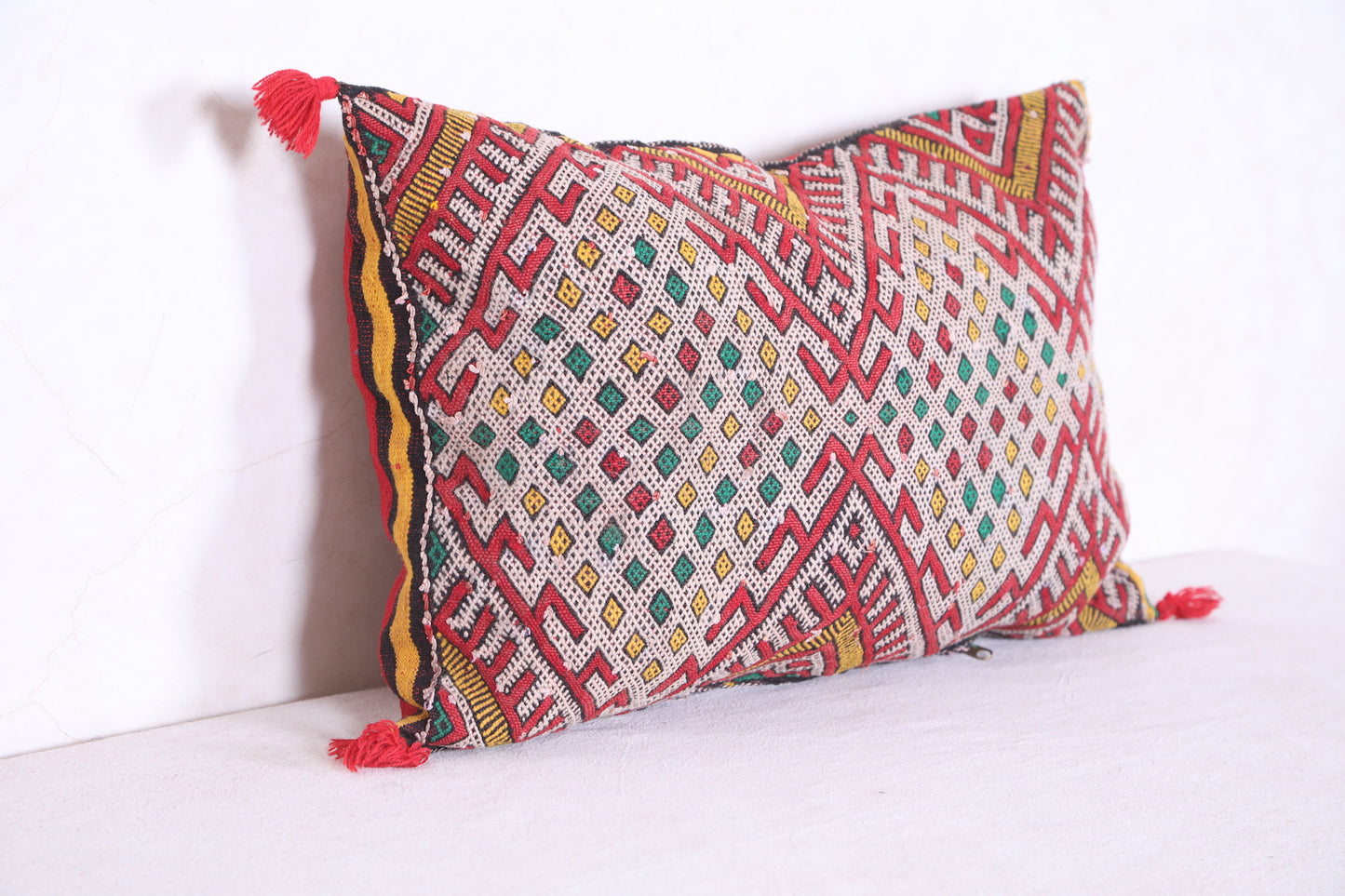 This handmade Moroccan kilim pillow features a unique geometric style with a cotton cover. Its dimensions of 14.5 INCHES X 22 INCHES make it the perfect accent piece for any room. Its vibrant geometric design is sure to bring a modern touch to your home.