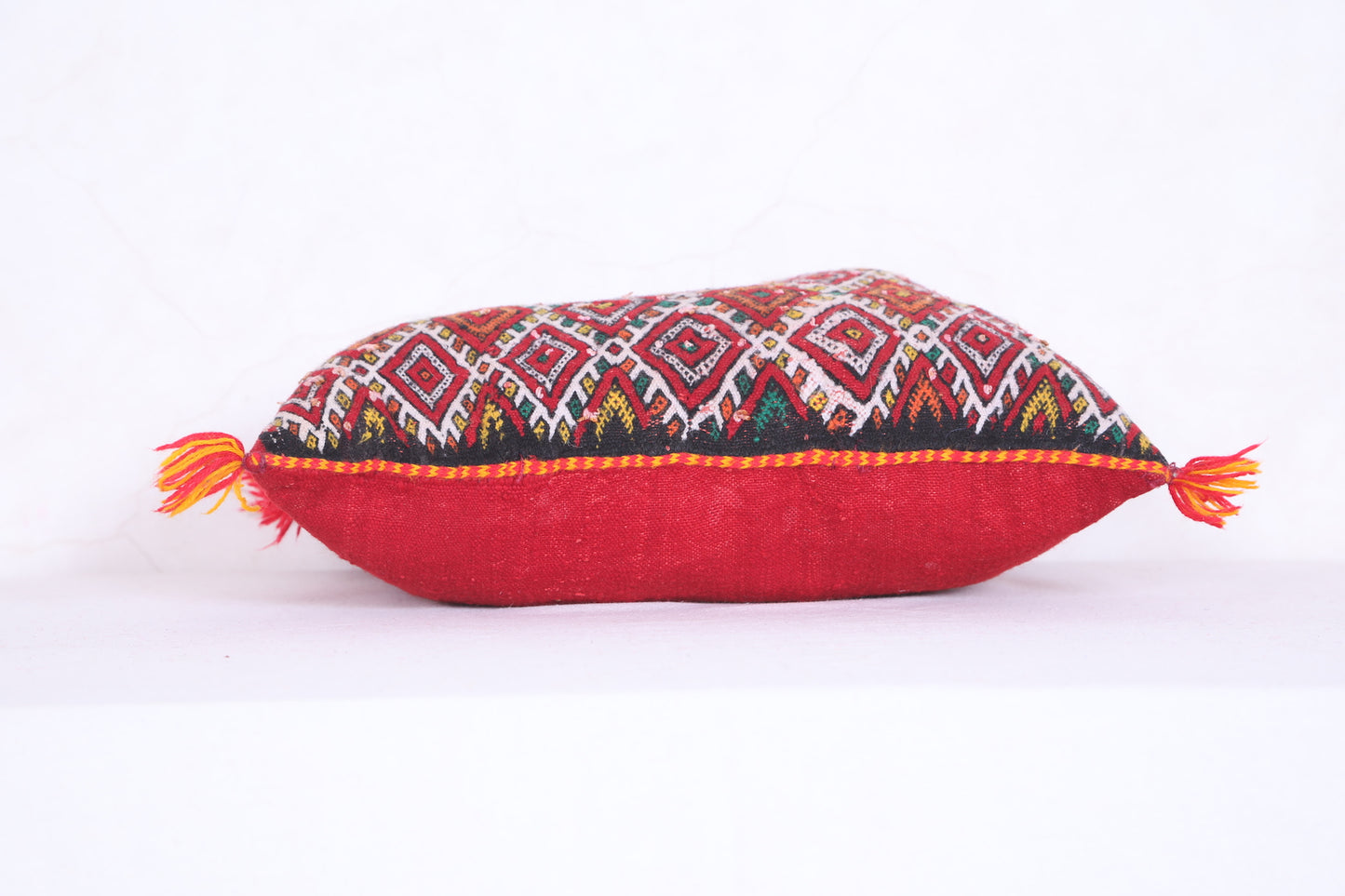 This 14.9 inches X 15.7 inches kilim pillow cover is handmade in Morocco with traditional techniques, creating a unique and vibrant look for your home. This cover is made of soft, smooth materials providing you with a comfortable, luxurious experience. The intricate pattern of the cover adds a unique and stylish accent to any space.