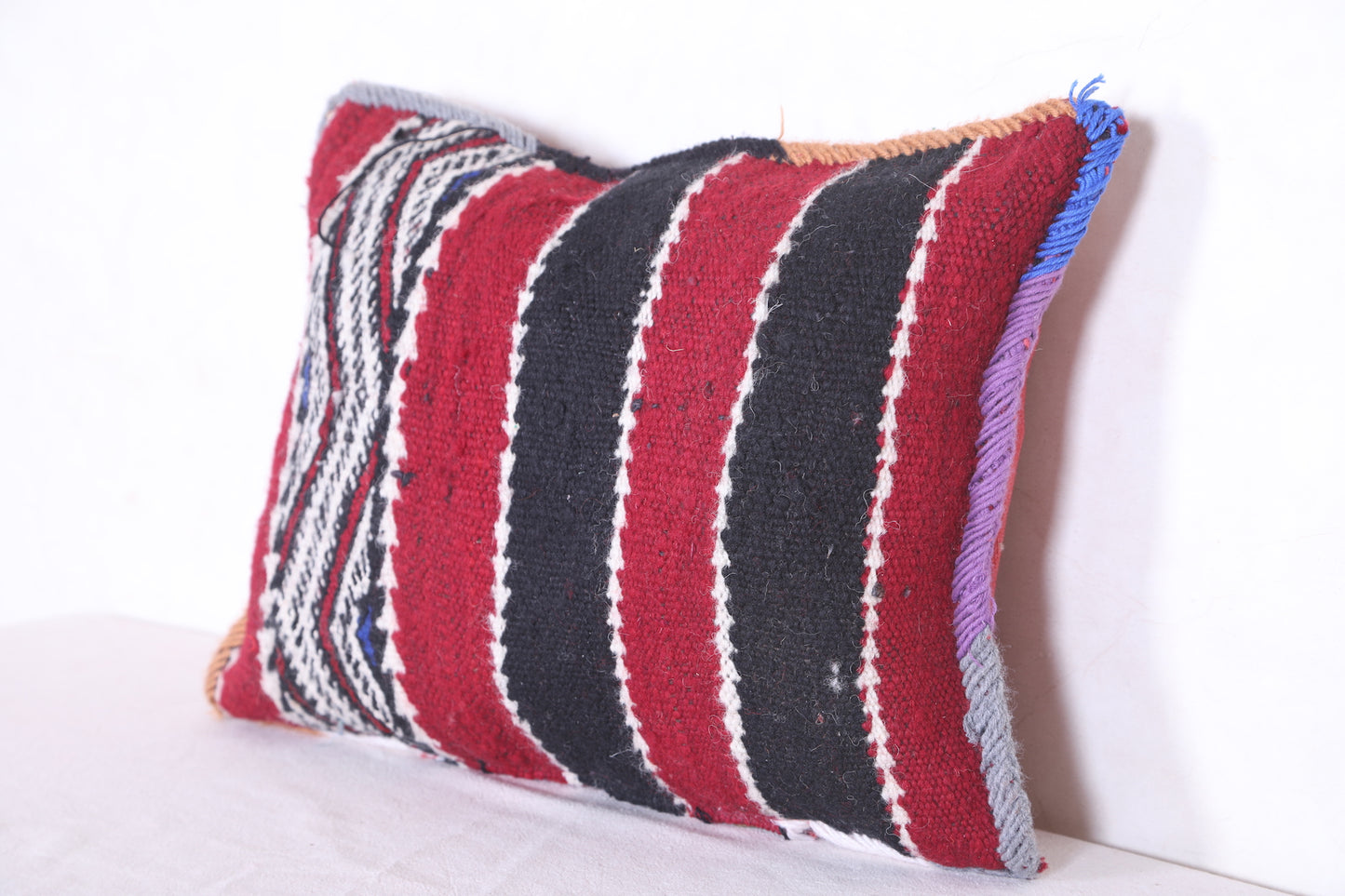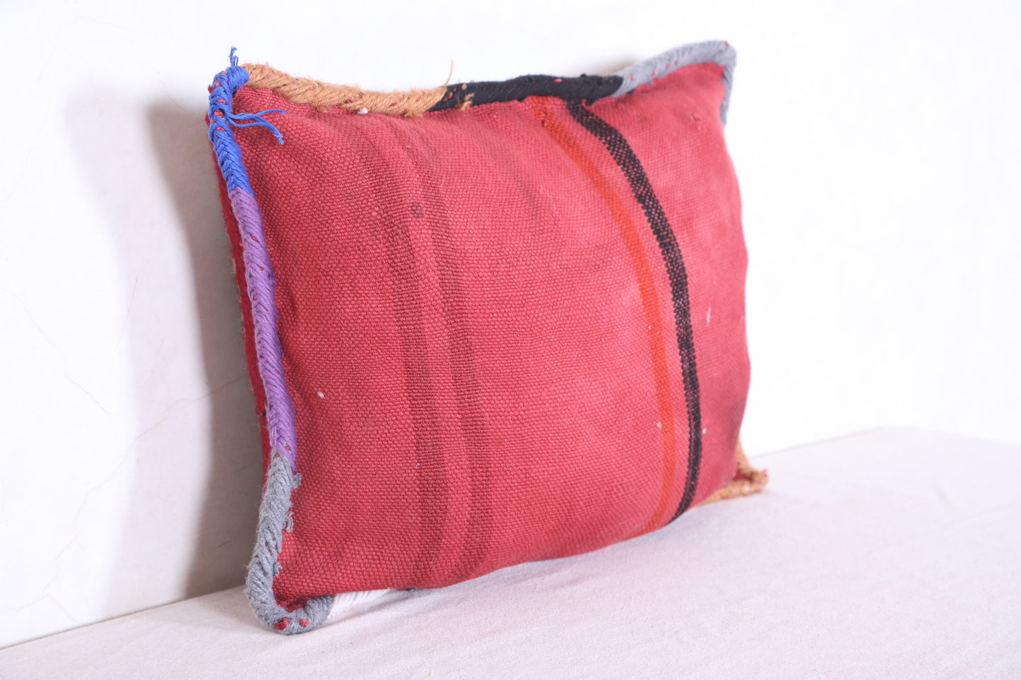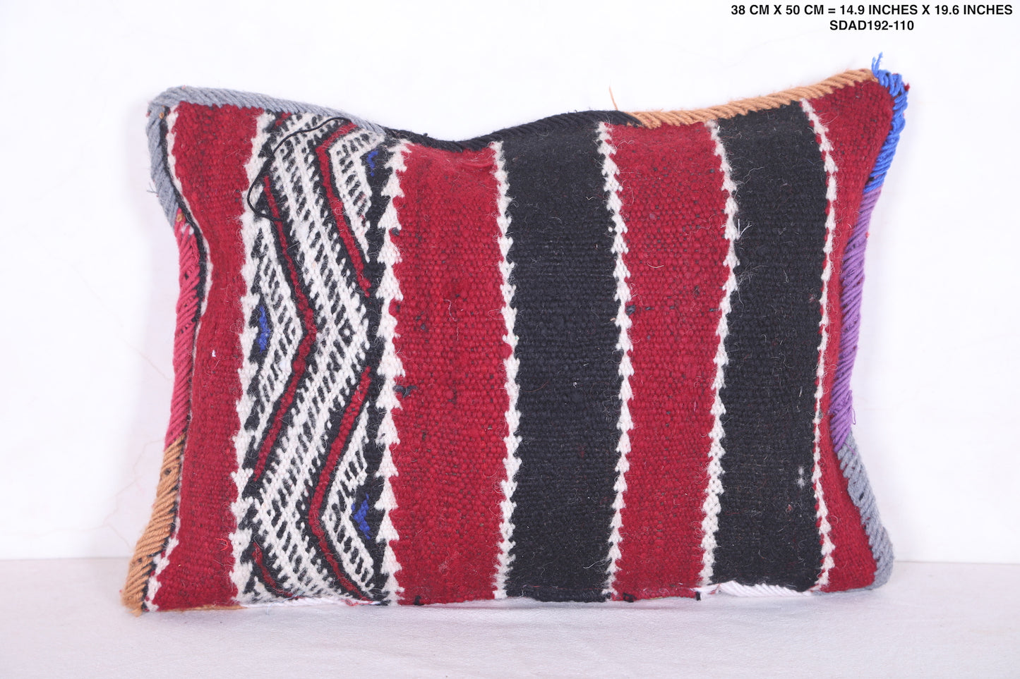 This beautiful Moroccan handmade kilim pillow is perfect for adding a touch of color and texture to any home décor. Crafted from a durable cover measuring 14.9 inches by 19.6 inches, this kilim pillow makes for a versatile and attractive accent piece.