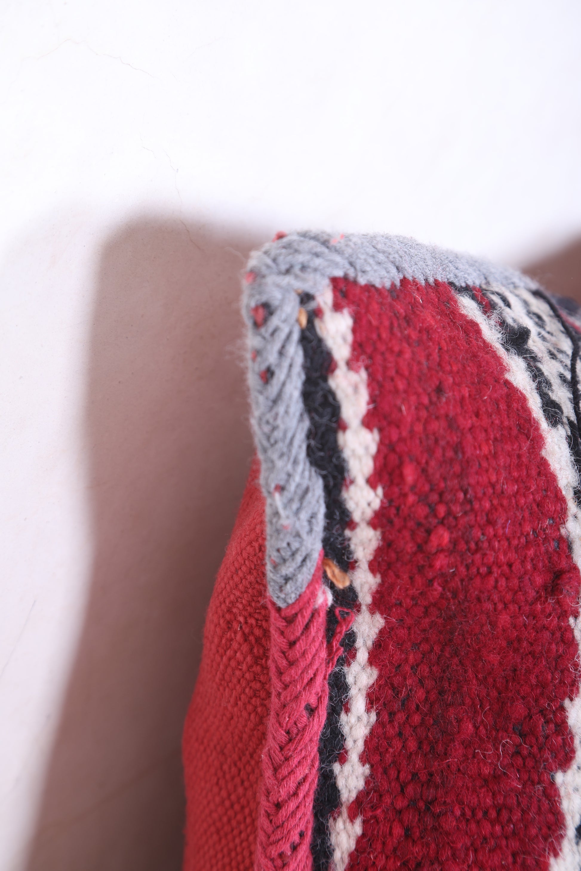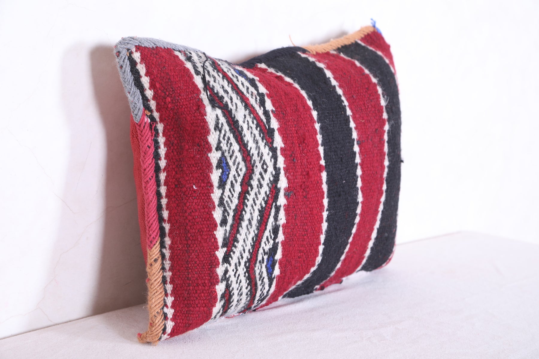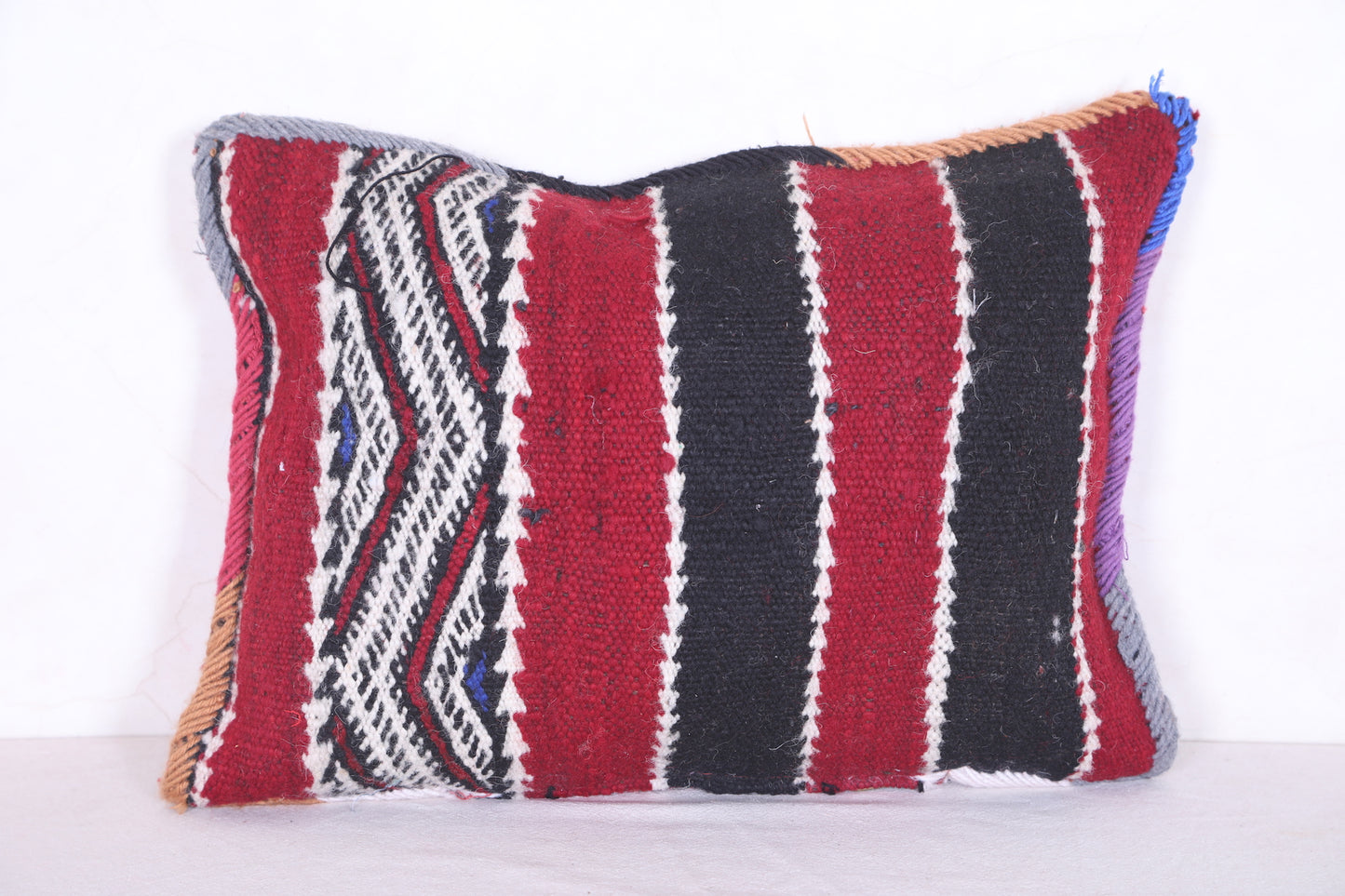 This beautiful Moroccan handmade kilim pillow is perfect for adding a touch of color and texture to any home décor. Crafted from a durable cover measuring 14.9 inches by 19.6 inches, this kilim pillow makes for a versatile and attractive accent piece.