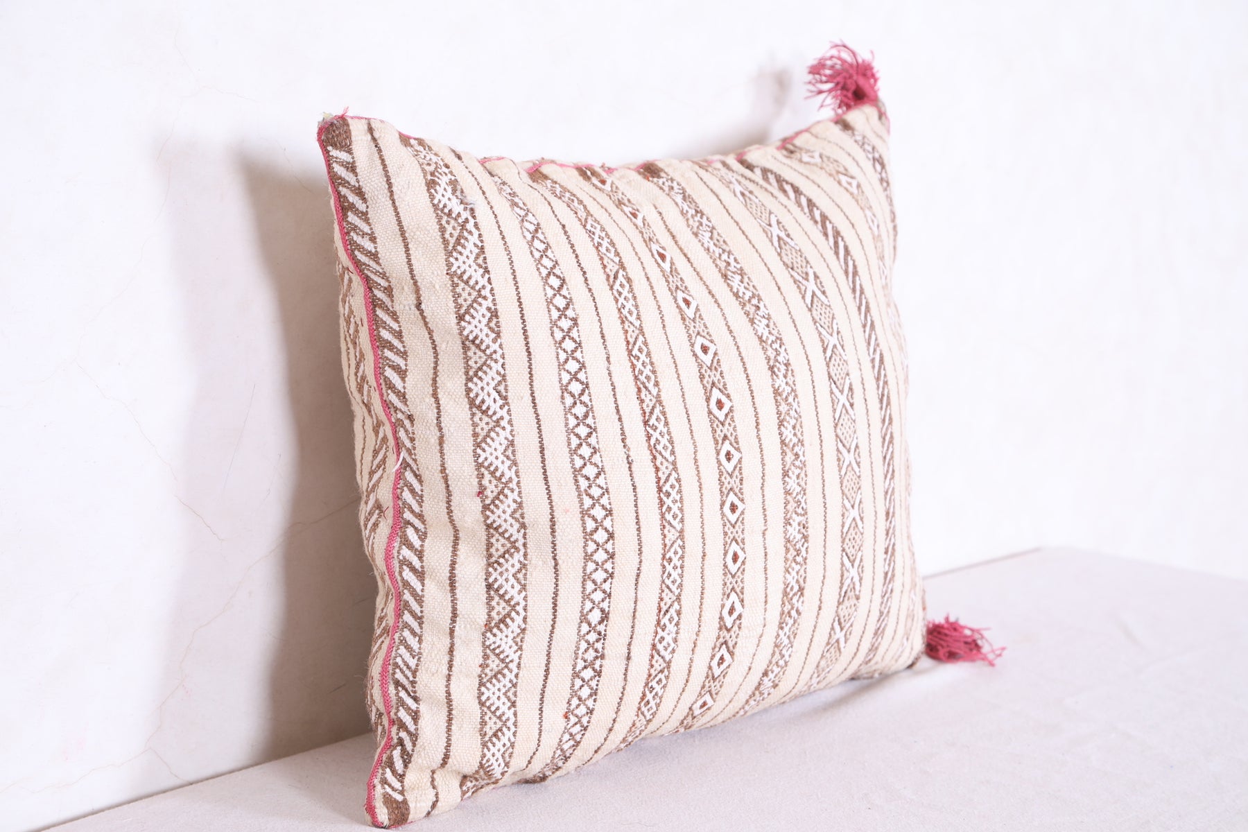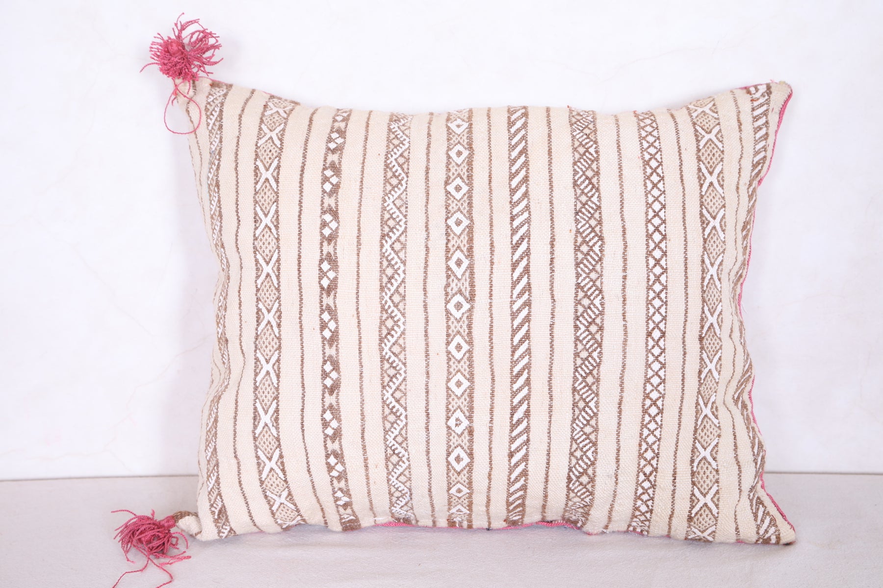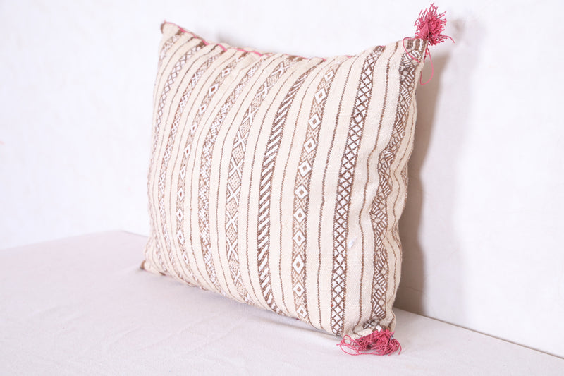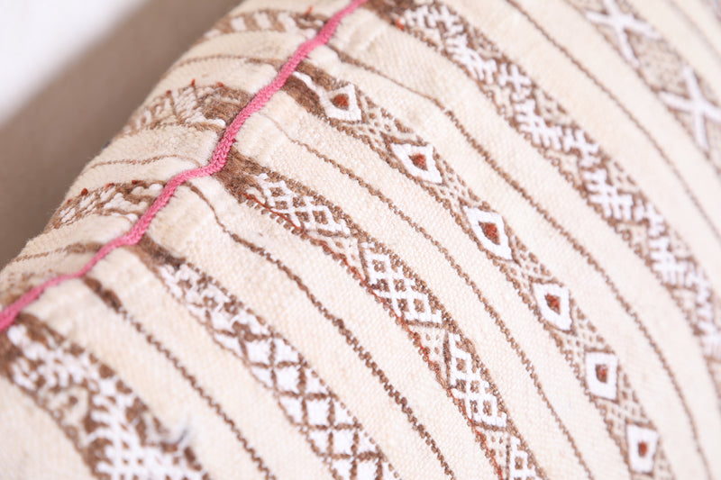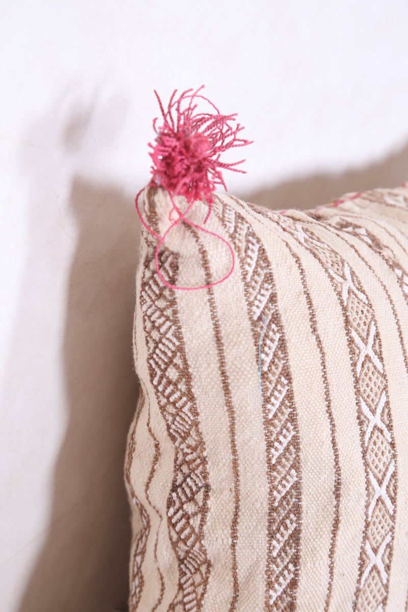This Moroccan handmade kilim pillow provides a unique addition to any home. Its 15.3 INCHES X 18.5 INCHES size allows for maximum versatility as a stand-alone decorative piece or as part of a larger themed display. The cover is expertly crafted from sustainable, eco-friendly materials, offering a soft yet durable touch. Add something special to your living space with this beautiful handmade pillow.