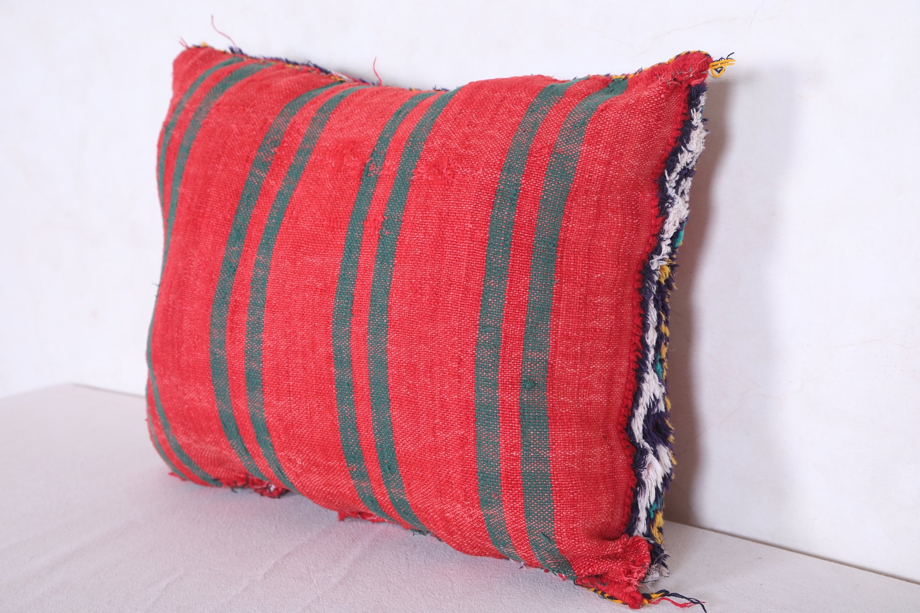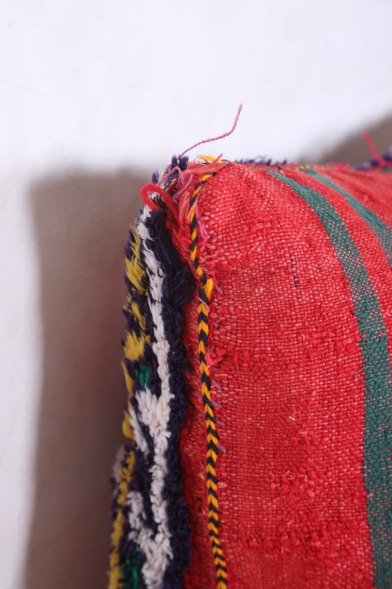 This handmade Moroccan kilim pillow cover is a unique way to add a touch of international style to your home. Its colorful 15.7" x 19.6" dimensions make it the perfect size for throwing on a couch or chair. Crafted with a traditional motif, it showcases a rich cultural heritage.