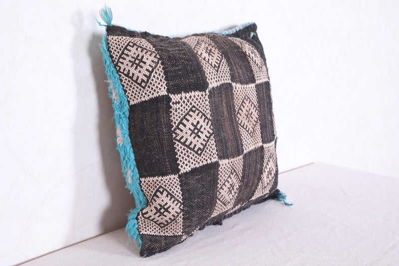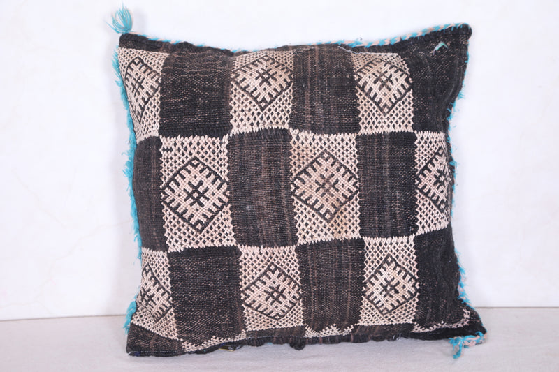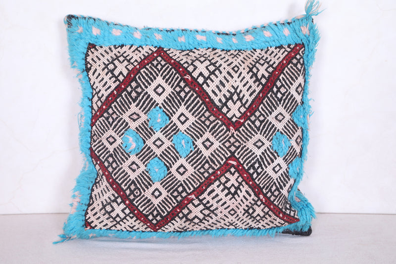 This vibrant Moroccan kilim pillow cover features a unique handmade design, carefully crafted with traditional weaving techniques. It measures 16.1 inches wide and 17.3 inches long, making it perfect for a variety of settings. Enjoy a truly unique piece of Moroccan artistry in your home.