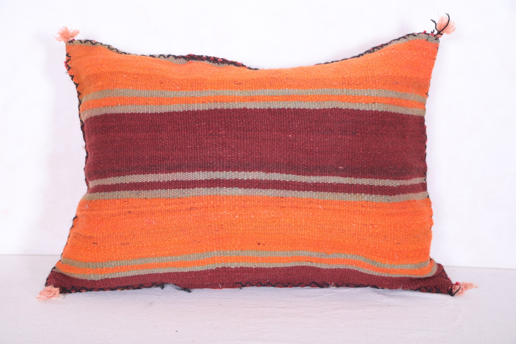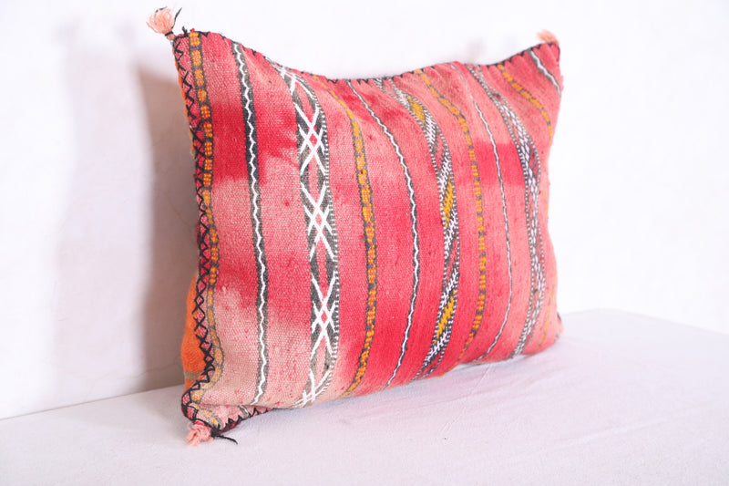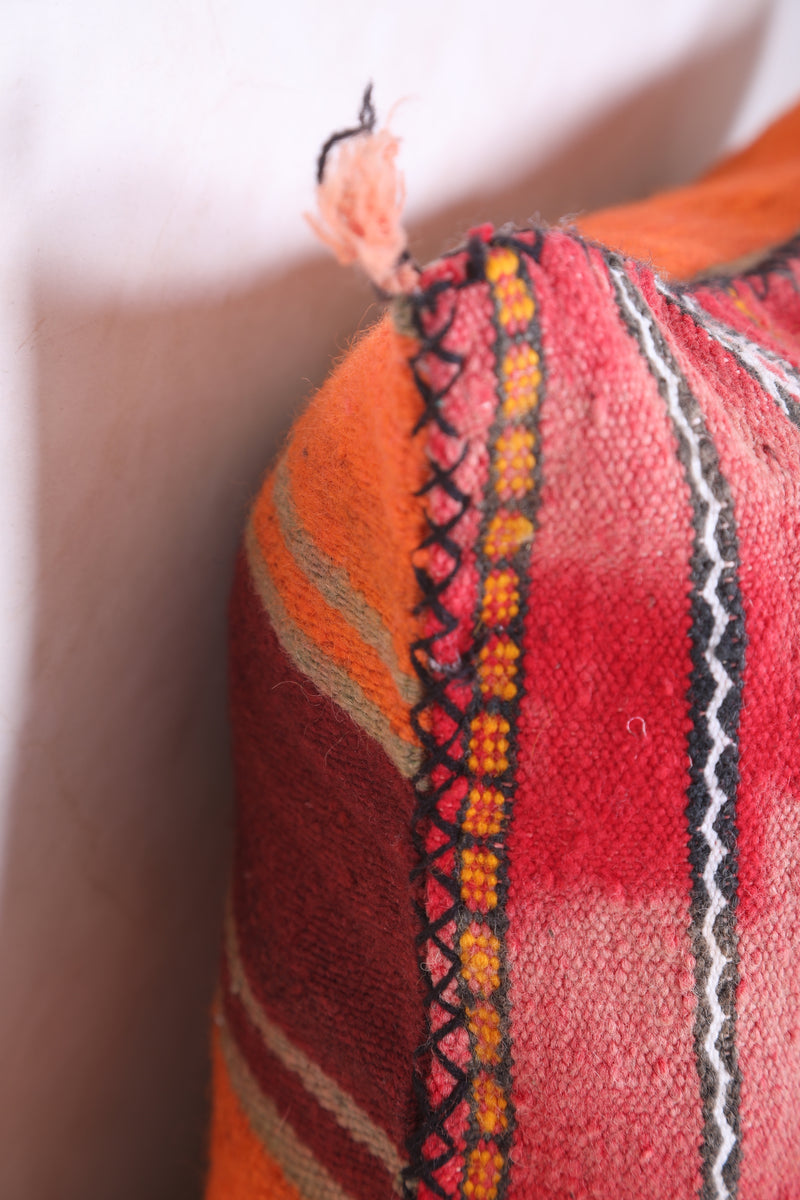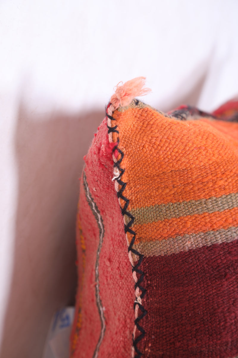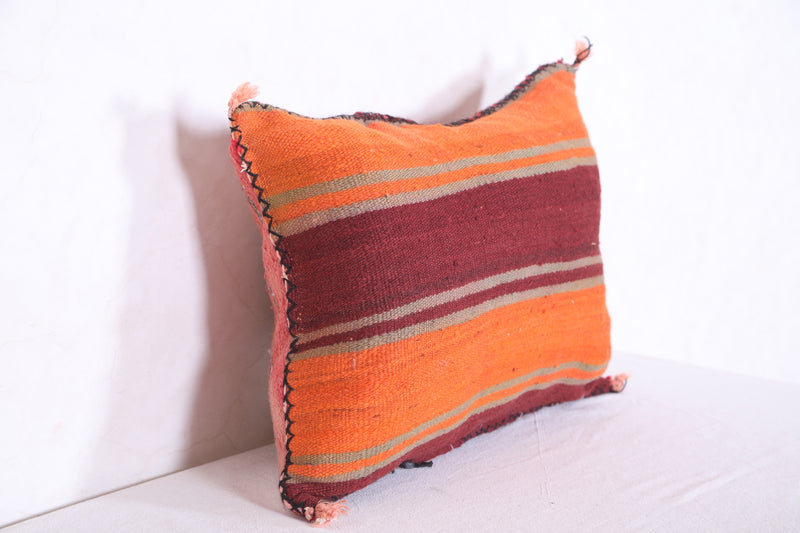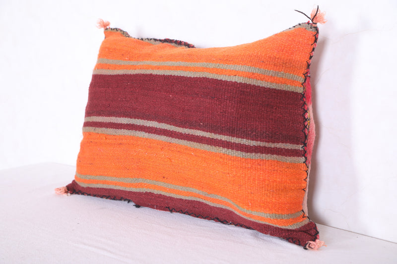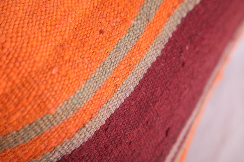 This eye-catching handmade kilim pillow features a beautiful cover in muted blues and bright oranges. Crafted with durable and breathable wool, this 16.9" x 22.8" cushion will add a vibrant touch to any living space.