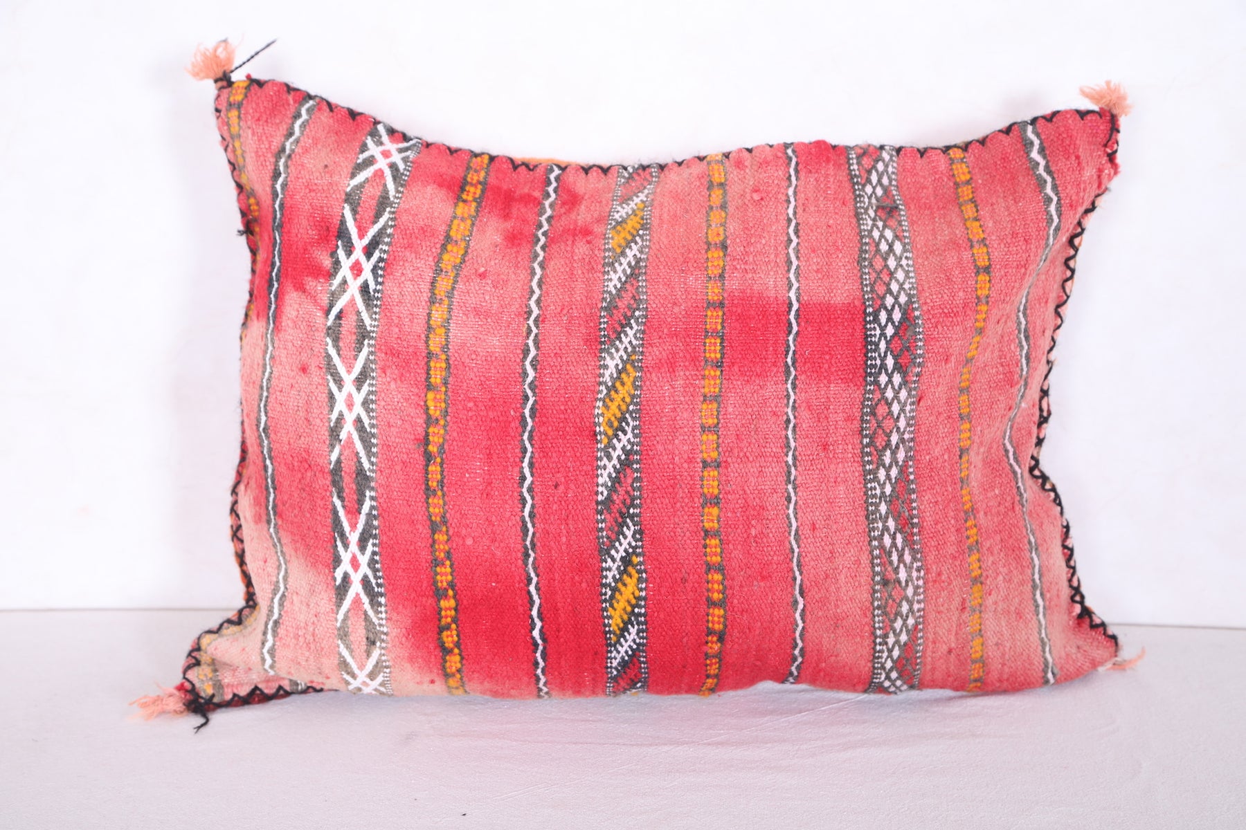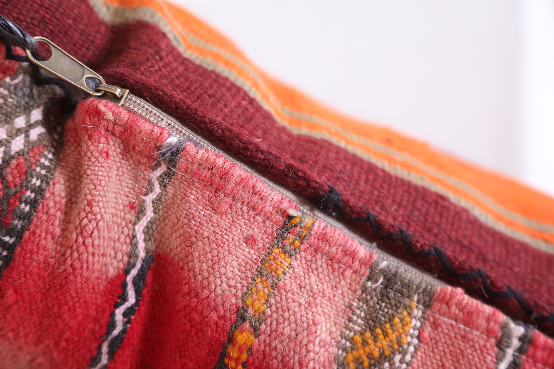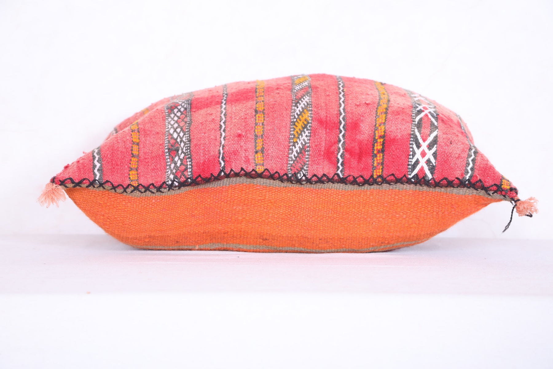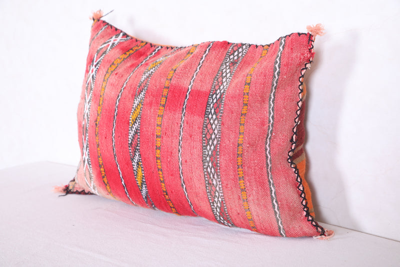This eye-catching handmade kilim pillow features a beautiful cover in muted blues and bright oranges. Crafted with durable and breathable wool, this 16.9" x 22.8" cushion will add a vibrant touch to any living space.