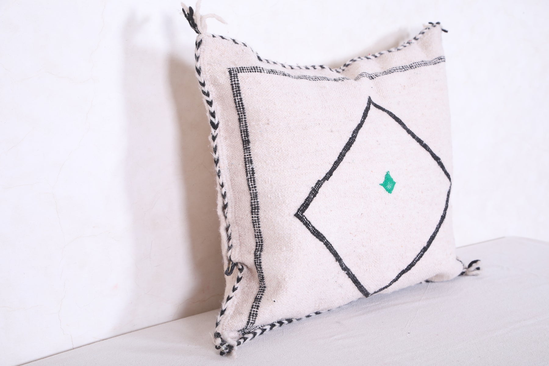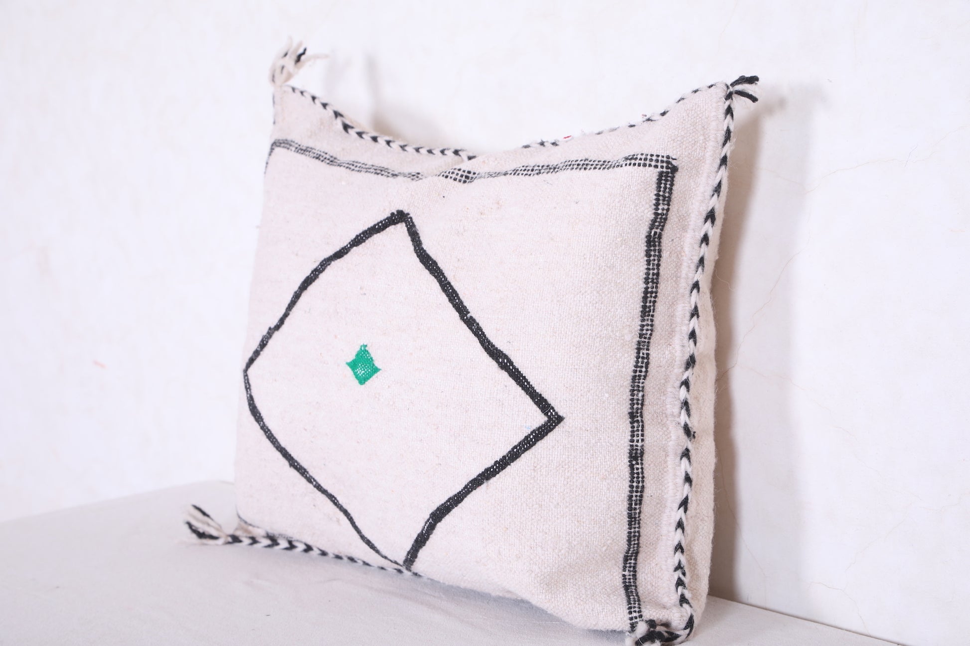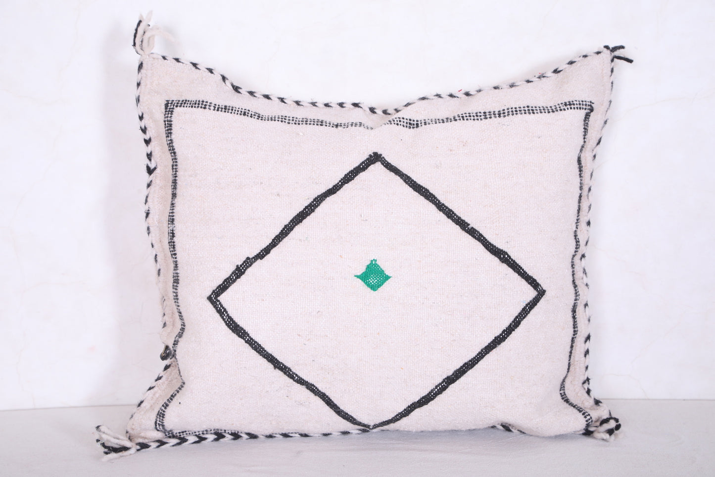 This Moroccan handmade kilim pillow is exquisitely crafted by expert artisans using traditional techniques. Its cover features bold motifs, intricate geometric patterns, and vivid colors that will instantly transform any decor. Made from 100% wool, it measures 18.1” X 22” and adds a unique touch of elegance to any room.
