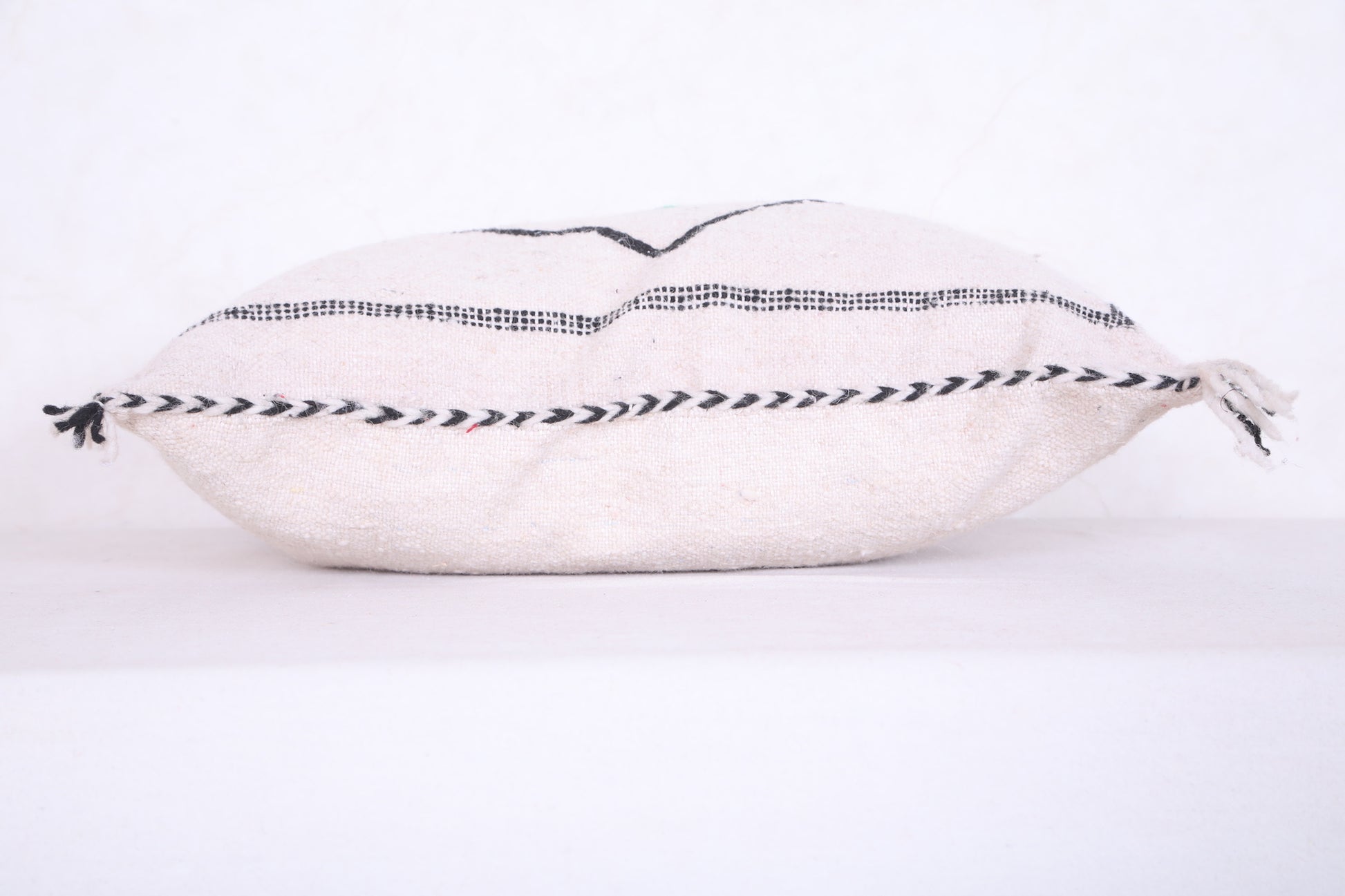 This Moroccan handmade kilim pillow makes an eye-catching addition to any home. Its vibrant colors and intricate patterns are sure to bring life to any living space. At 18.1 inches by 22 inches, it is the perfect size for any couch or chair. Its comfortable cushion is sure to make it a favorite spot for all guests.