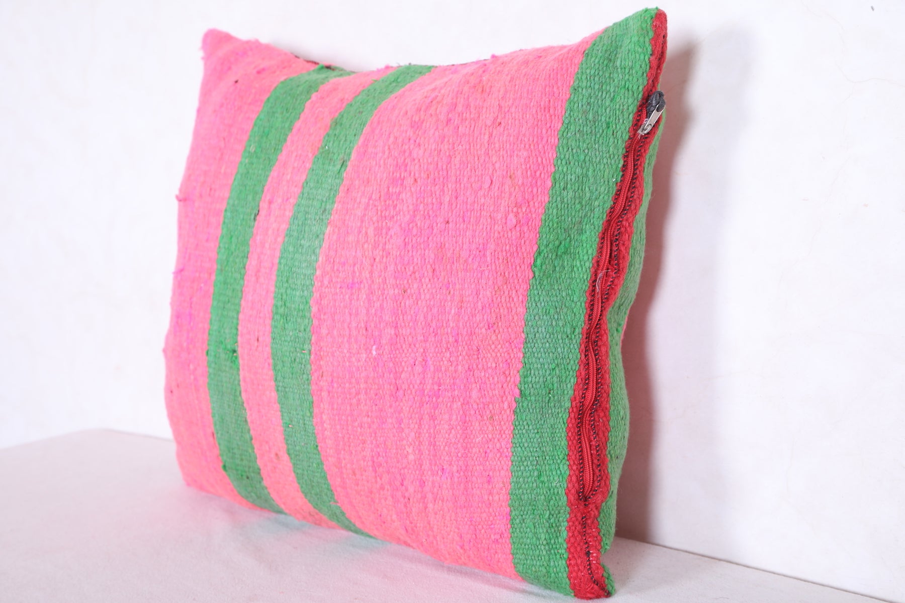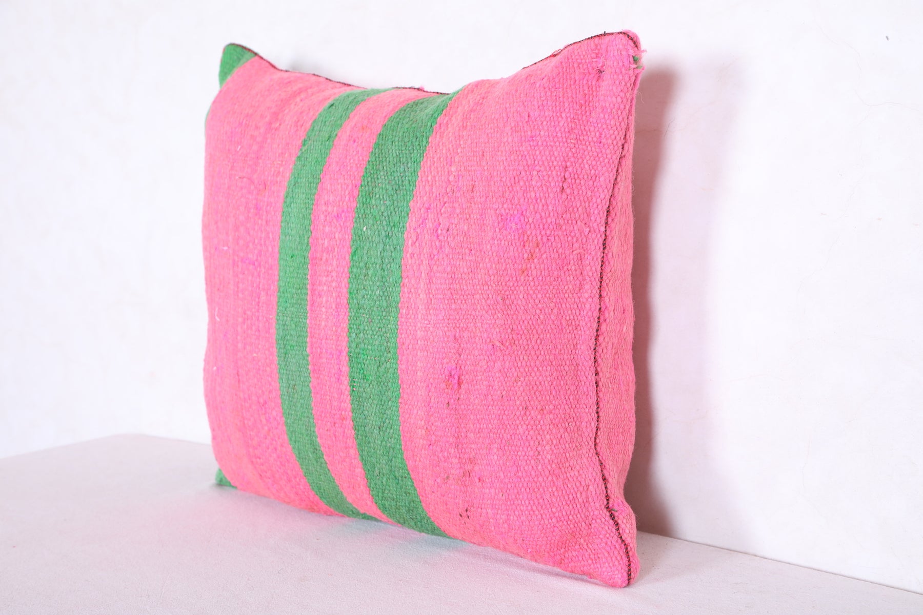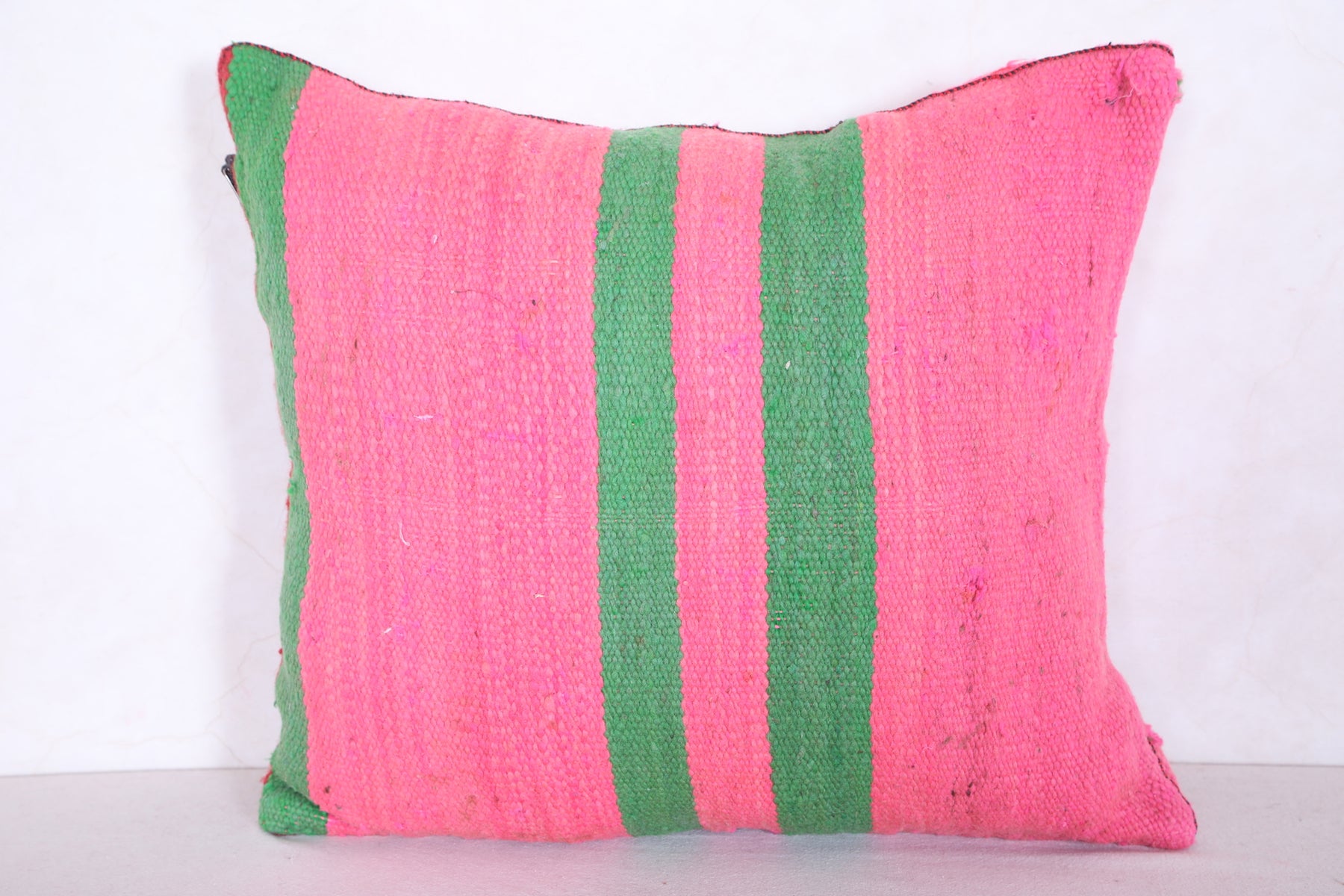 This 18.8 inch by 20.4 inch Moroccan handmade kilim pillow cover adds a luxurious, ethnic touch to any interior. Expertly crafted by skilled artisans from natural wool, this unique piece provides an authentic and eye-catching addition to any home.