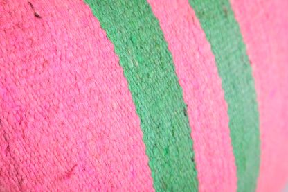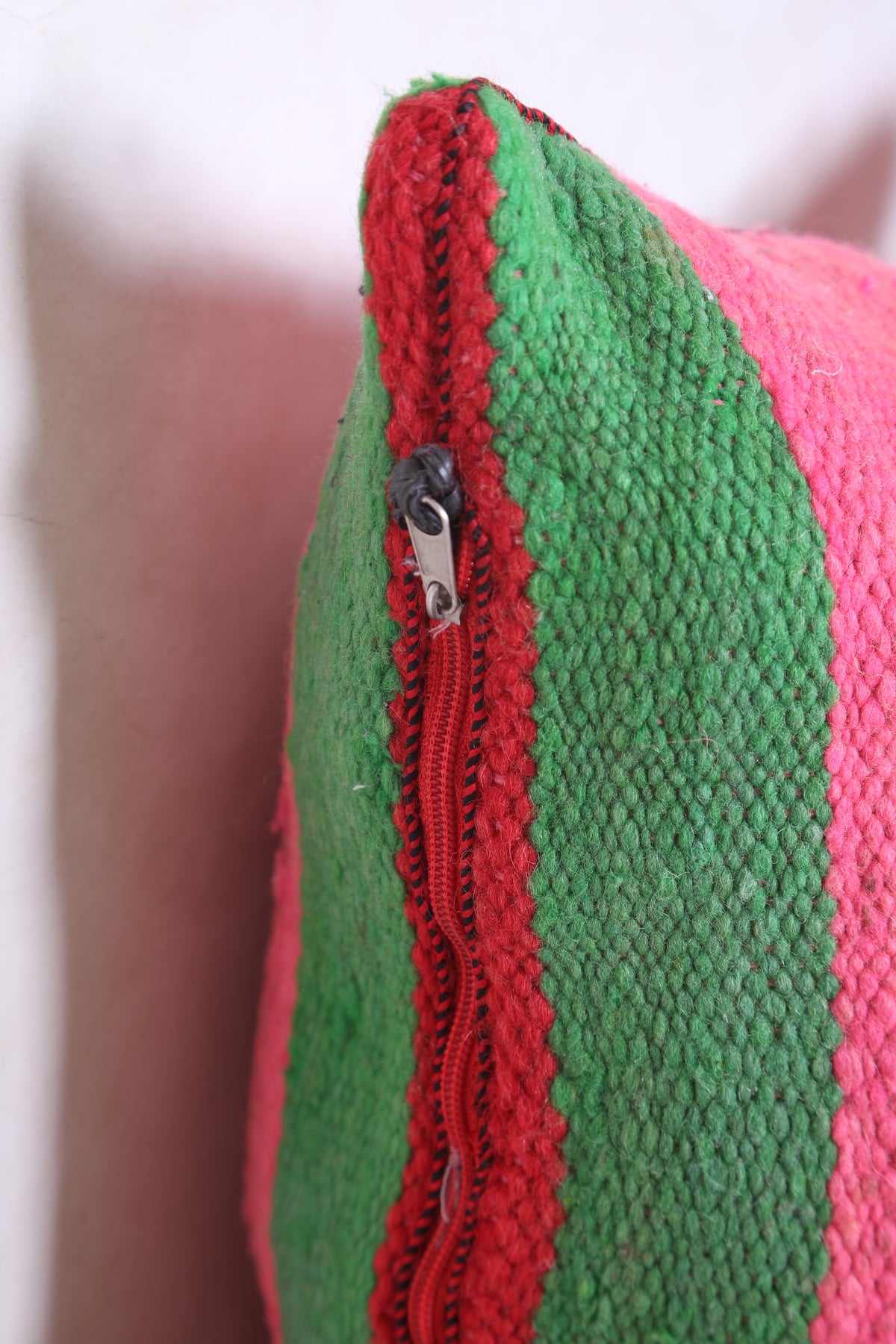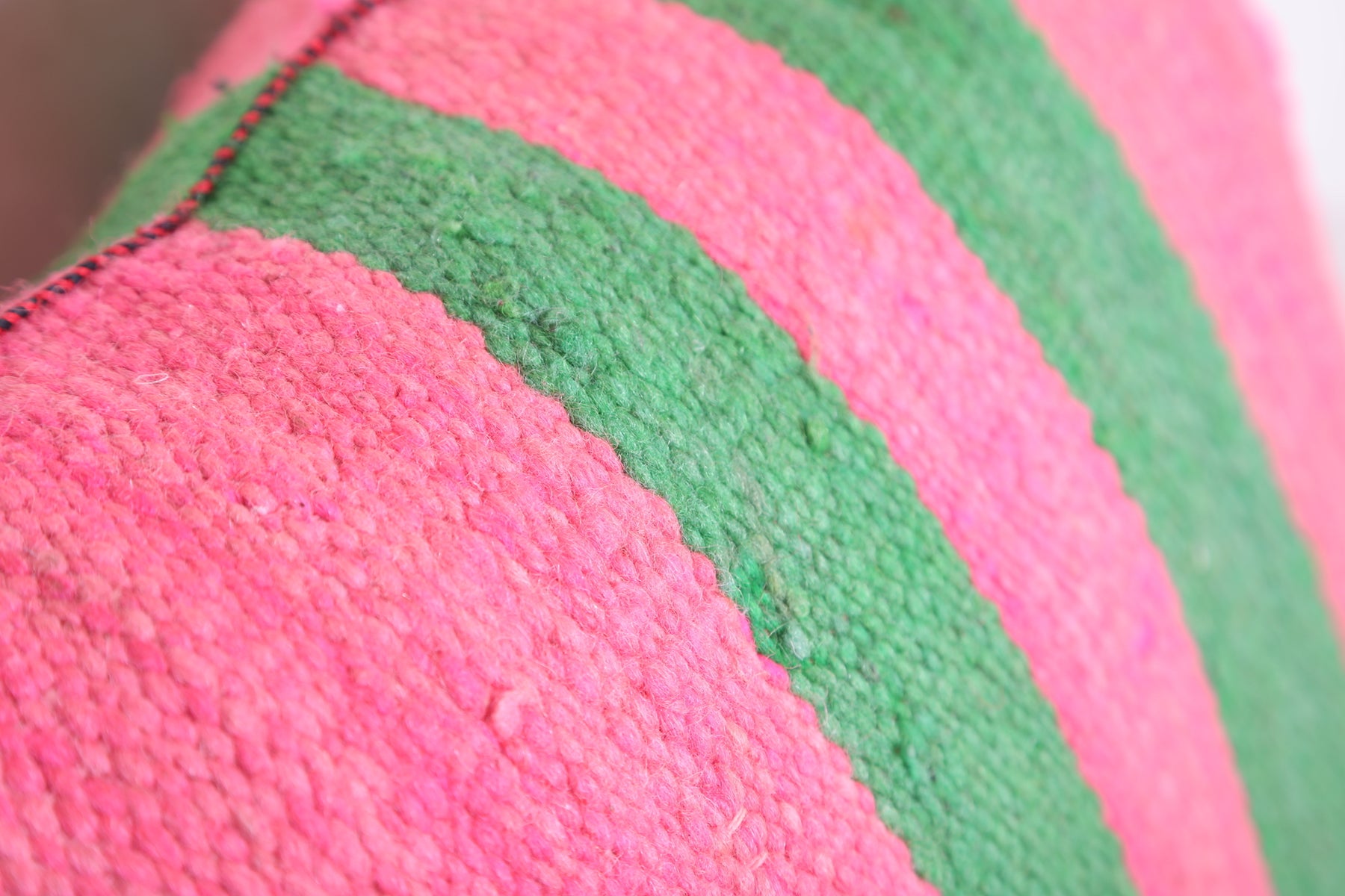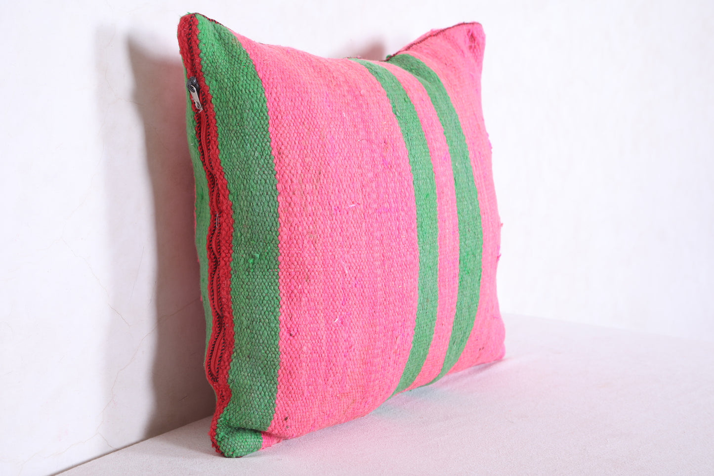 This 18.8 inch by 20.4 inch Moroccan handmade kilim pillow cover adds a luxurious, ethnic touch to any interior. Expertly crafted by skilled artisans from natural wool, this unique piece provides an authentic and eye-catching addition to any home.