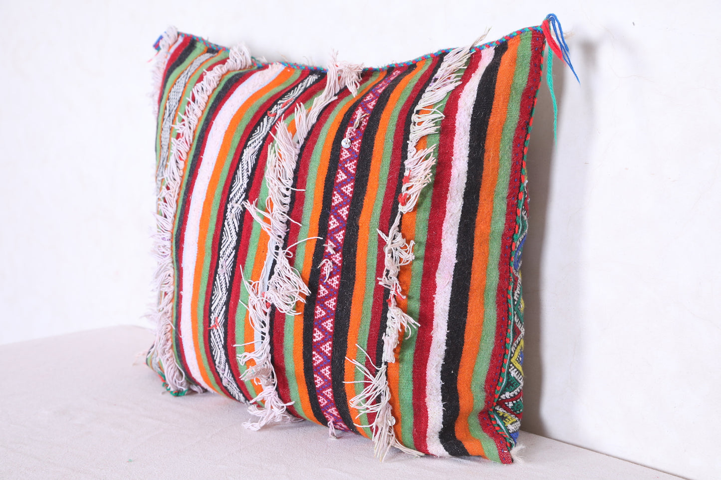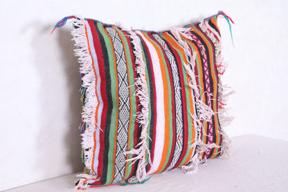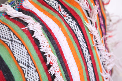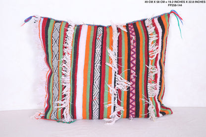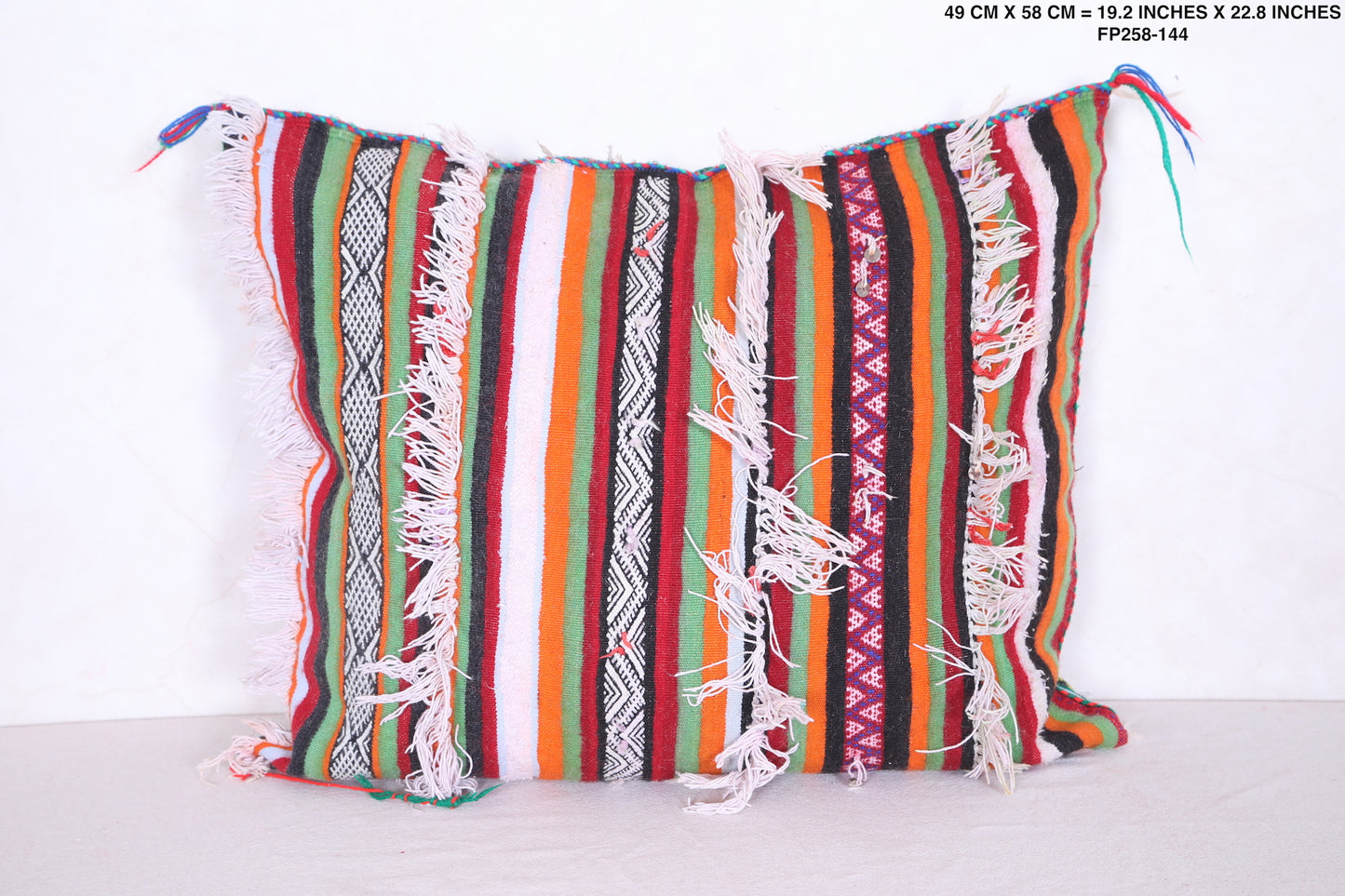 Unwind in style with our Striped Moroccan pillow. This vintage rug pillow is filled with comfort and adds a touch of Morocco to your home decor. Measuring 19.2 x 22.8 inches, it's the perfect size for any space. Elevate your interior design with our vintage kilim pillow.