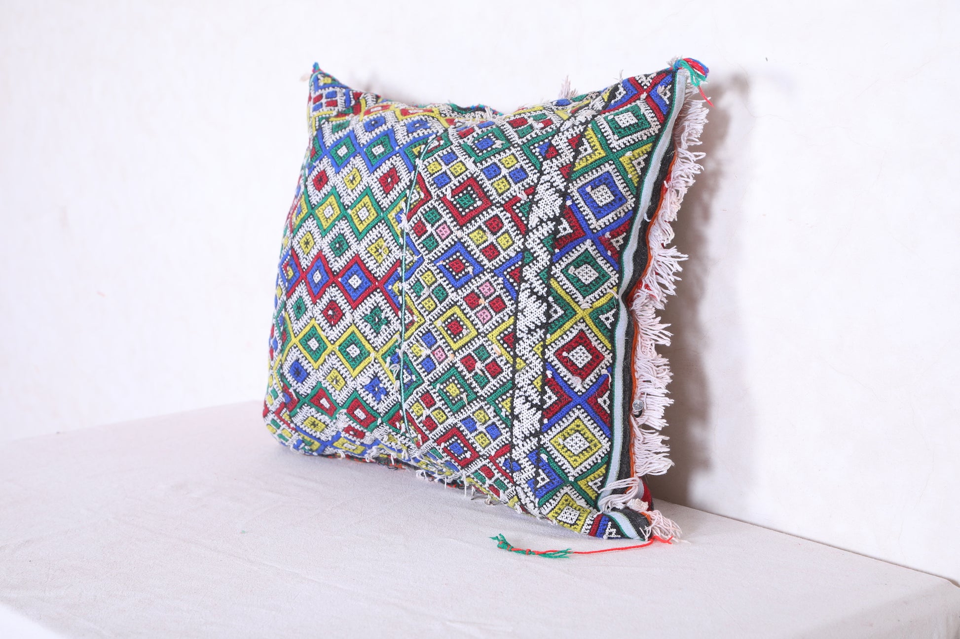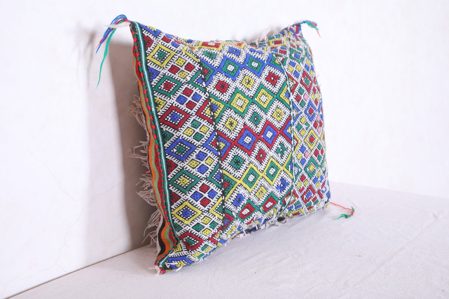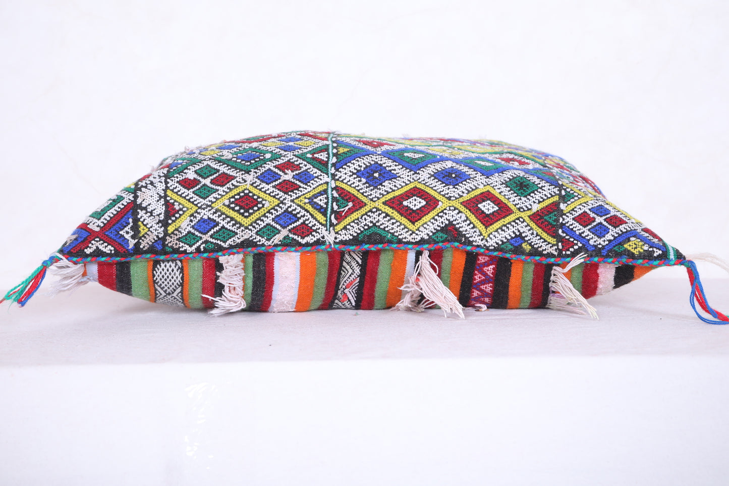 Unwind in style with our Striped Moroccan pillow. This vintage rug pillow is filled with comfort and adds a touch of Morocco to your home decor. Measuring 19.2 x 22.8 inches, it's the perfect size for any space. Elevate your interior design with our vintage kilim pillow.