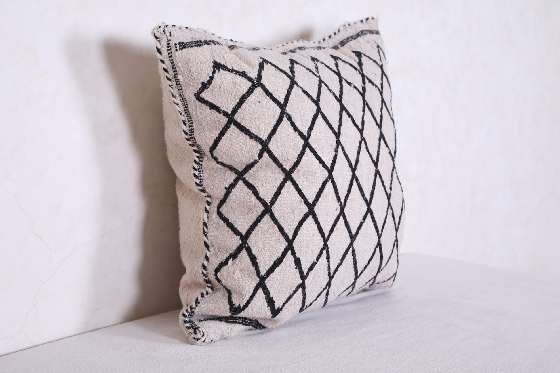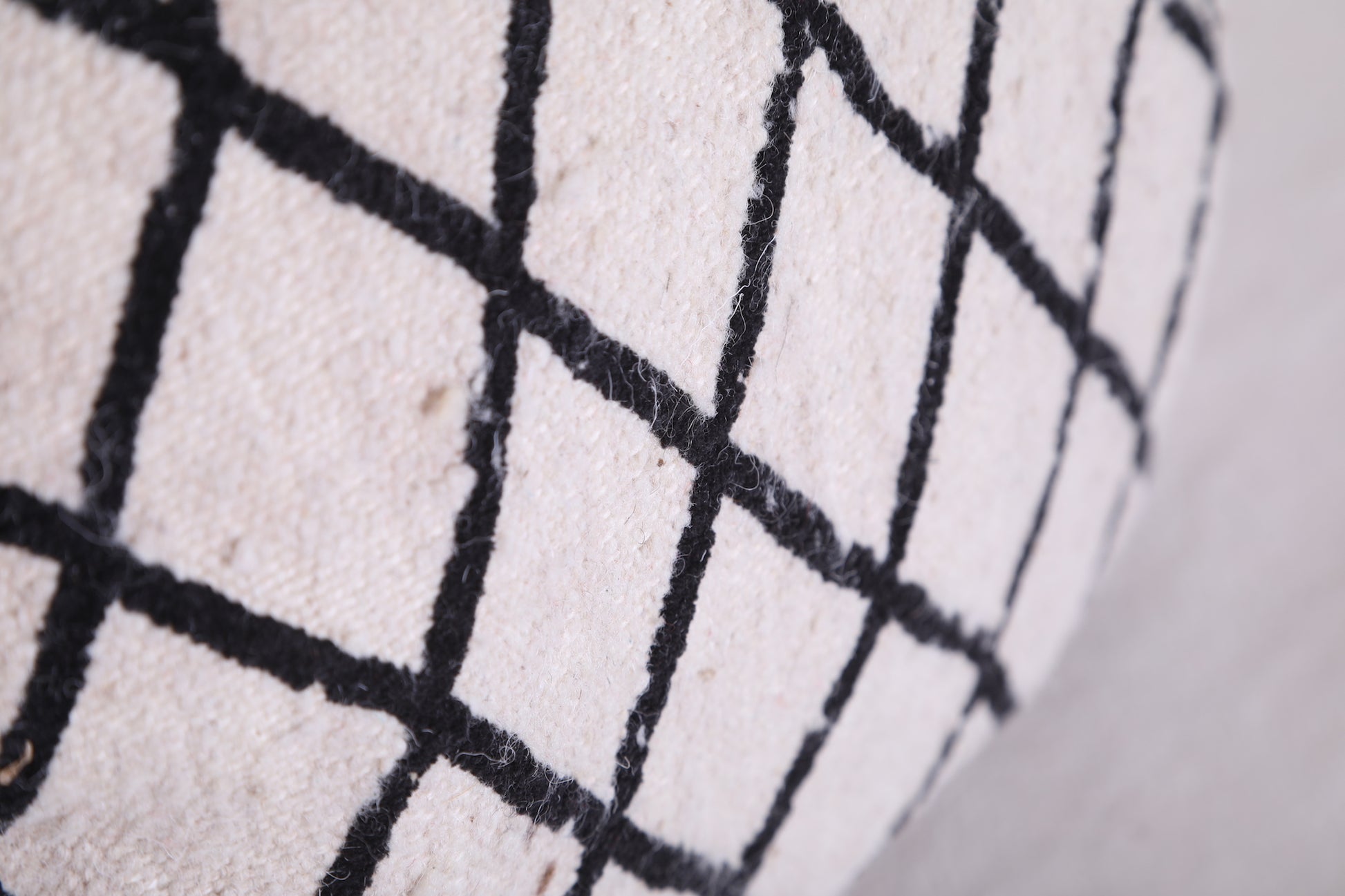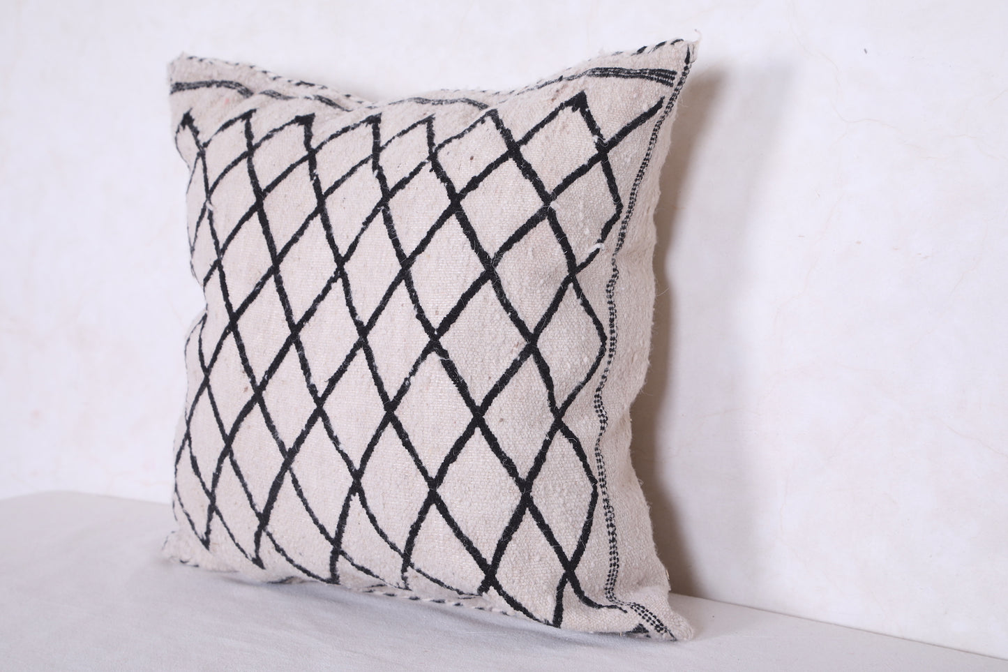 This 20 inch by 20.4 inch Moroccan kilim pillow cover is handmade with quality materials. Its intricate, symmetrical pattern is crafted with wool, making it a durable and stylish piece to add to your home décor.