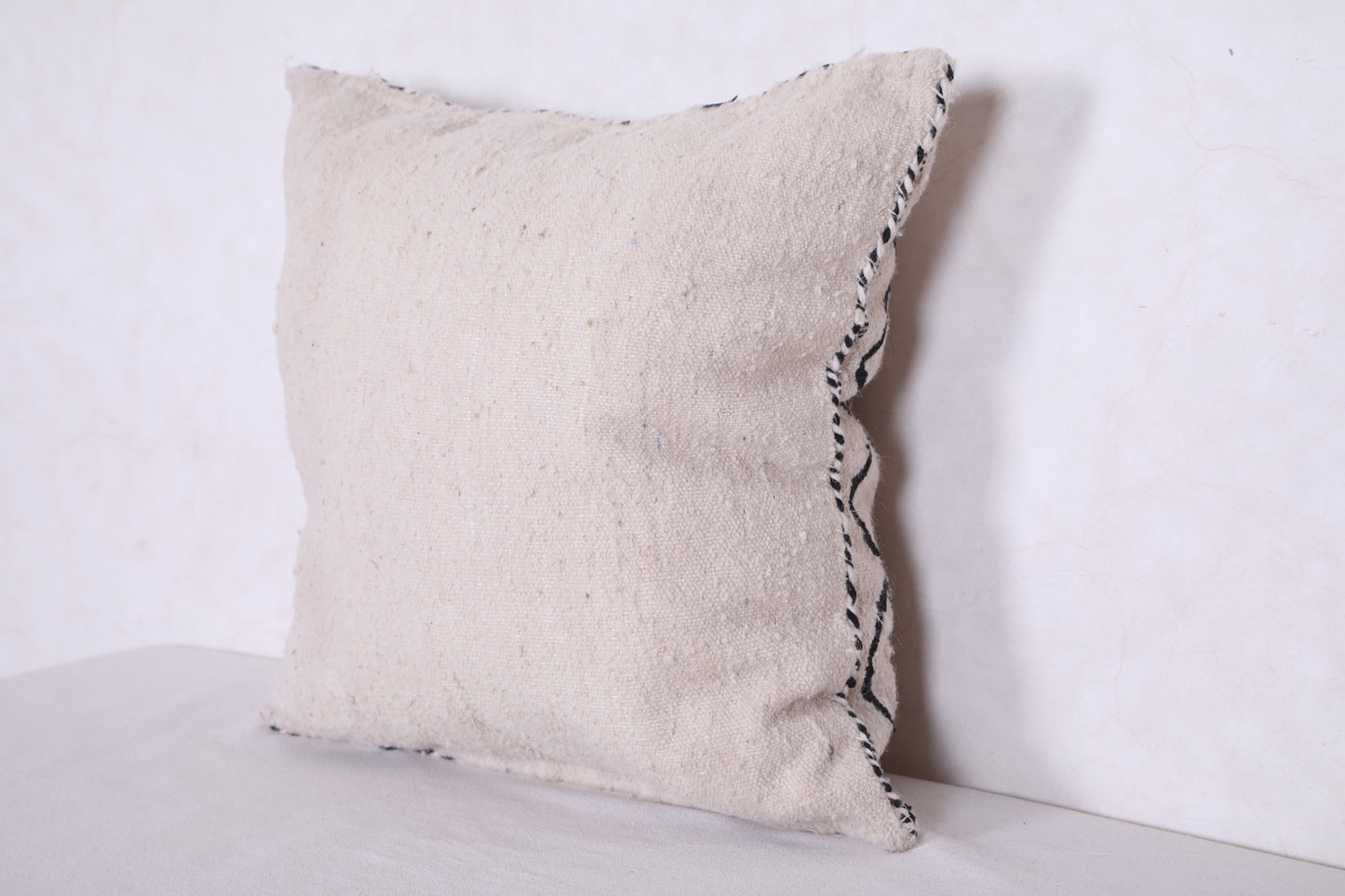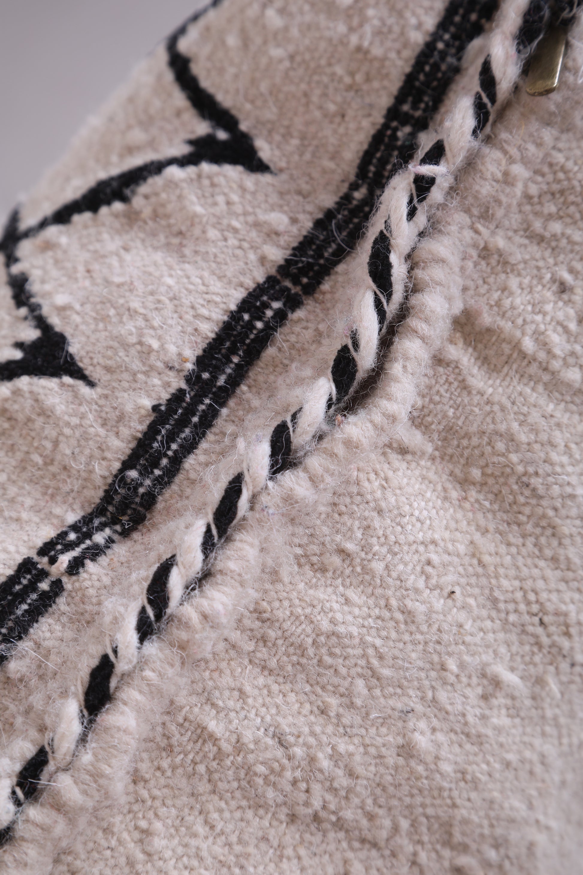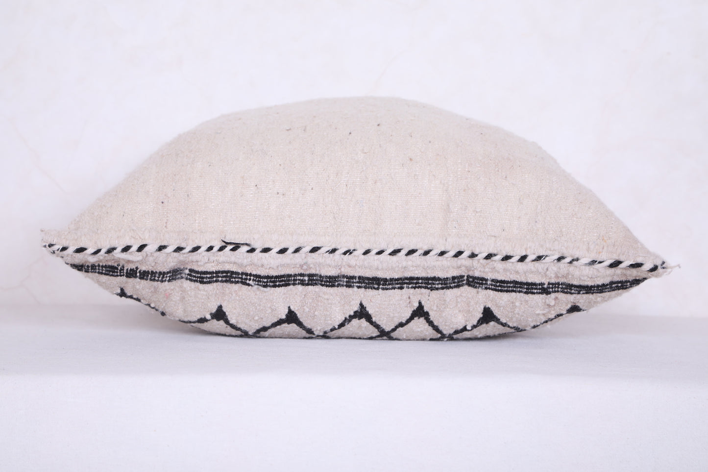 This 20 inch by 20.4 inch Moroccan kilim pillow cover is handmade with quality materials. Its intricate, symmetrical pattern is crafted with wool, making it a durable and stylish piece to add to your home décor.