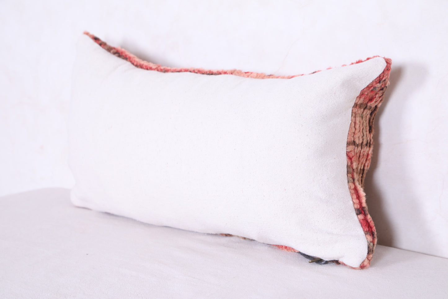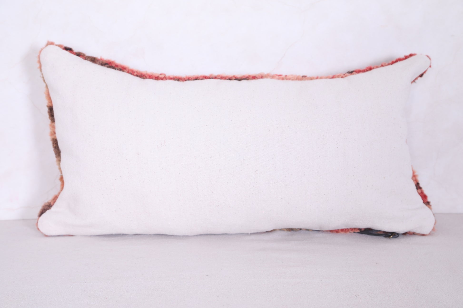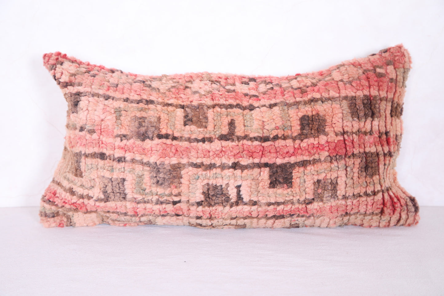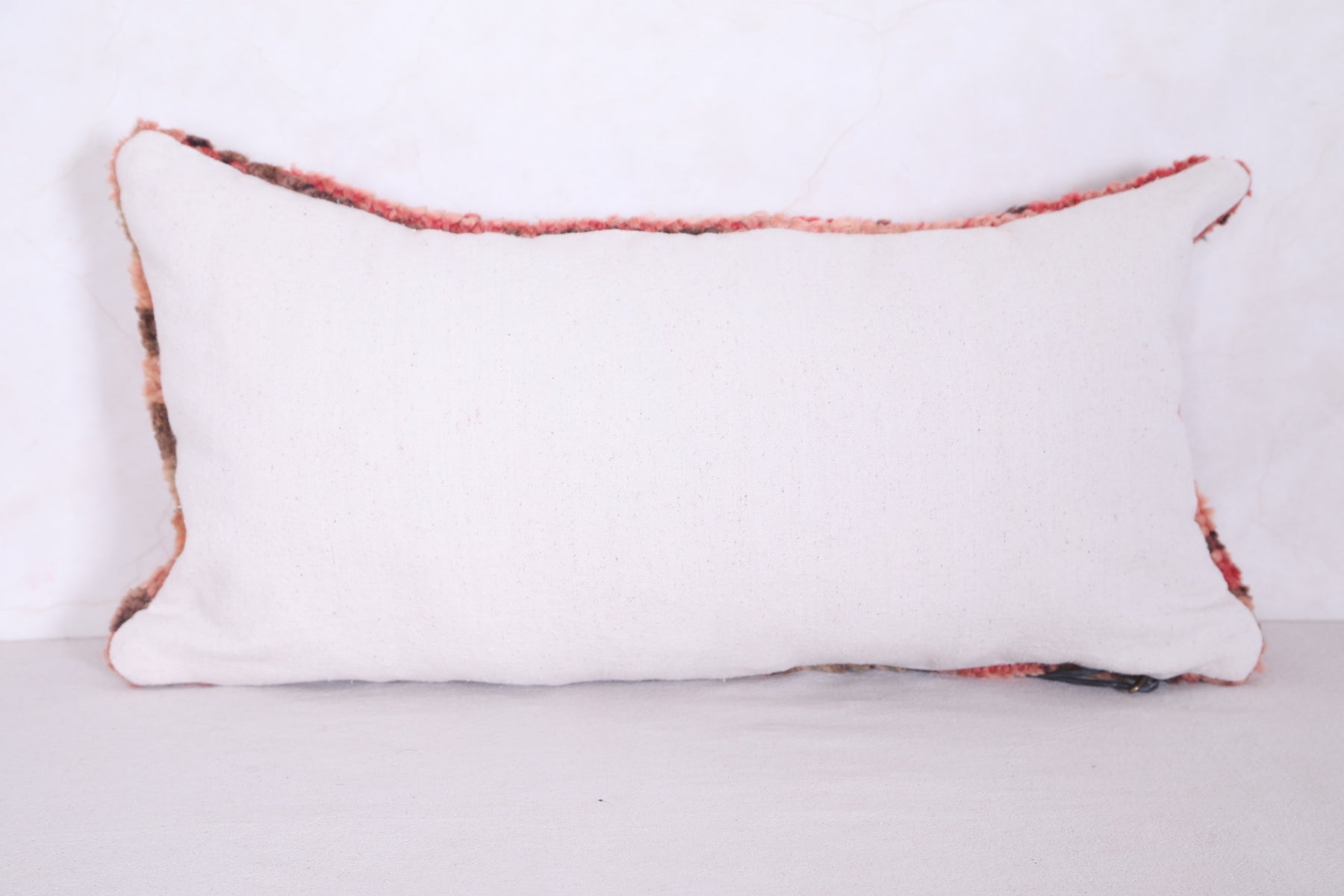 This Moroccan handmade rug pillows measures 12.2 inches by 23.6 inches for a sumptuous touch to any living space. Crafted with a traditional design, its cover adds an elegant pop of color and texture to any home.