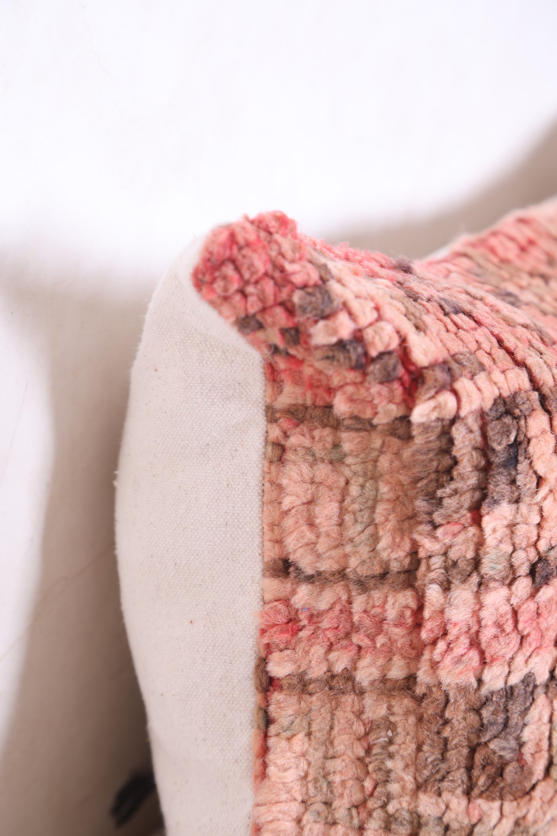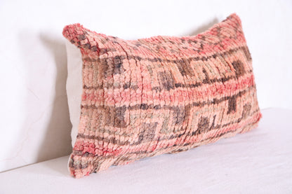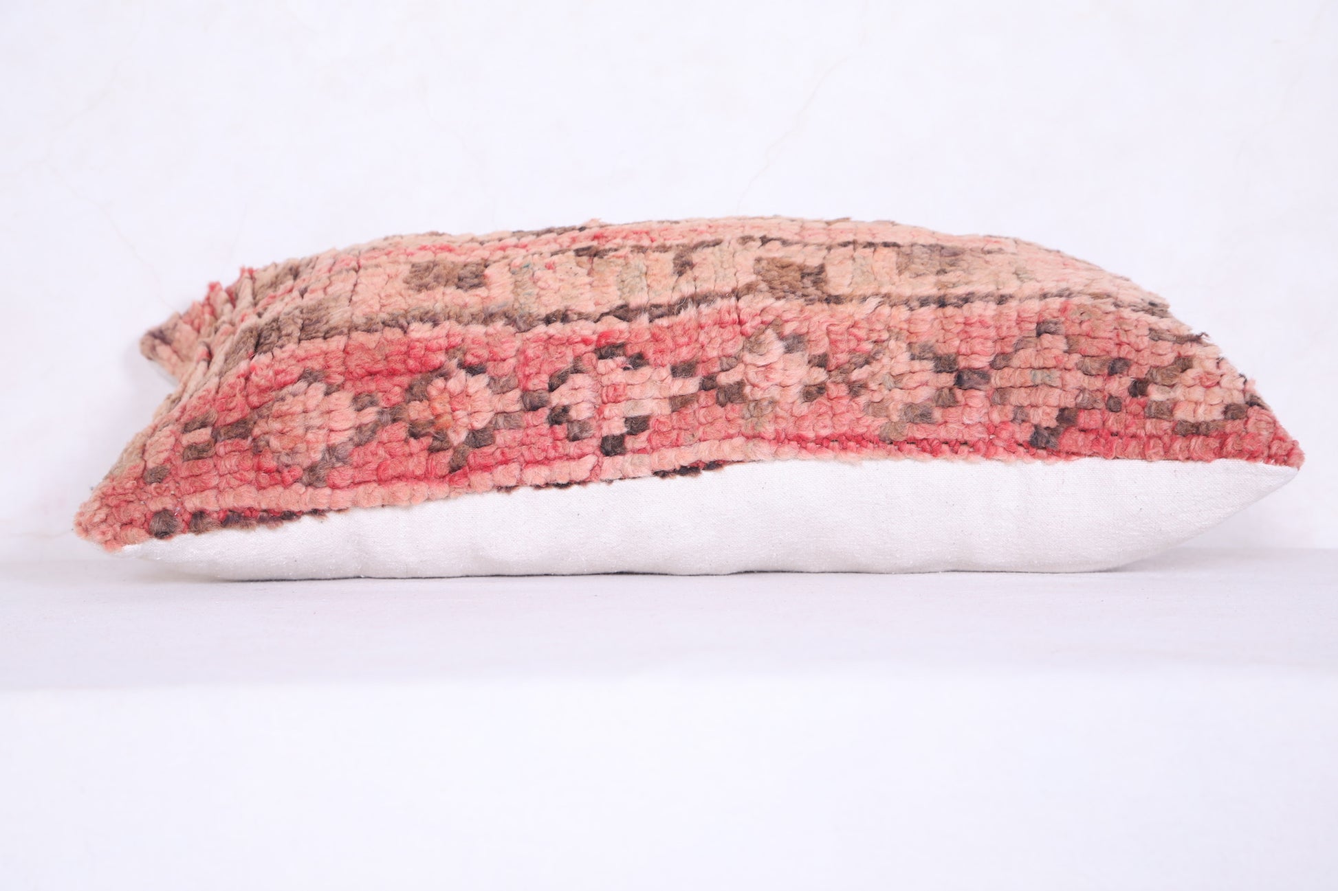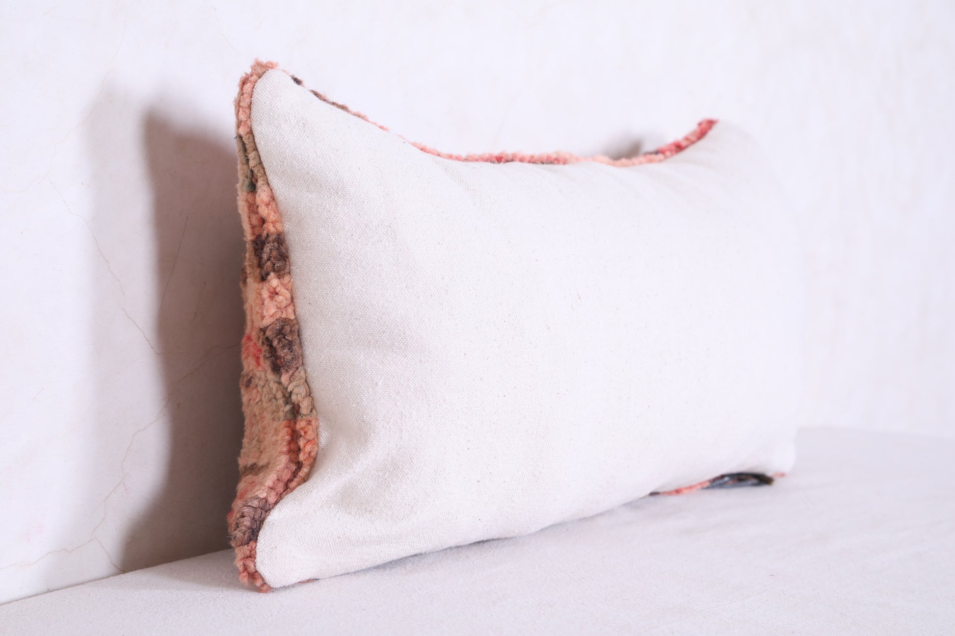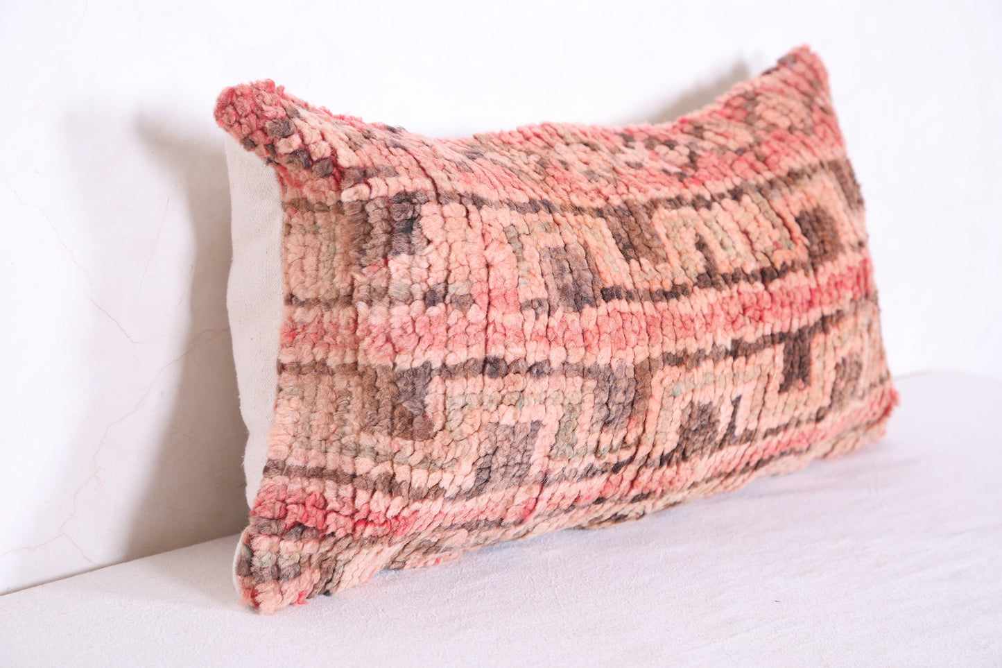 This Moroccan handmade rug pillows measures 12.2 inches by 23.6 inches for a sumptuous touch to any living space. Crafted with a traditional design, its cover adds an elegant pop of color and texture to any home.