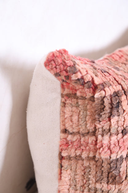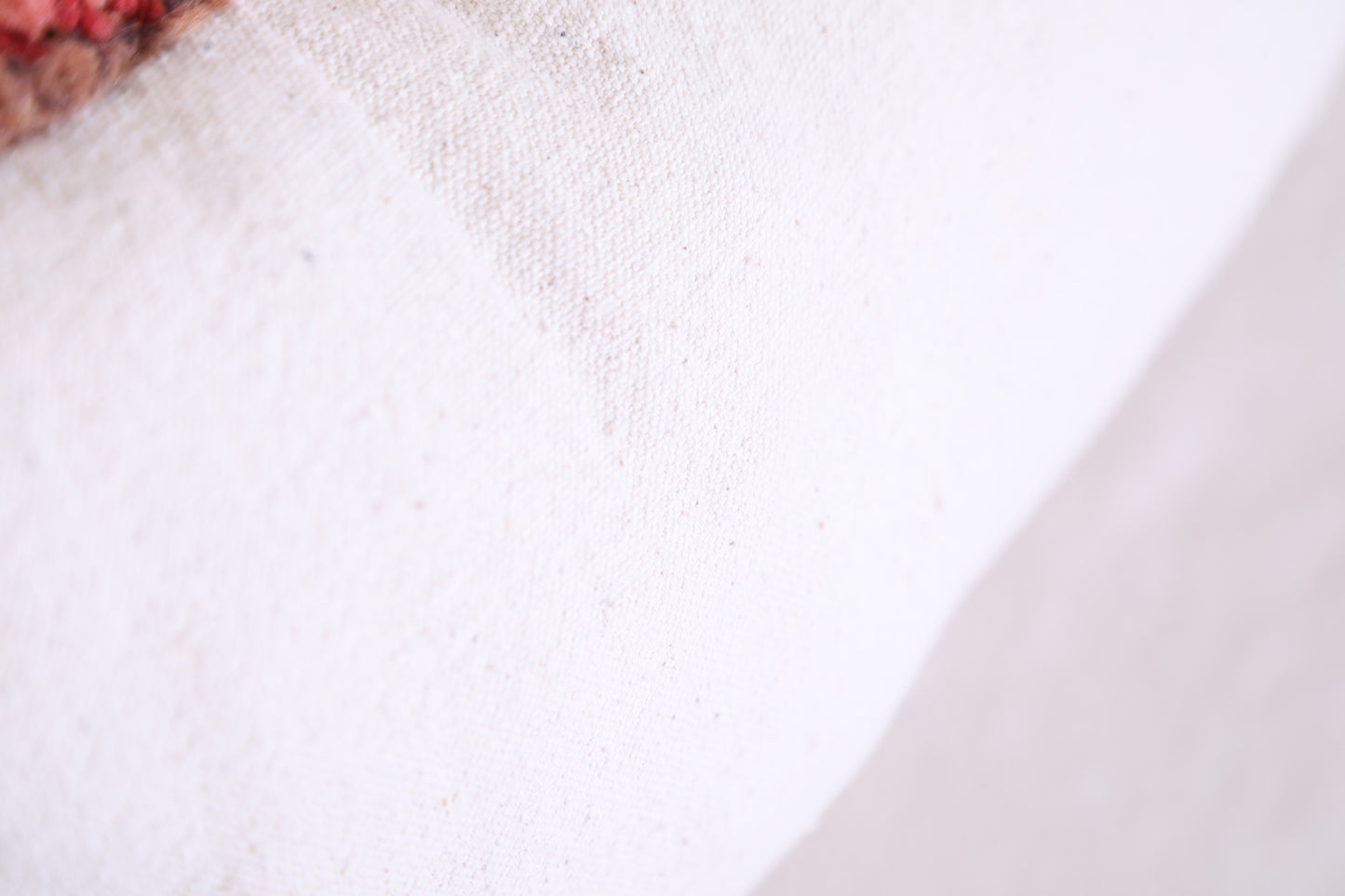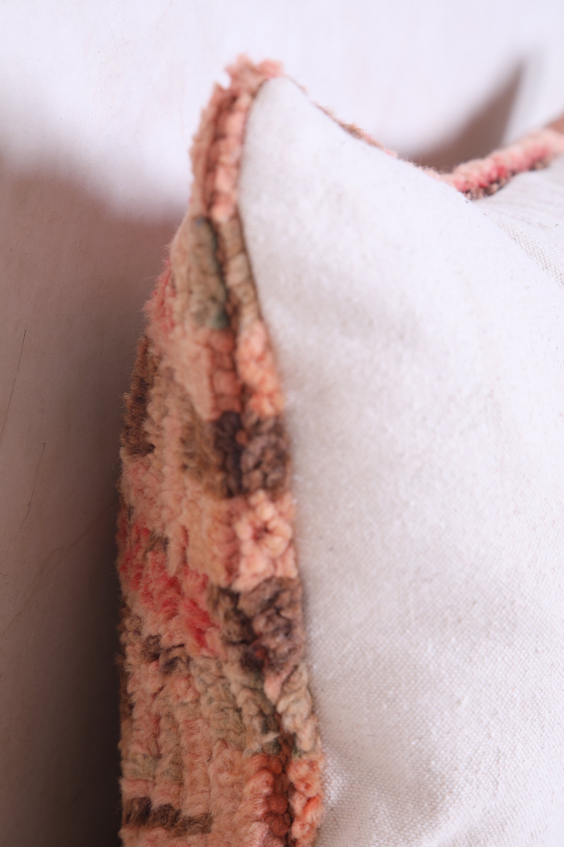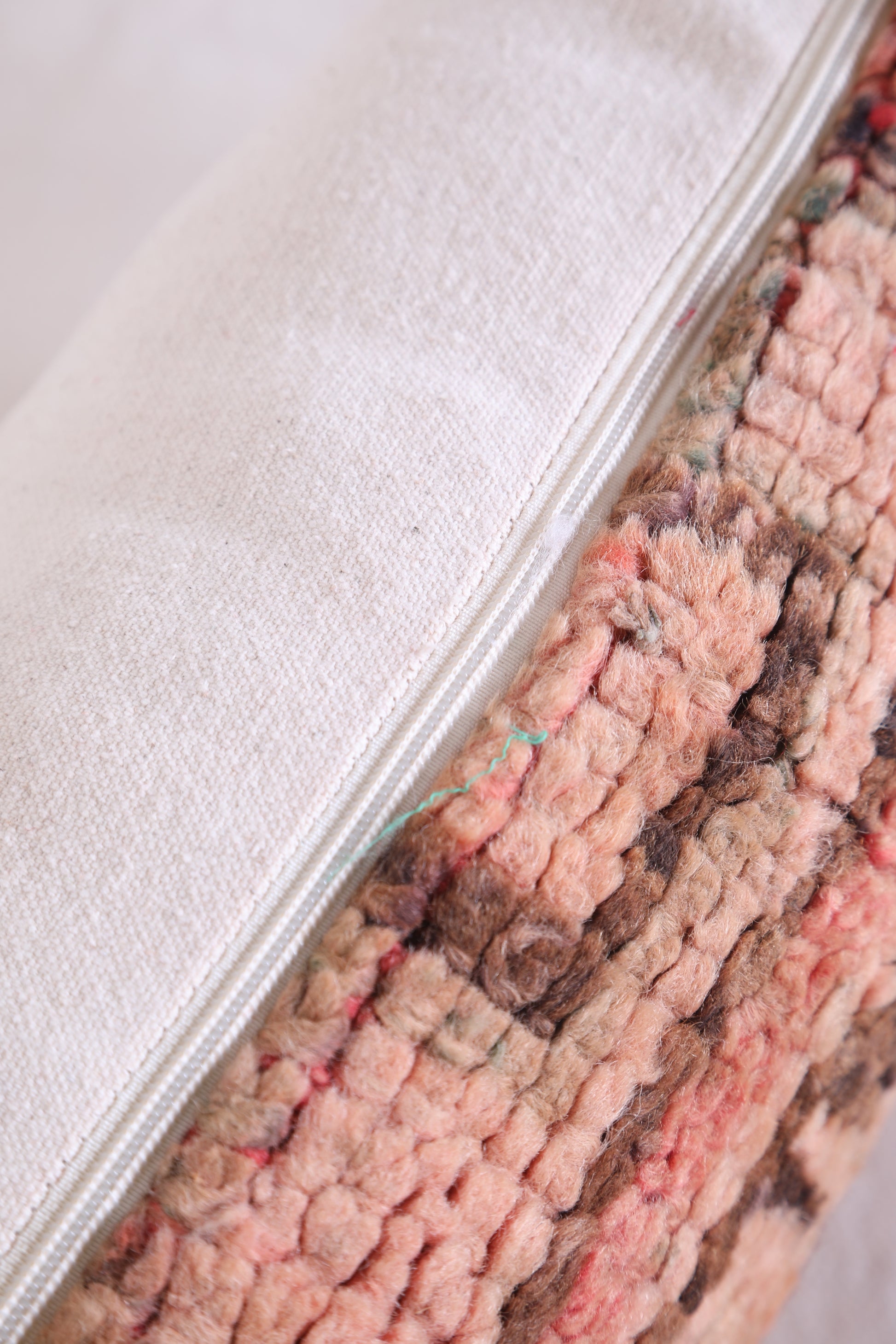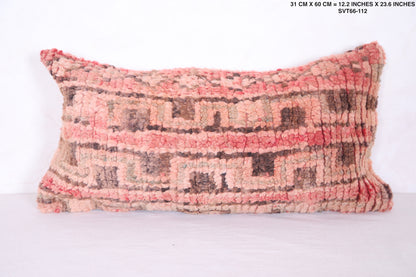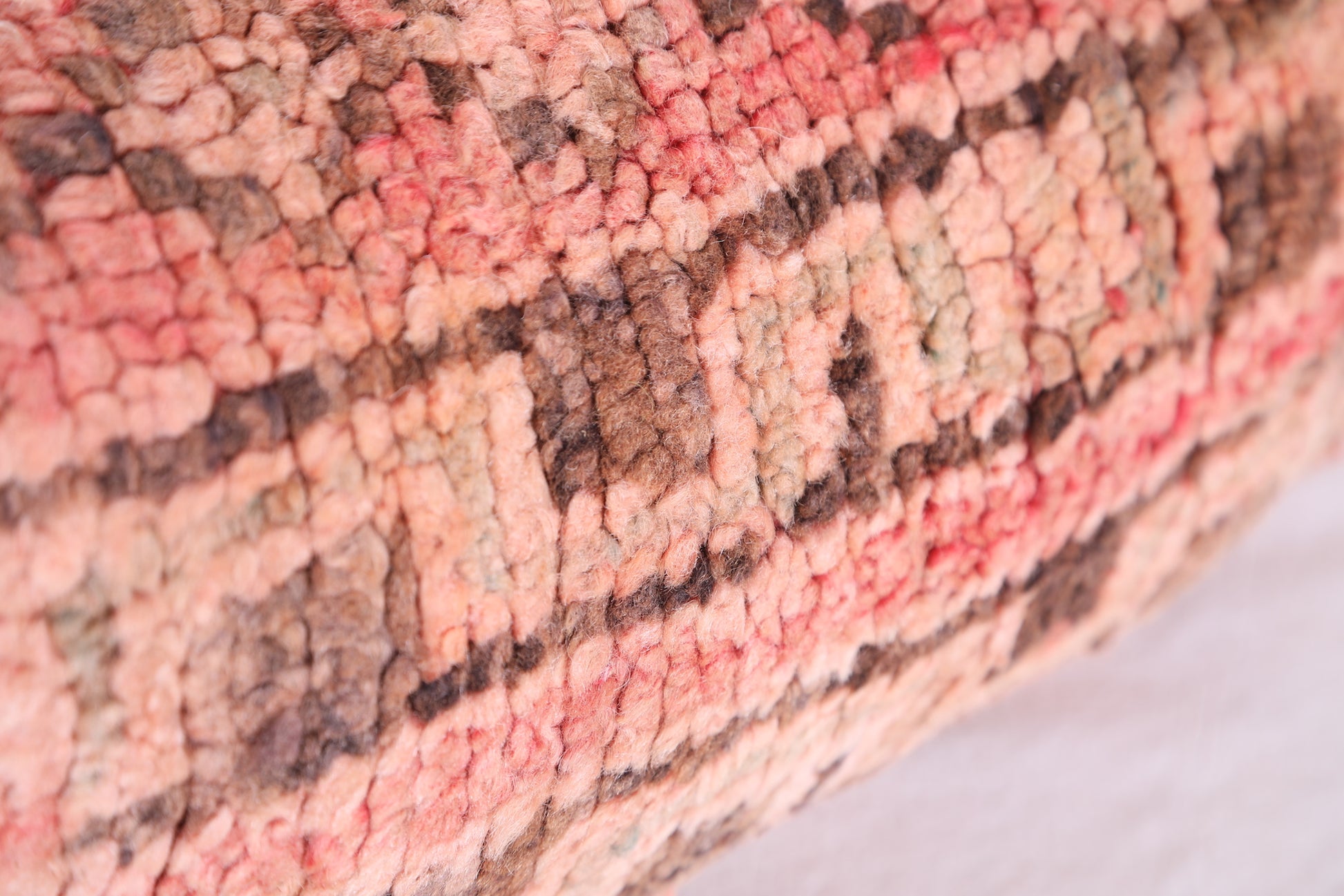 This Moroccan handmade rug pillows measures 12.2 inches by 23.6 inches for a sumptuous touch to any living space. Crafted with a traditional design, its cover adds an elegant pop of color and texture to any home.