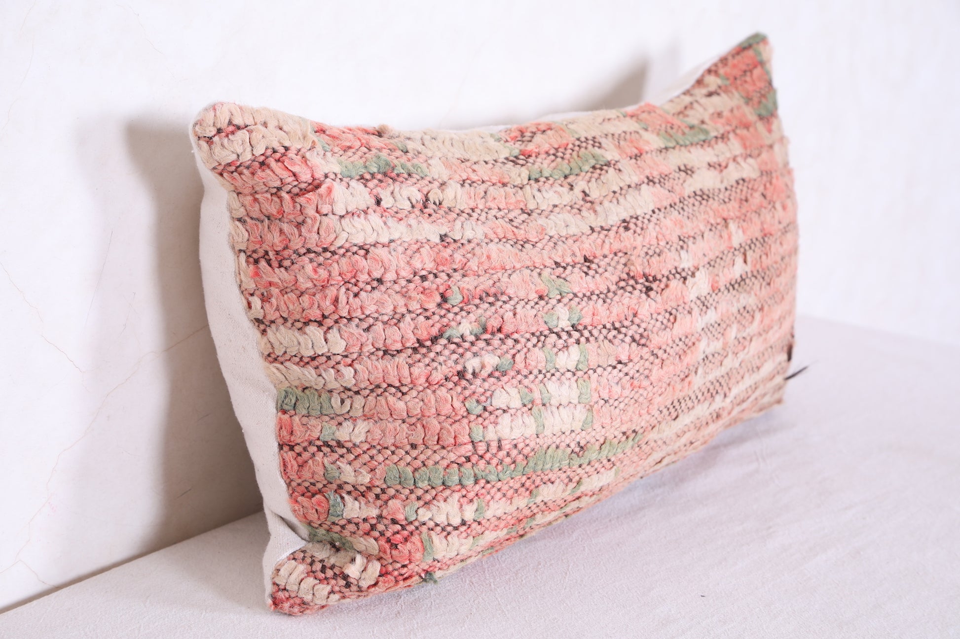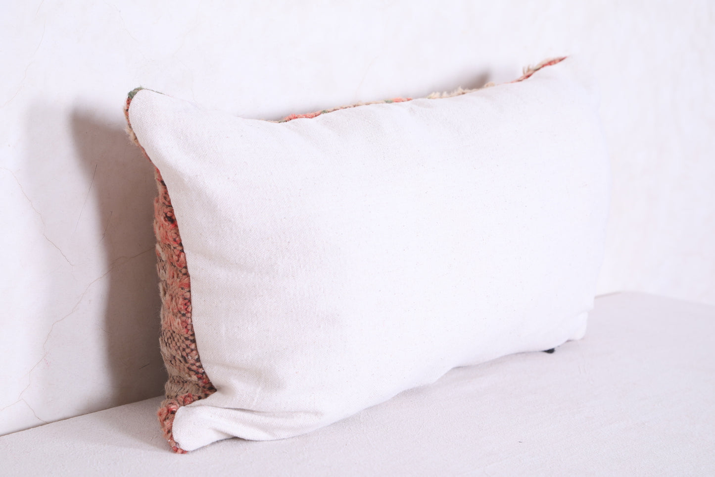 Our Moroccan Handmade Rug Pillows feature a soft and durable cover in 13.7" x 23.6" dimensions, perfect for adding a decorative touch to any room. Crafted from natural wool for a luxurious feel, these pillows make a beautiful addition to your home.