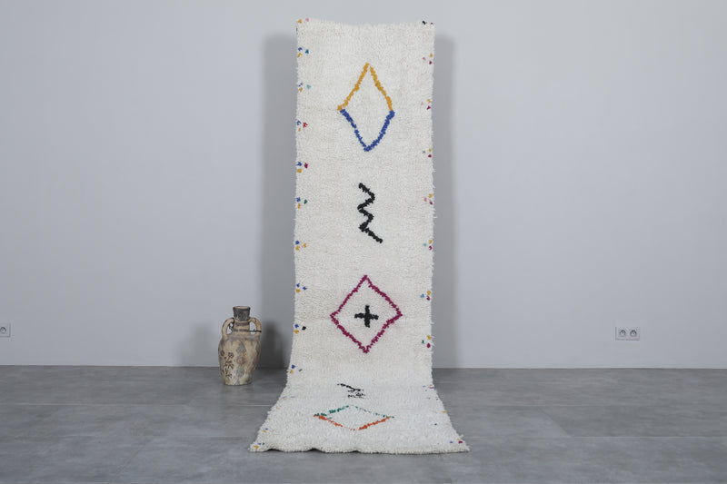 Add a touch of Moroccan flair to your home with this Handmade Runner Rug, measuring 2.6 FT x 11.4 FT. With its crisp white base and colorful geometric symbols, this artisan-crafted piece infuses modern interiors with culture, creativity, and comfort. Ideal for hallways, bedrooms, or transitional spaces, it offers a blend of playful design and timeless craftsmanship.
