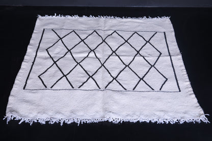 Vintage Moroccan Handwoven Kilim Rug - 3.9x4 FT - Black Diamond Design - Handwoven Kilim