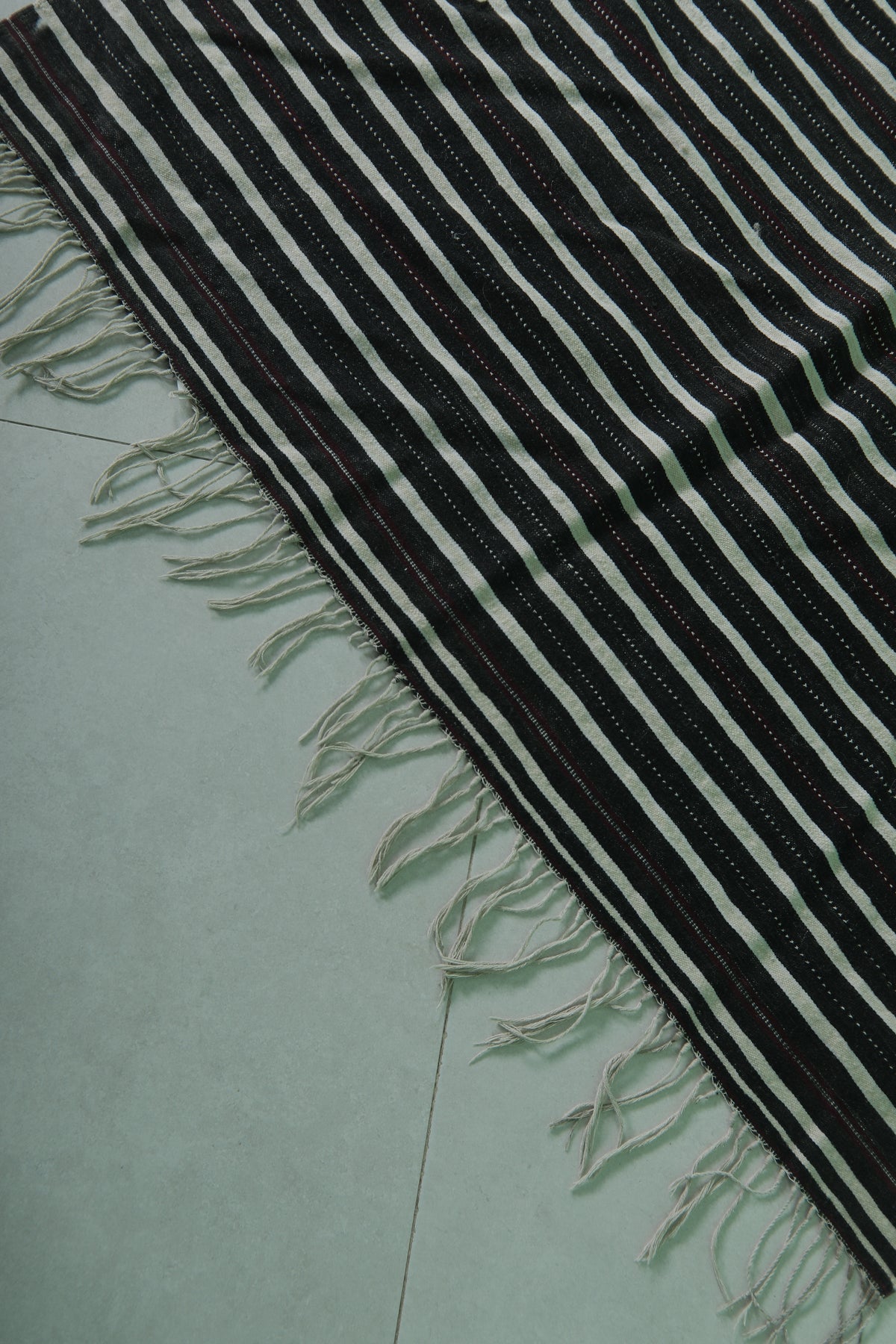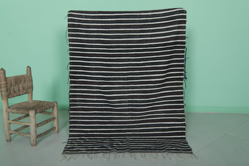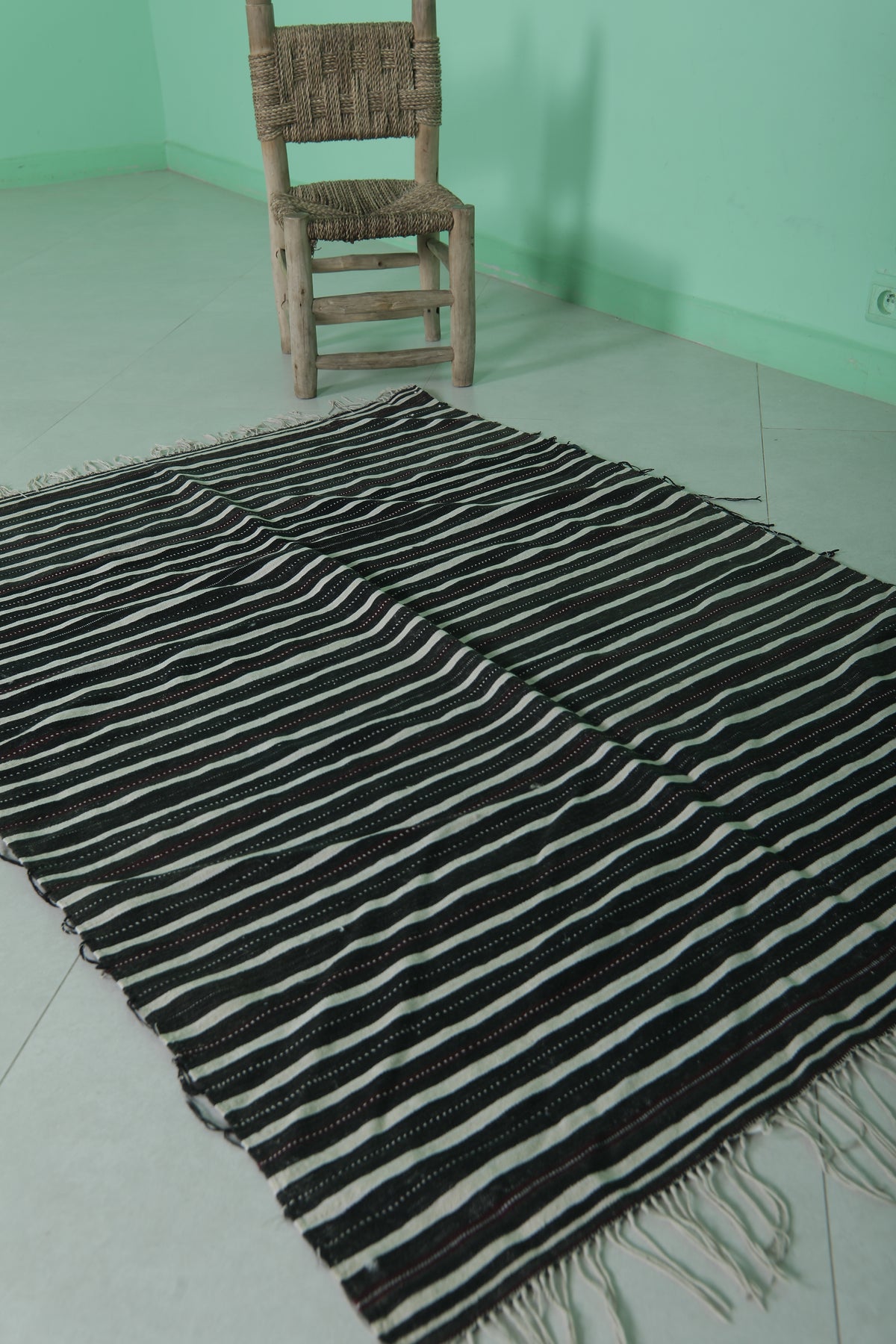 Moroccan Handwoven Kilim Rug - Black and White Striped Design - 3.5x4.8 ft