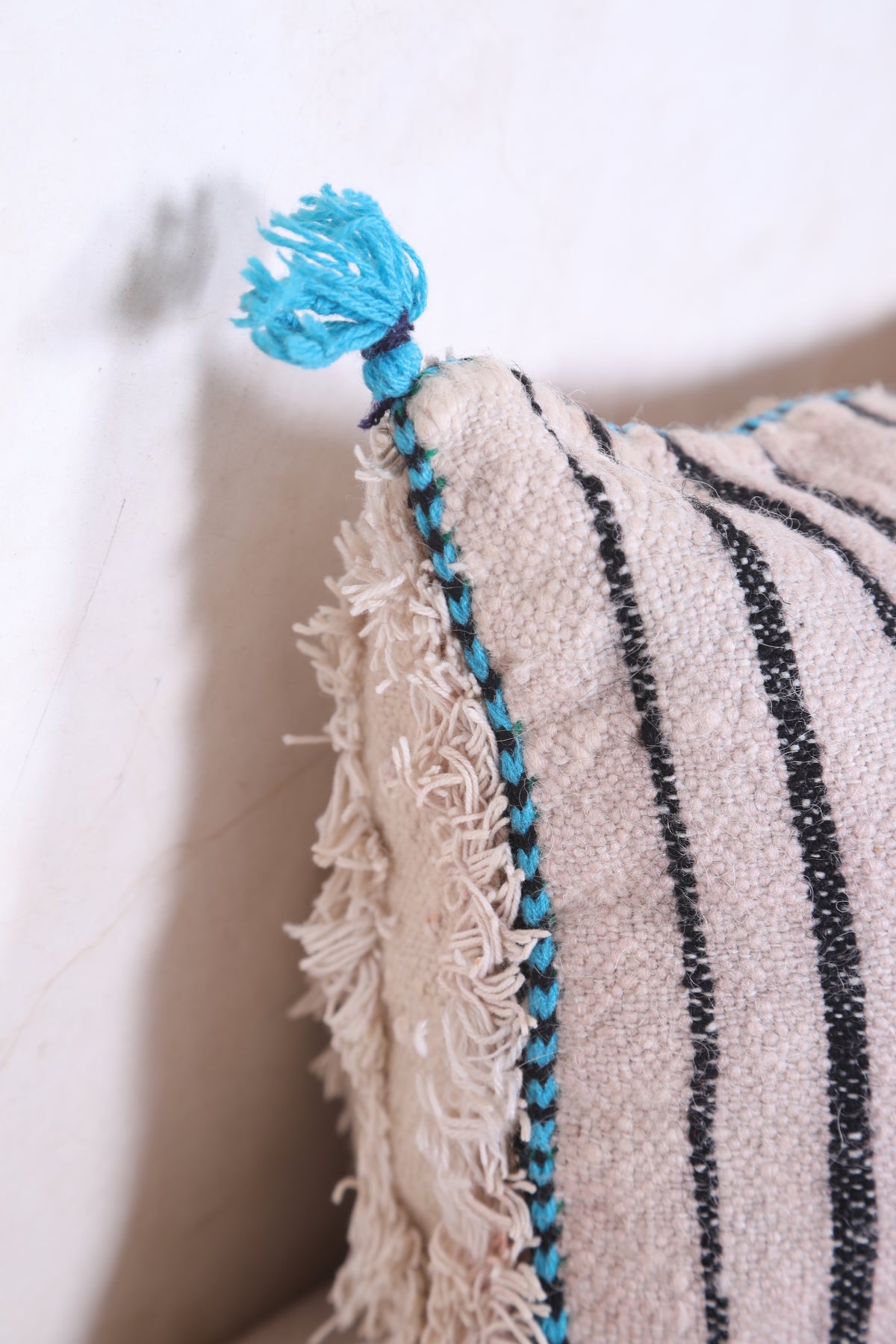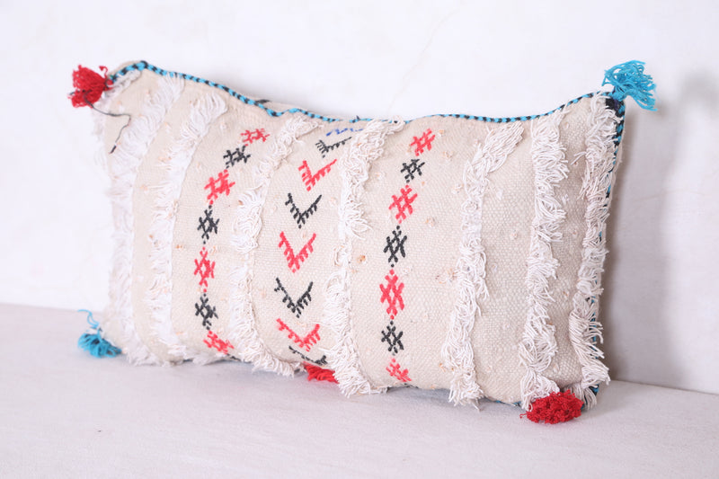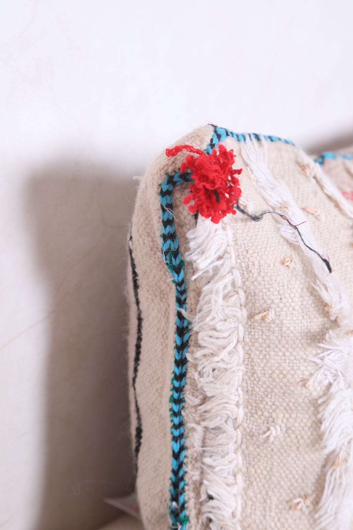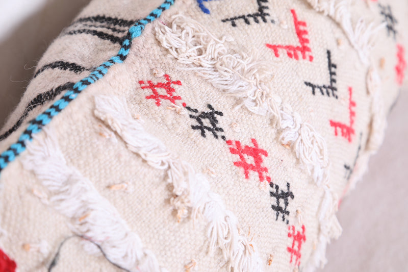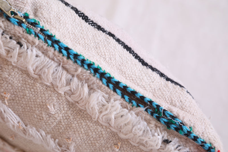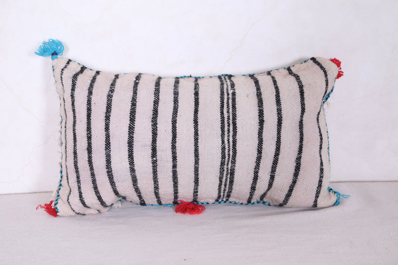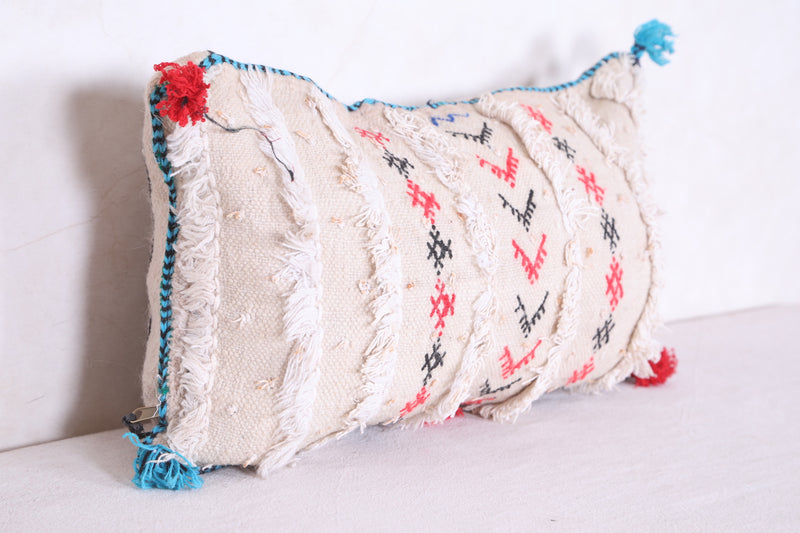 This traditional, handwoven Moroccan kilim pillow adds a stylish, unique touch to any living space. It measures 11 inches by 18.5 inches and is perfect for adding extra cushioning to your favorite chair or couch. The cover is crafted with a blend of wool and cotton for a soft and comfortable feel.