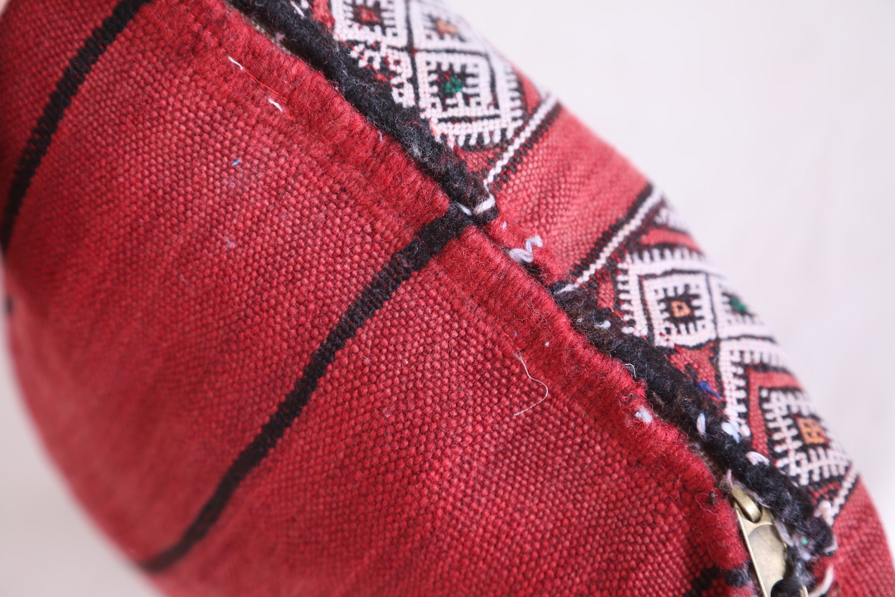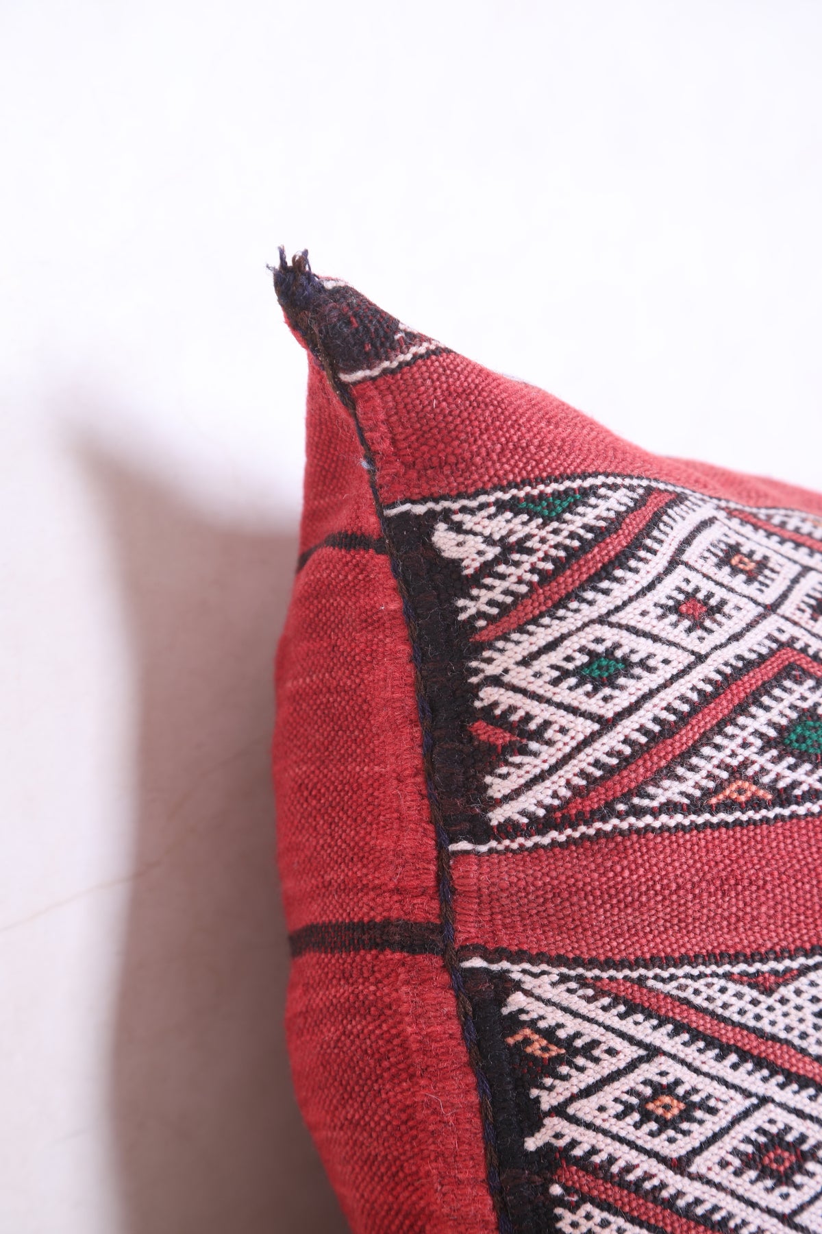 Bring a sense of global style to your home with this beautiful Moroccan kilim pillow. Crafted from wool and cotton fibers, this 12.5" x 19.6" cover lends rich texture and detail to any setting. For a unique touch, a hand-embroidered and hand-stitched trim finishes the design.