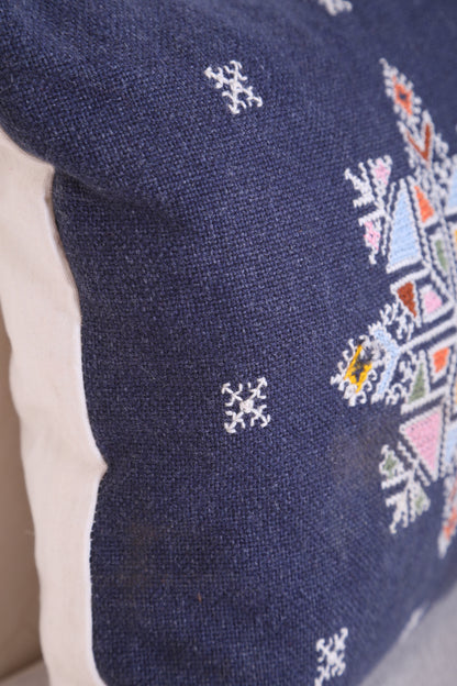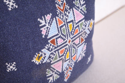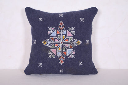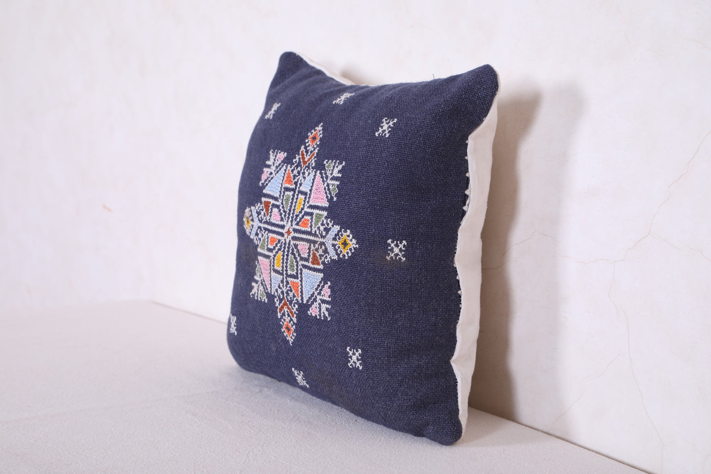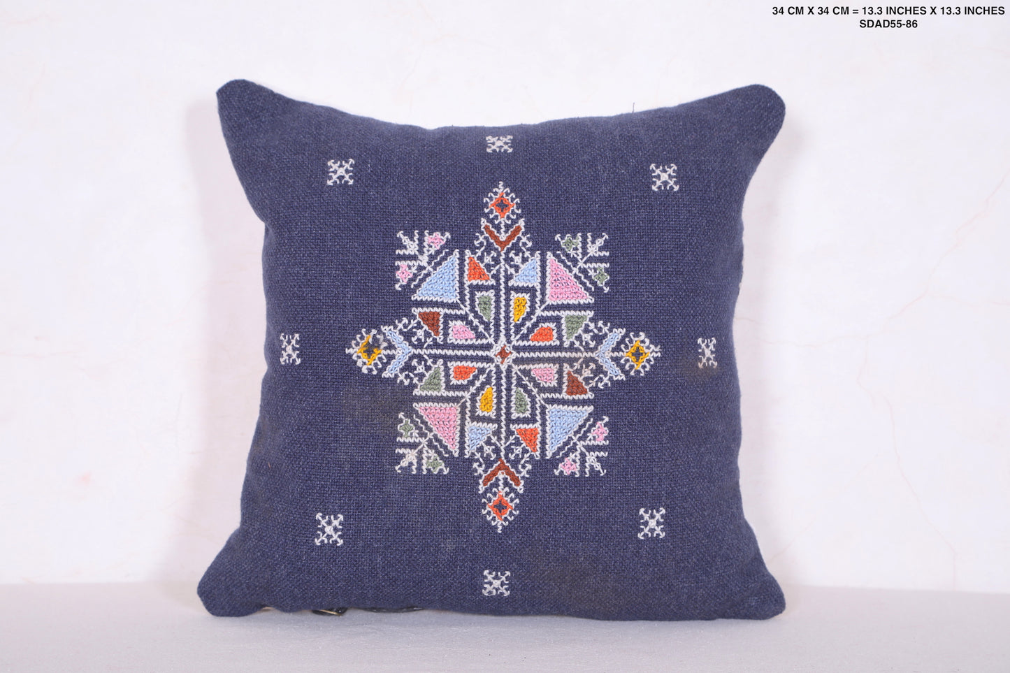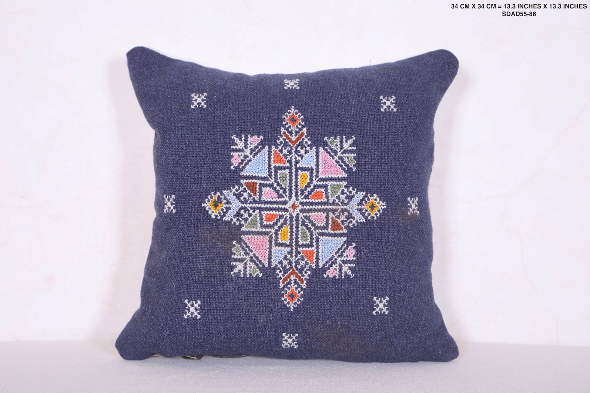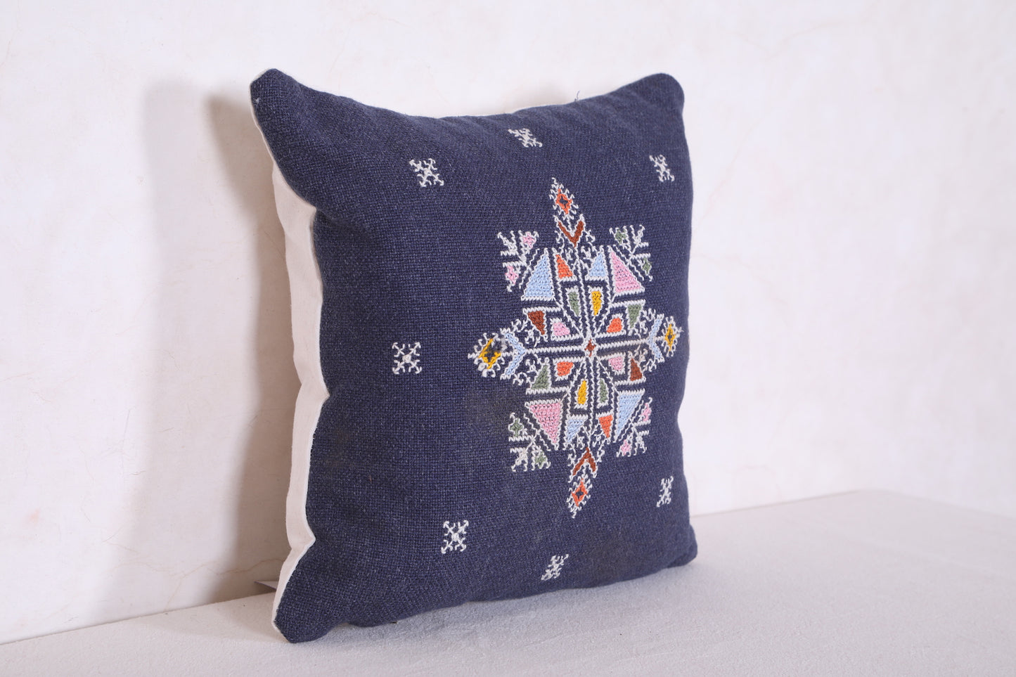 Blue Moroccan pillow 13.3 INCHES X 13.3 INCHES - kilim pillow