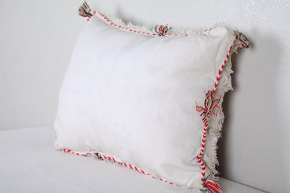 Add texture and handcrafted artistry to your home with this handwoven Striped Moroccan Pillow, sized at 16.1 x 21.2 inches (41 CM x 54 CM). Featuring a soft ivory background with intricate pink and black embroidered motifs, this pillow blends authentic Moroccan craftsmanship with delicate charm. Perfect for styling your sofa, bed, or accent chair, it brings a unique global accent to your décor.