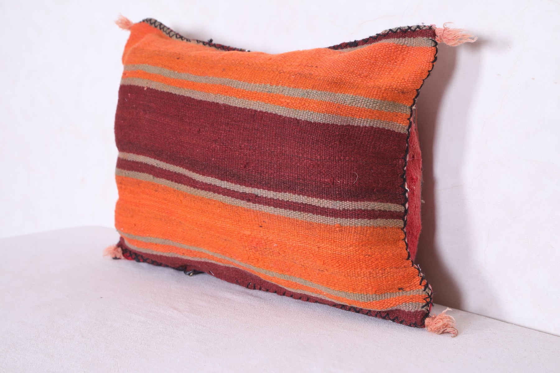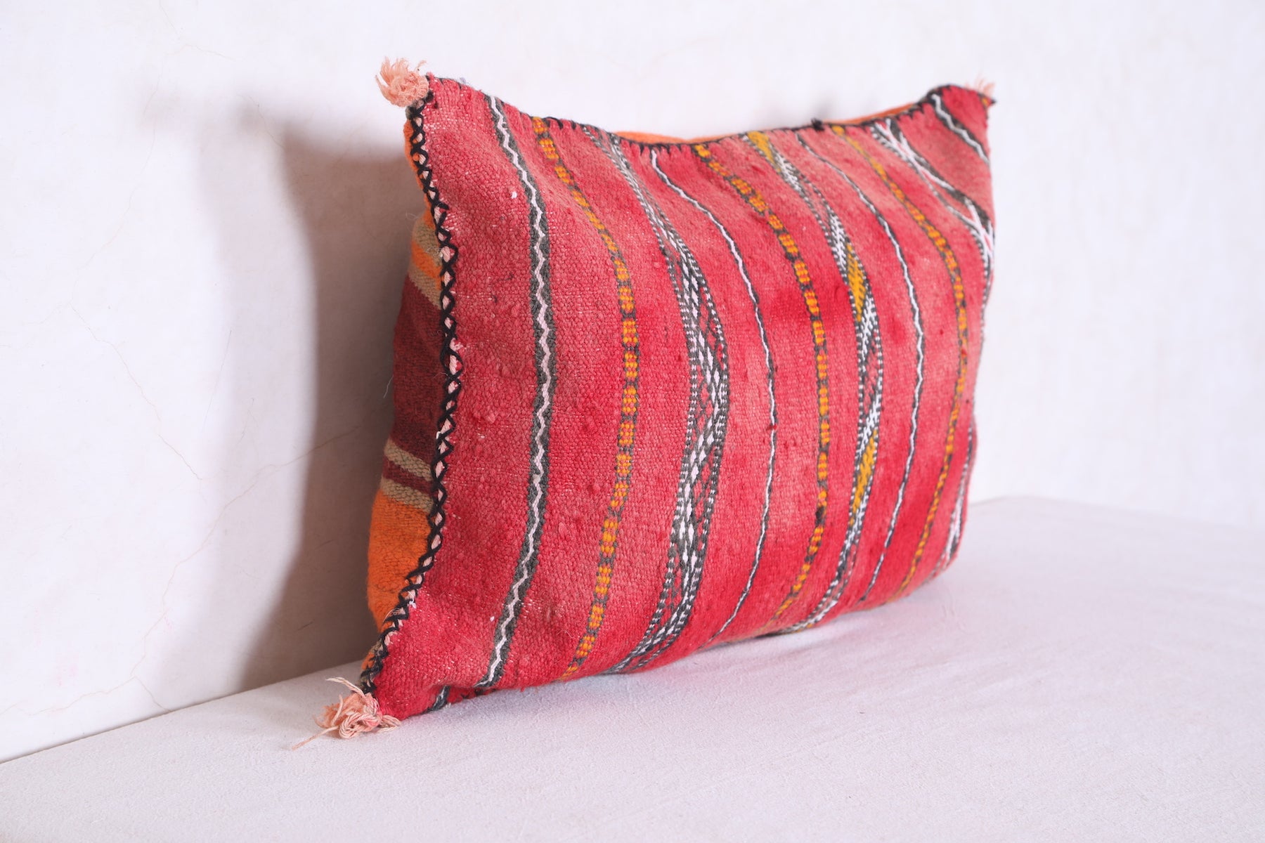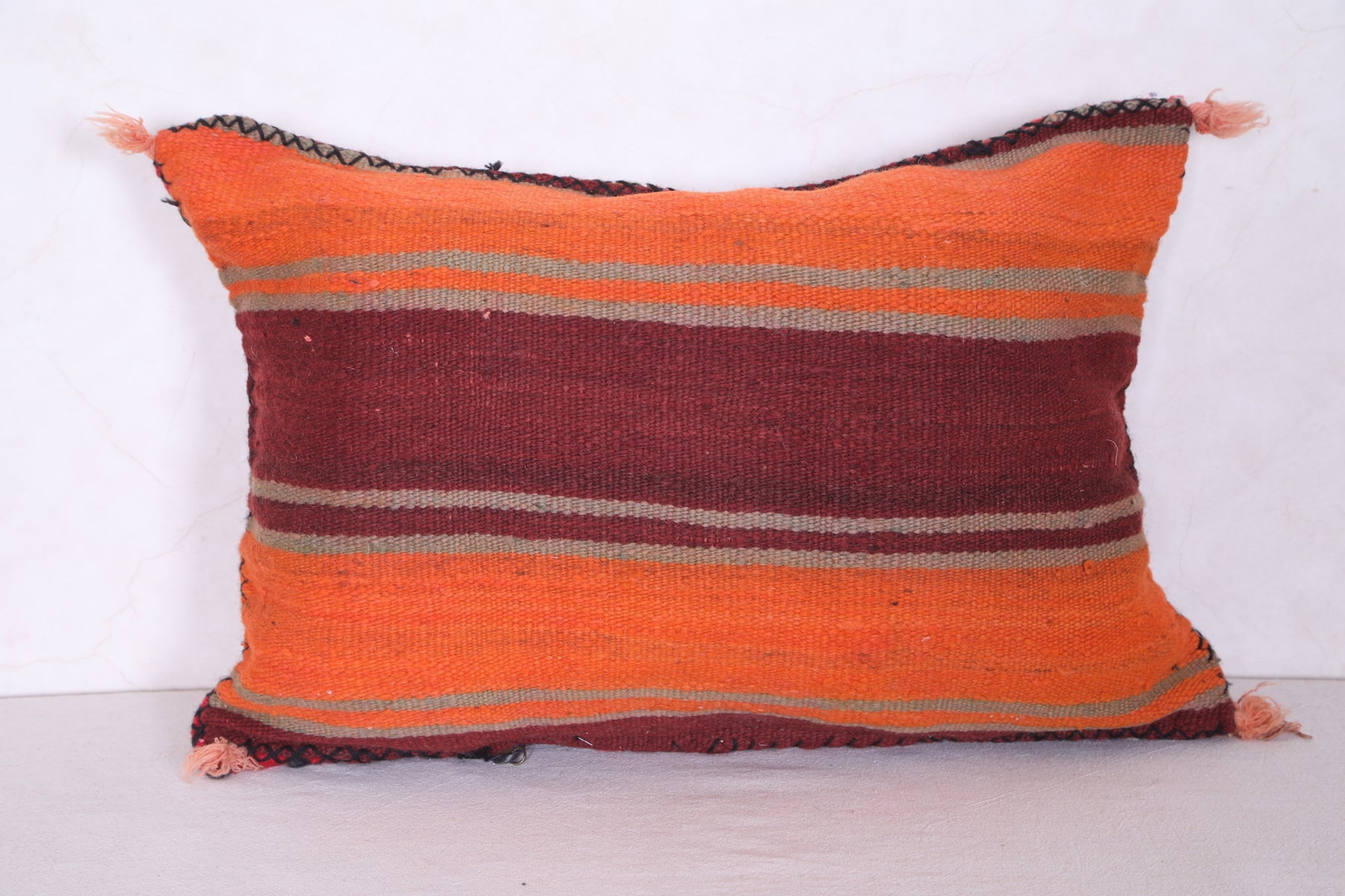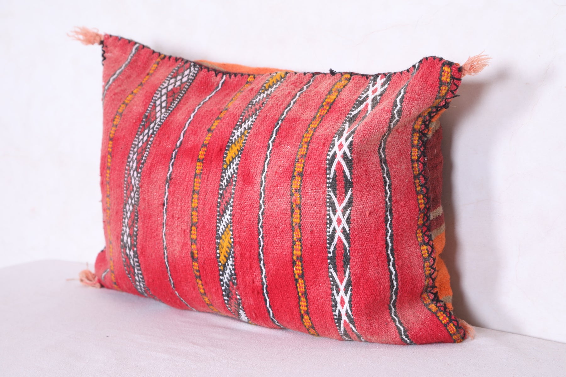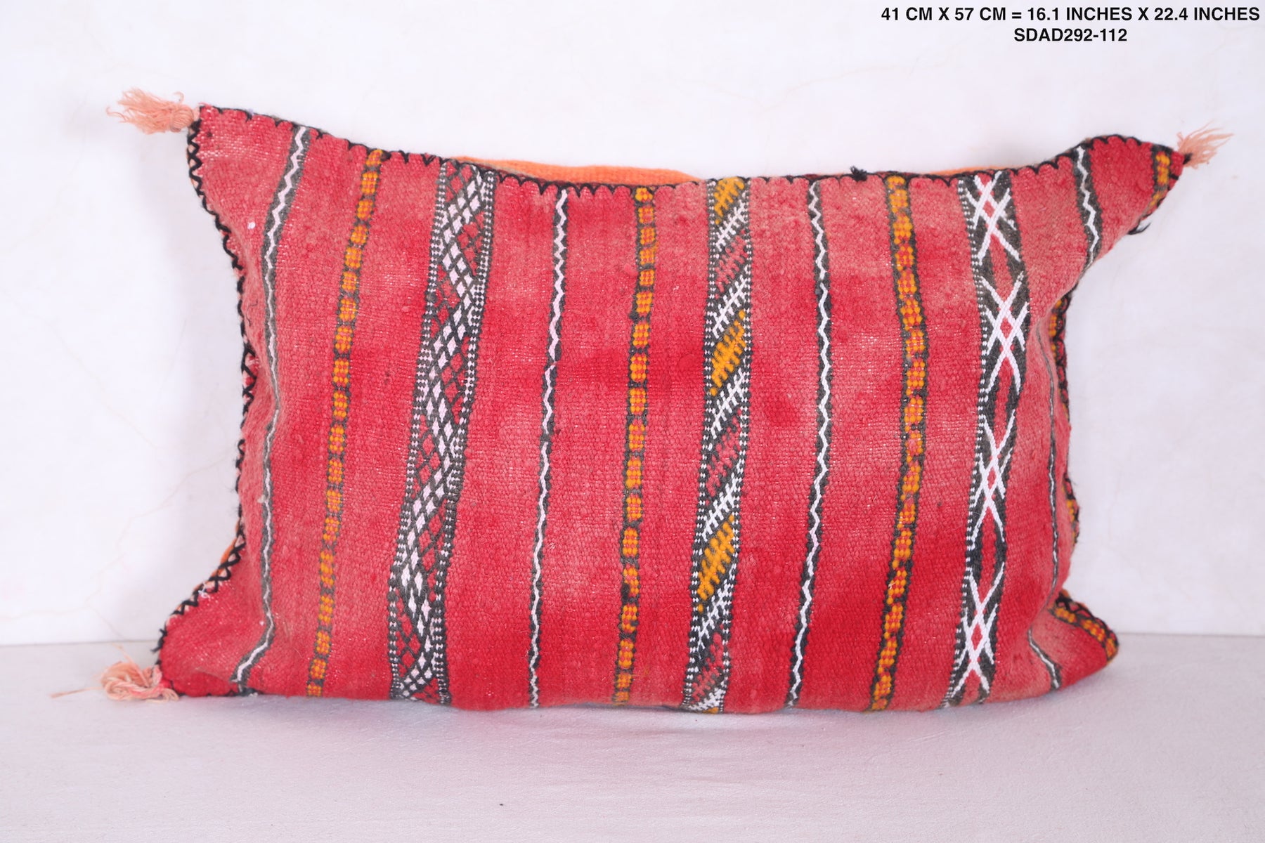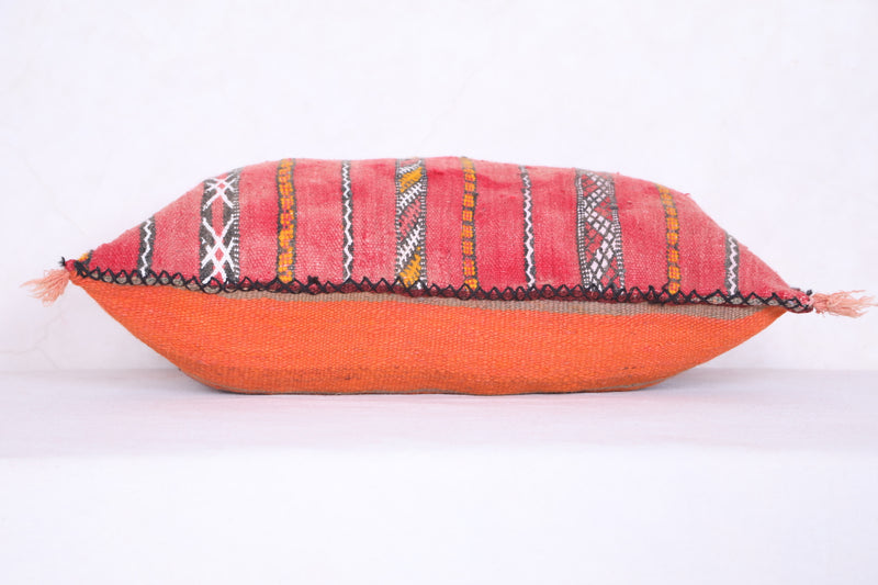 This Moroccan kilim pillow is perfect for adding texture and a traditional aesthetic to any space. The hand-woven cover is made of 100% wool, making it both durable and soft. Its classic design measures 16.1 inches in width and 22.4 inches in height.