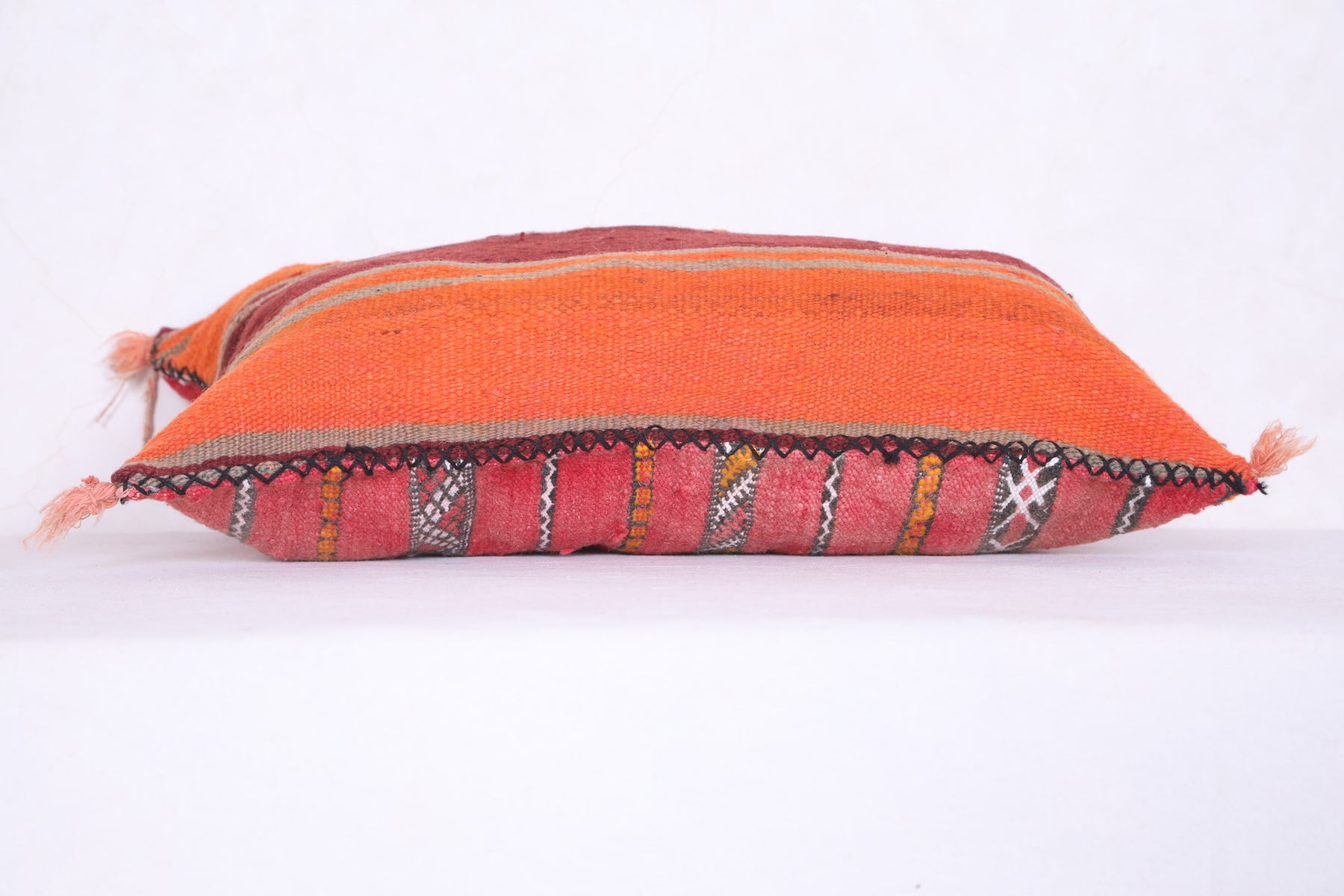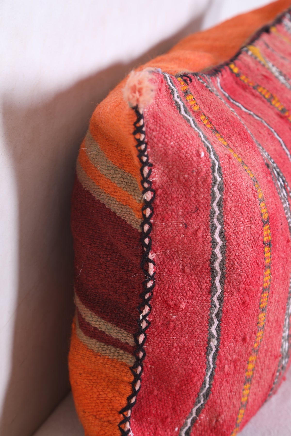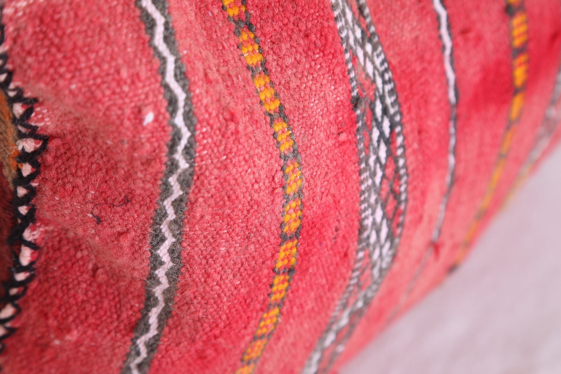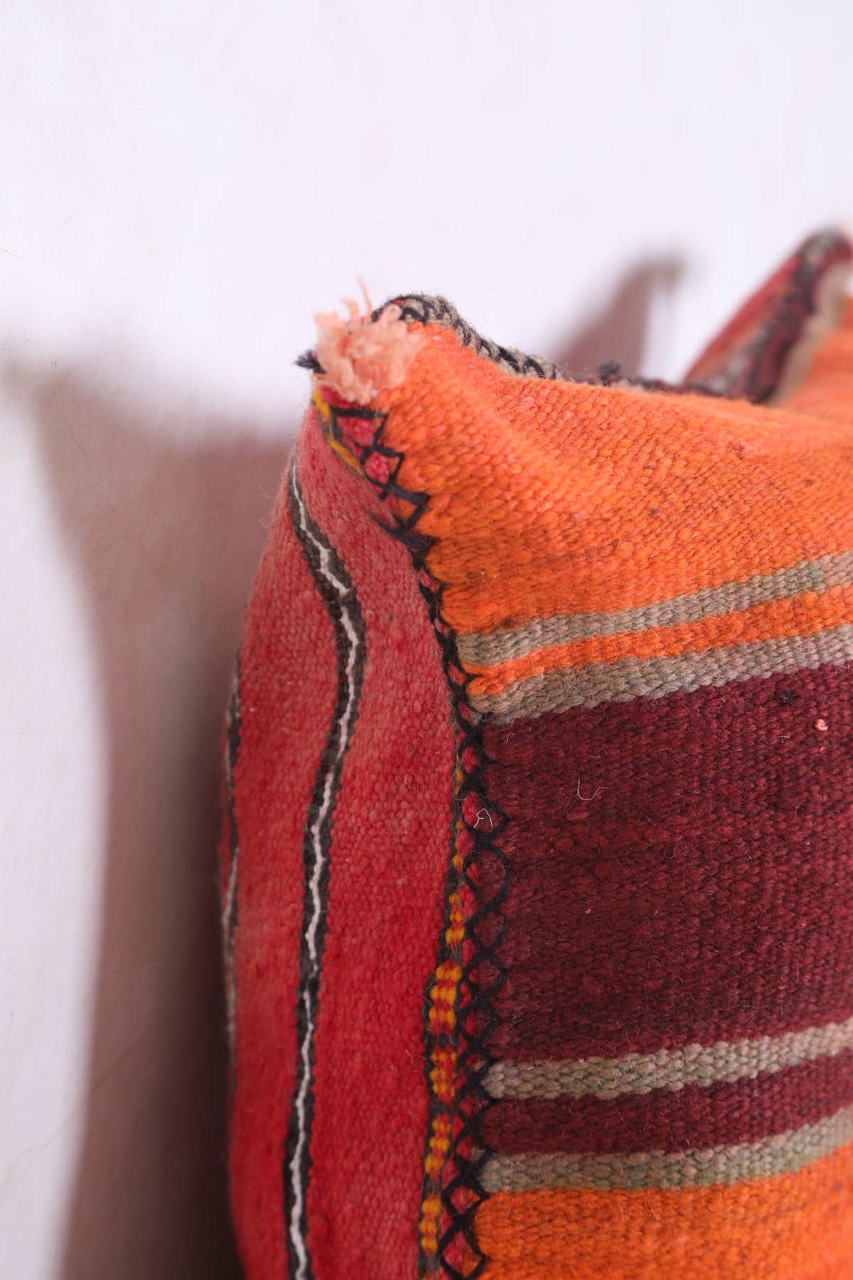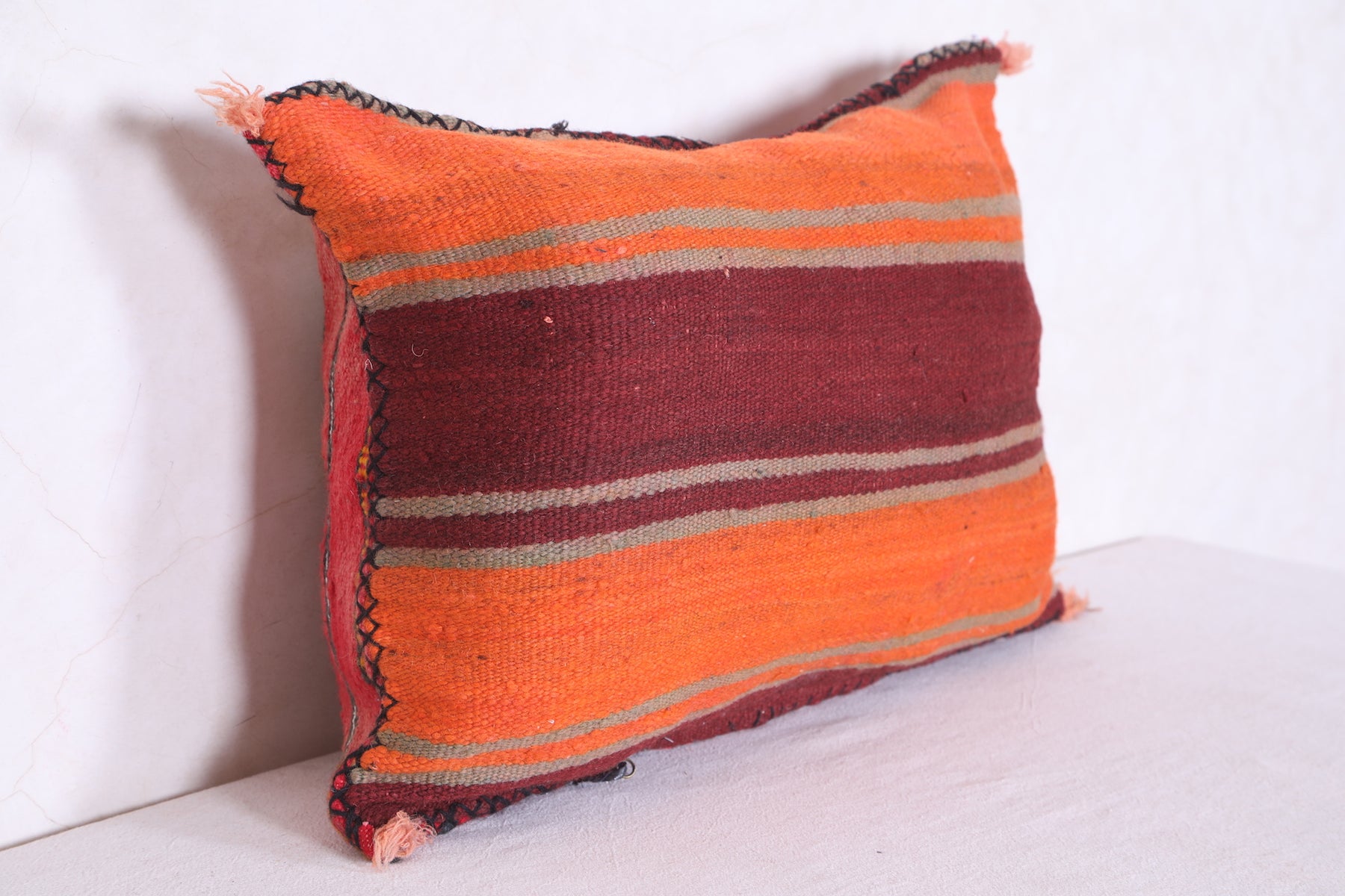 This Moroccan kilim pillow is perfect for adding texture and a traditional aesthetic to any space. The hand-woven cover is made of 100% wool, making it both durable and soft. Its classic design measures 16.1 inches in width and 22.4 inches in height.