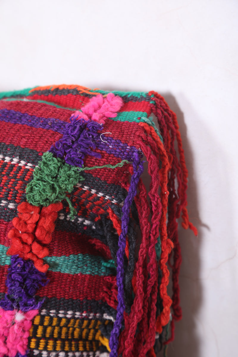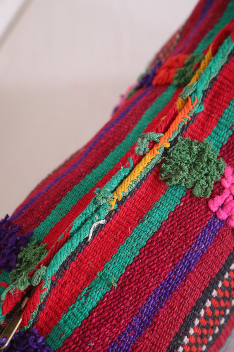 Add a burst of color and authentic craftsmanship to your space with this Moroccan Pillow, sized at 16.5 x 28.3 inches (42 CM x 72 CM). Handwoven in Morocco, this vibrant pillow features bold multicolor stripes and playful fringe accents, bringing a lively touch to any room. Its generous size makes it perfect for styling on a bed, sofa, or bench.