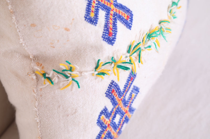 This authentic Moroccan kilim pillow cover will add a touch of exotic style to your home decor. Crafted from vibrant wool, it measures 18.5 x 19.6 inches for a unique and stylish statement. Perfect for putting the finishing touch on a sofa or bed.