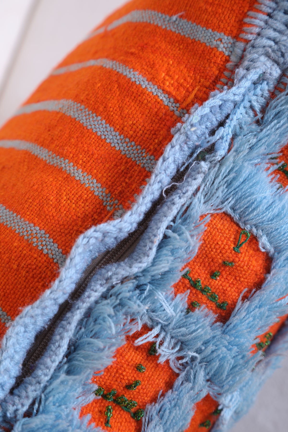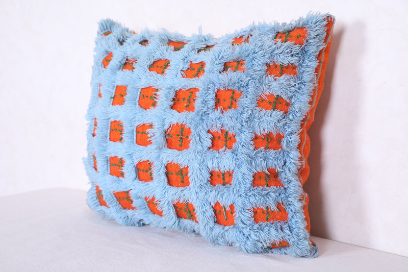 This Moroccan Kilim pillow is handwoven with wool and is an instant classic for any home. Featuring an authentic kilim cover with an embroidered floral pattern, this 18.8 INCHES X 22 INCHES pillow adds a touch of cultural charm with its intricate detail and vivid color.